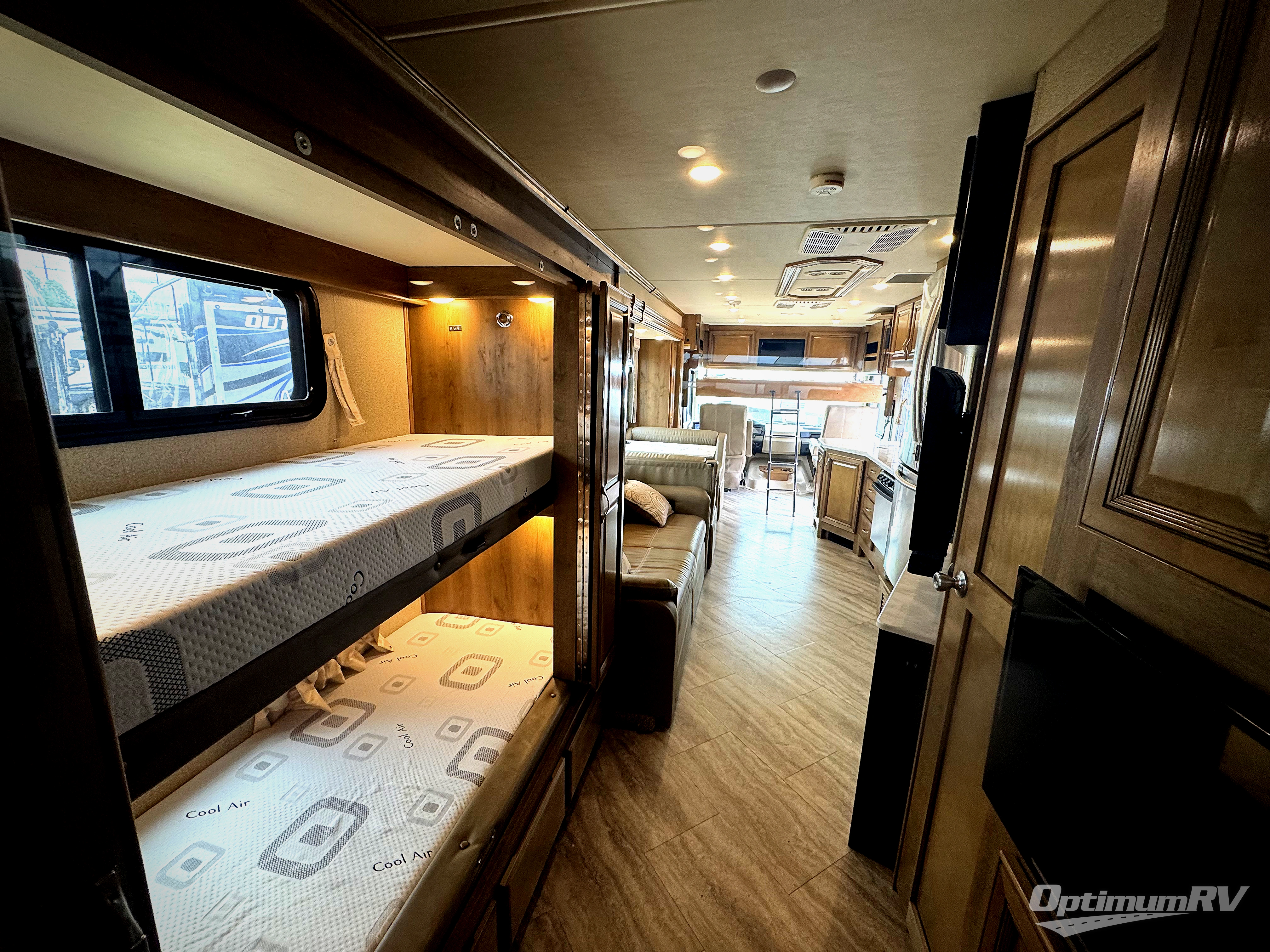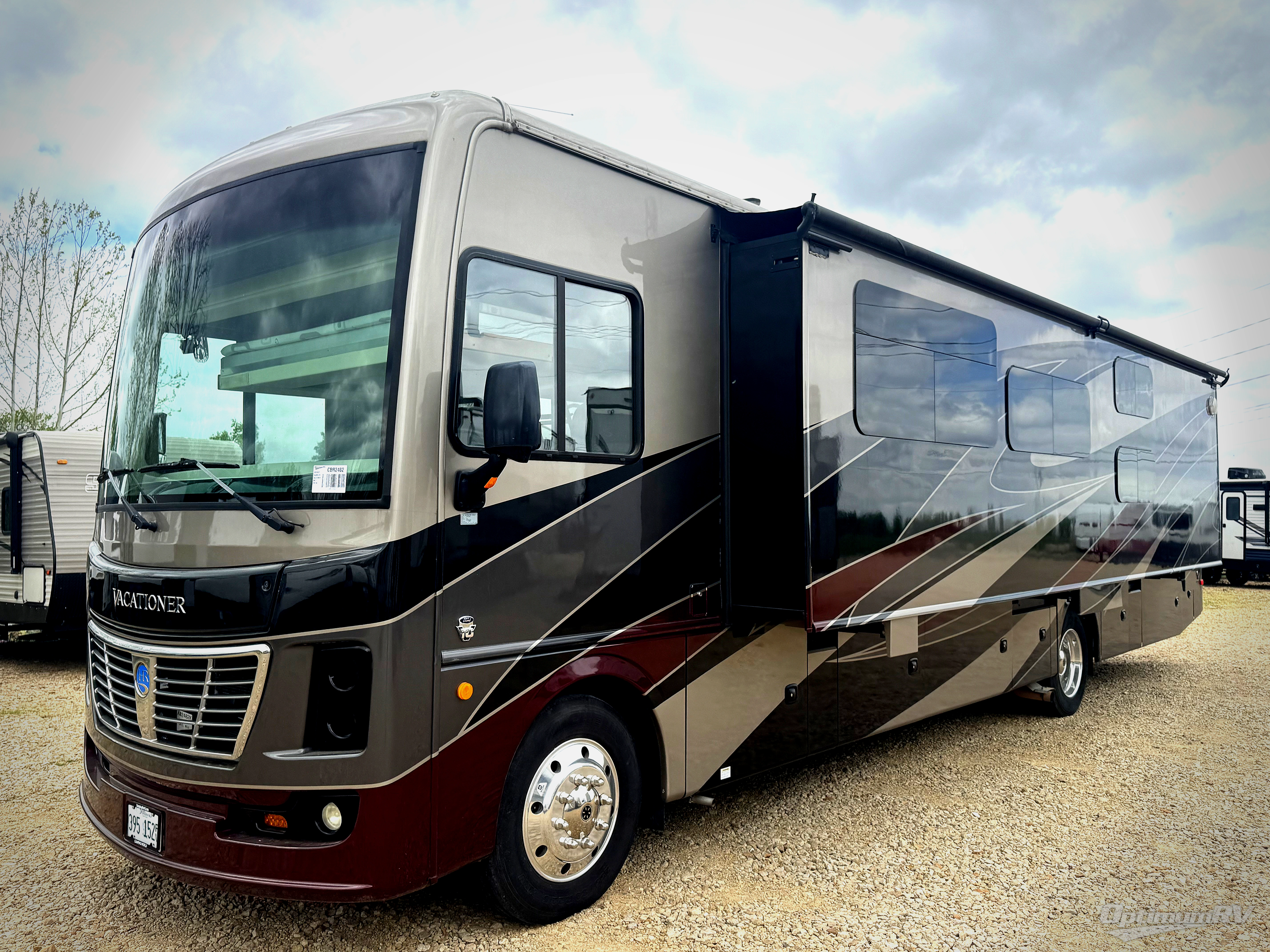 Come see just how fun and easy any trip can be when you choose to vacation with this Vacationer Class A gas motorhome! The full-wall slide along the roadside helps to open up this model and gives you plenty of space to move around. Sleeping space can be found on the king memory foam mattress, the set of bunk beds, the 70" sofa, and the 42" x 72" dinette. In the fully equipped kitchen, you can store your perishables in the residential refrigerator and cook your meals on the three-burner range. You will enjoy the convenience of two full bathrooms so that everyone can easily get ready for the day!
