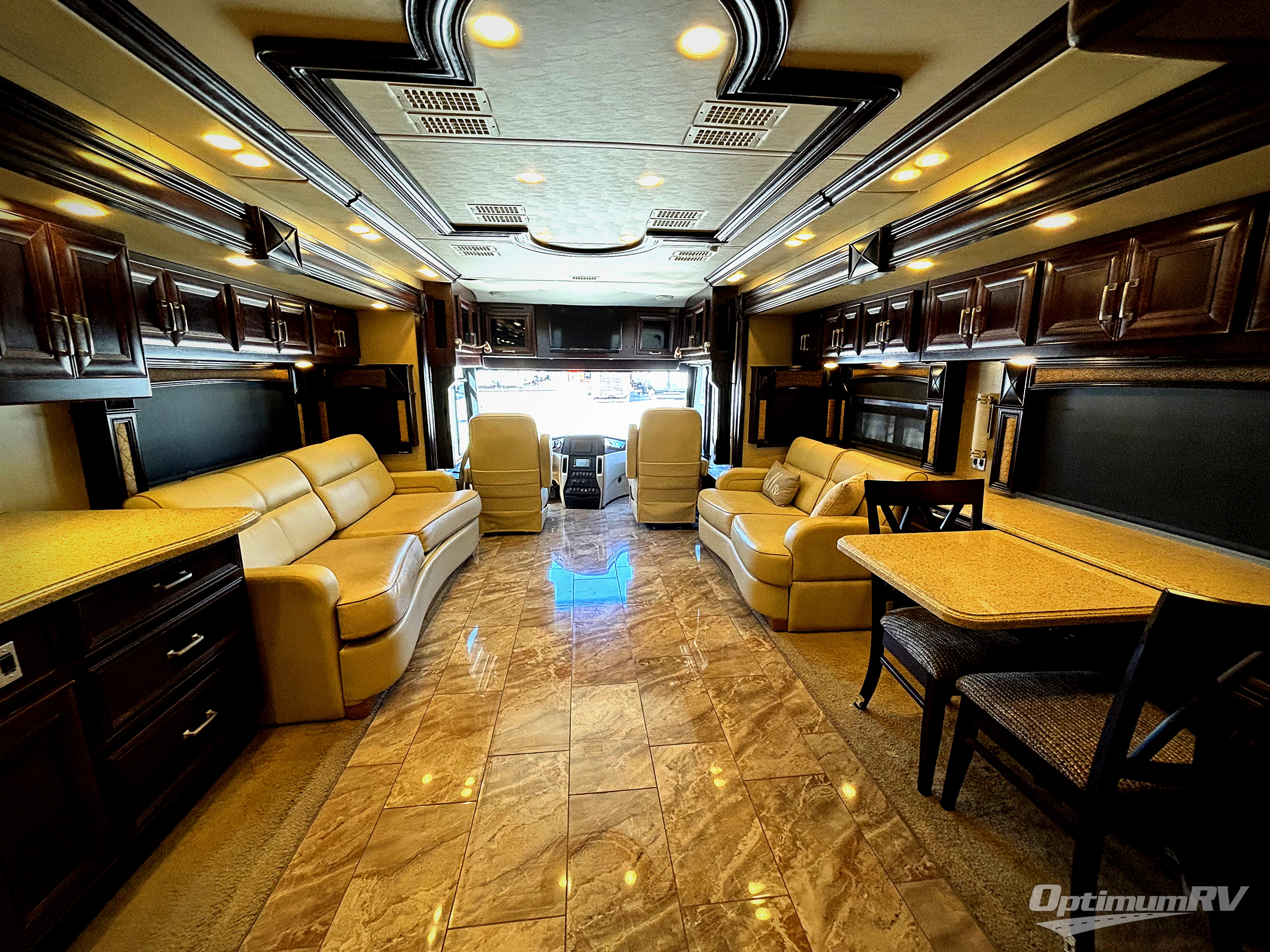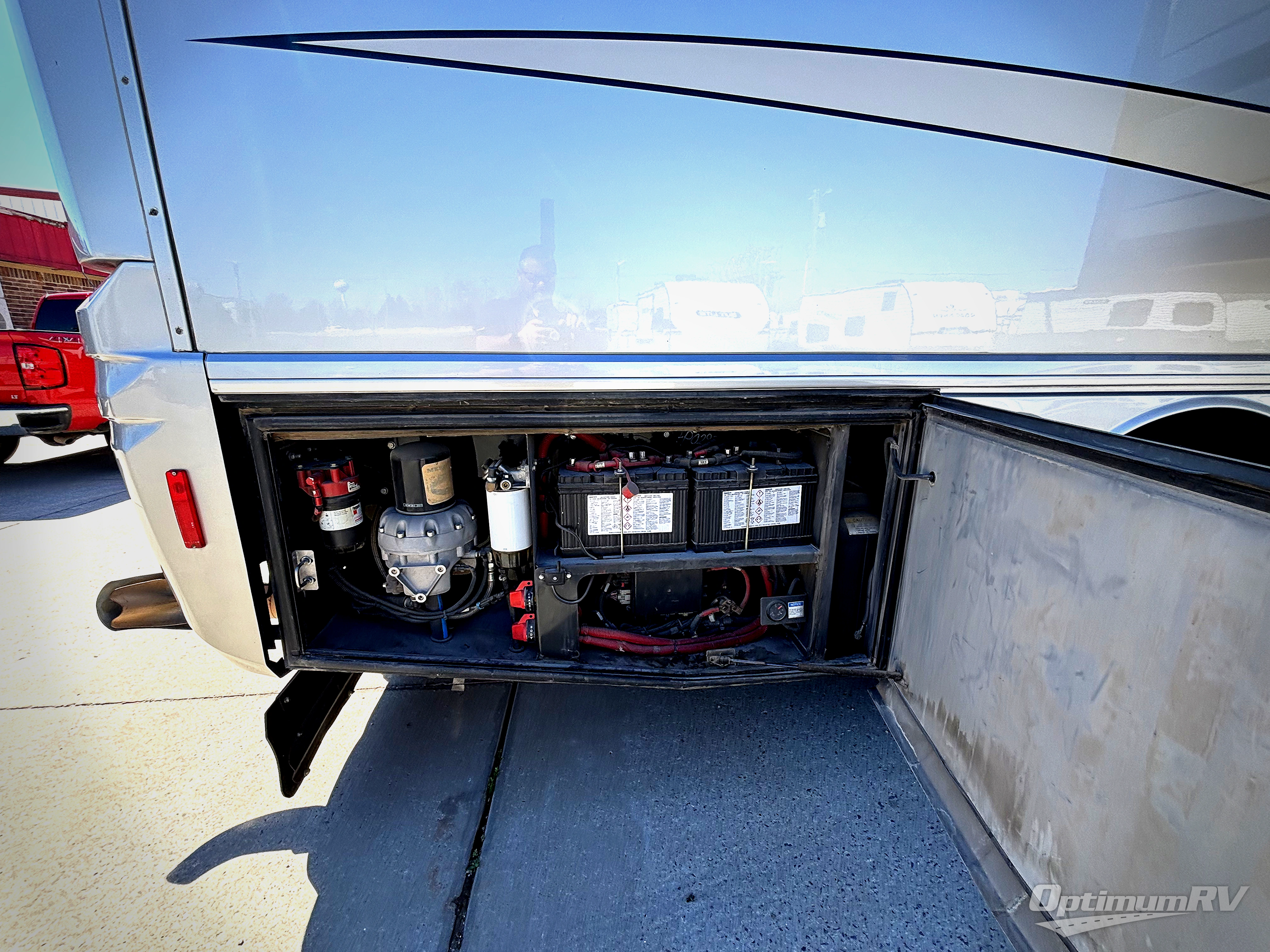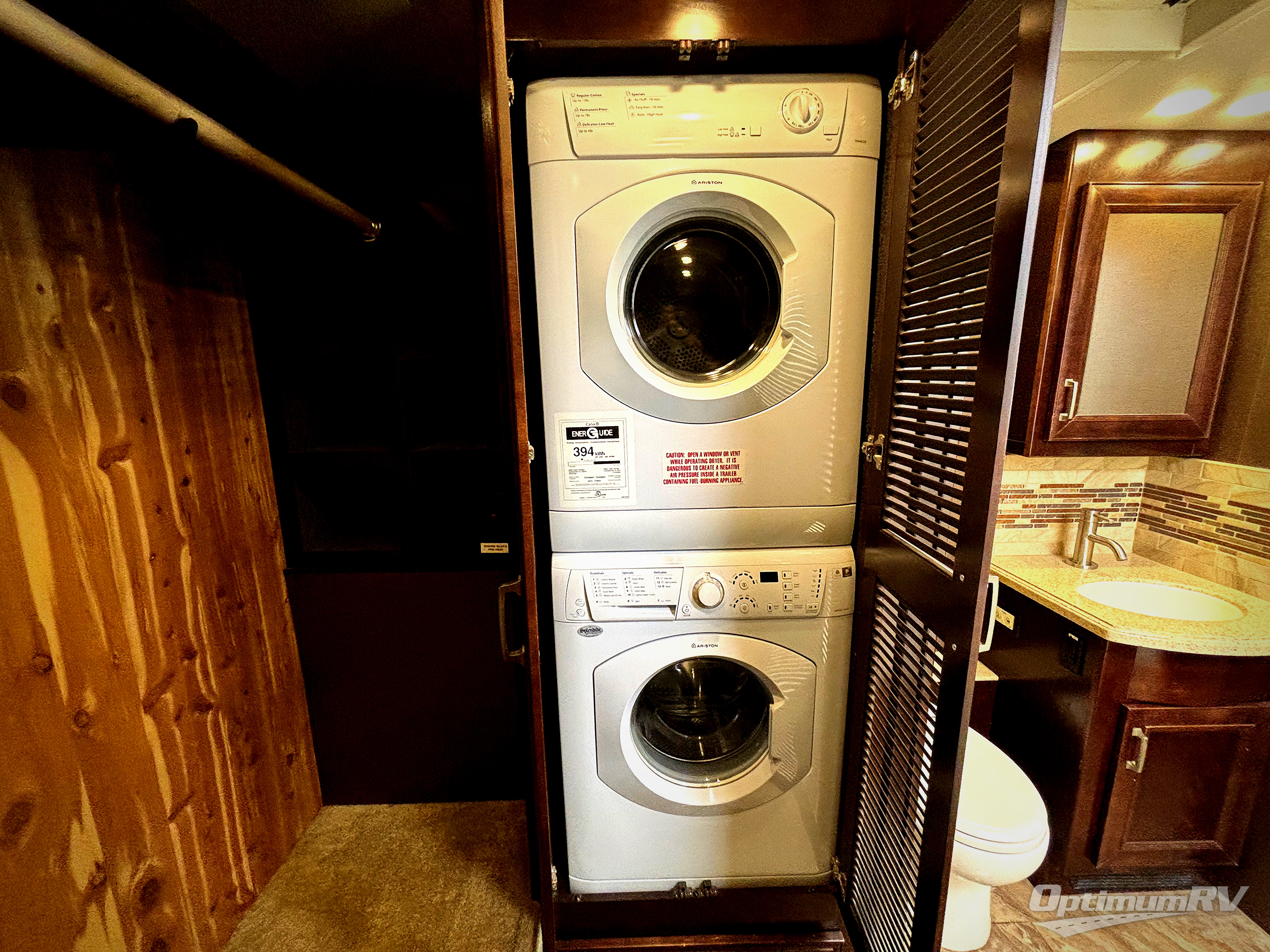 The American Revolution 42T motor home by American Coach features a bath and a half. Starting in the rear of the motor home, there is a walk-in closet with a stackable washer and dryer, utility cabinet, wardrobe and shelves. The bathroom has a shower, toilet, sink, and medicine cabinet. In the bedroom, there is a king bed and nightstands slide. As you proceed from the bedroom, to the right, is a half bath. The living and kitchen areas offer a 46" LED tv, a slide with a dining table & chairs and sofa. There is also a front 32" LED tv. The side behind the driver's seat is a full wall slide and has a sofa, double kitchen sink, microwave, three-burner range, refrigerator with ice maker, pantry and 32" LED tv in the bedroom. You can choose a few "extras" as options, washer dryer ready, washer dryer combo, dishwasher, king bed with air mattress, face-to-face dinette ensemble.