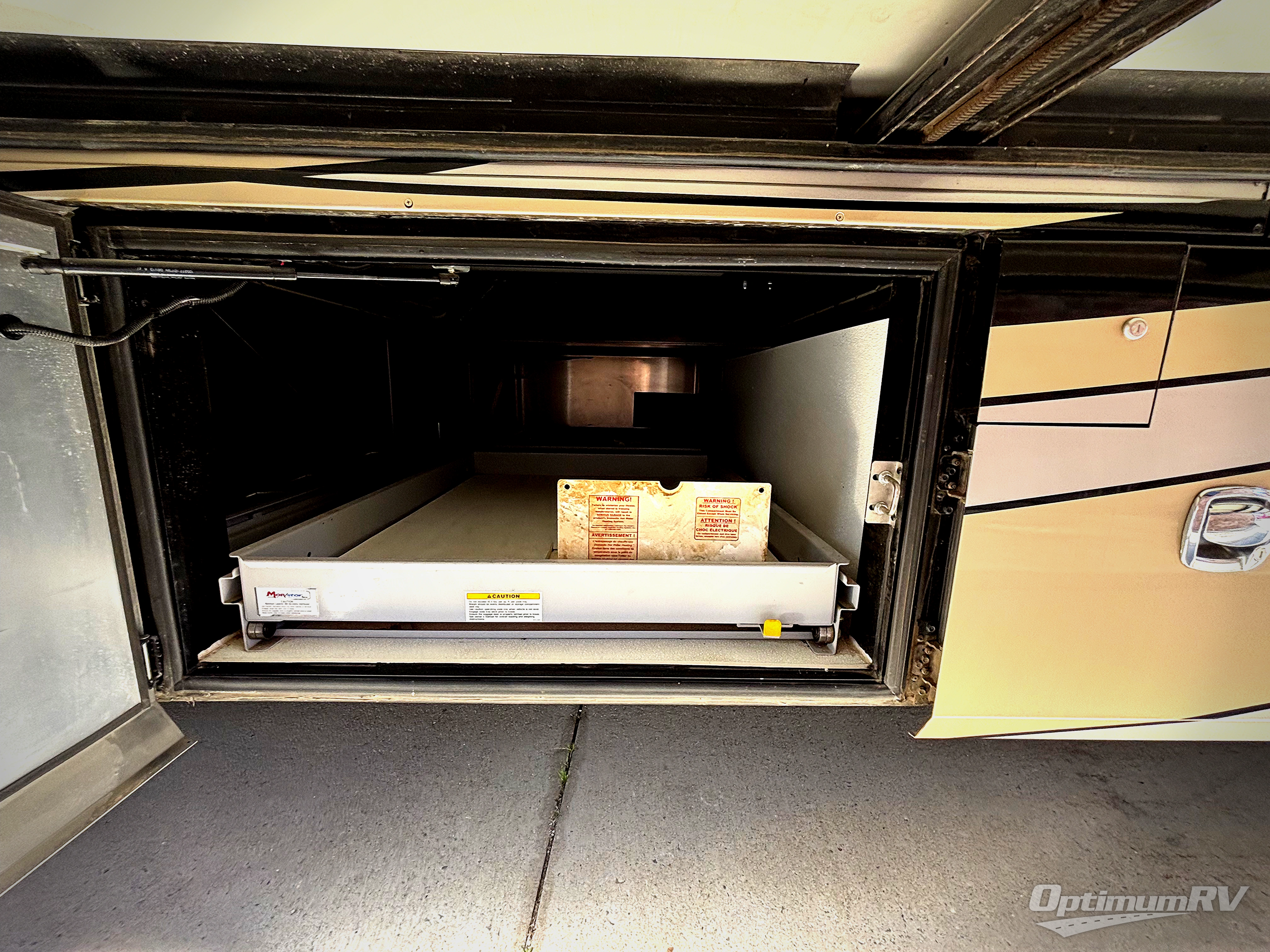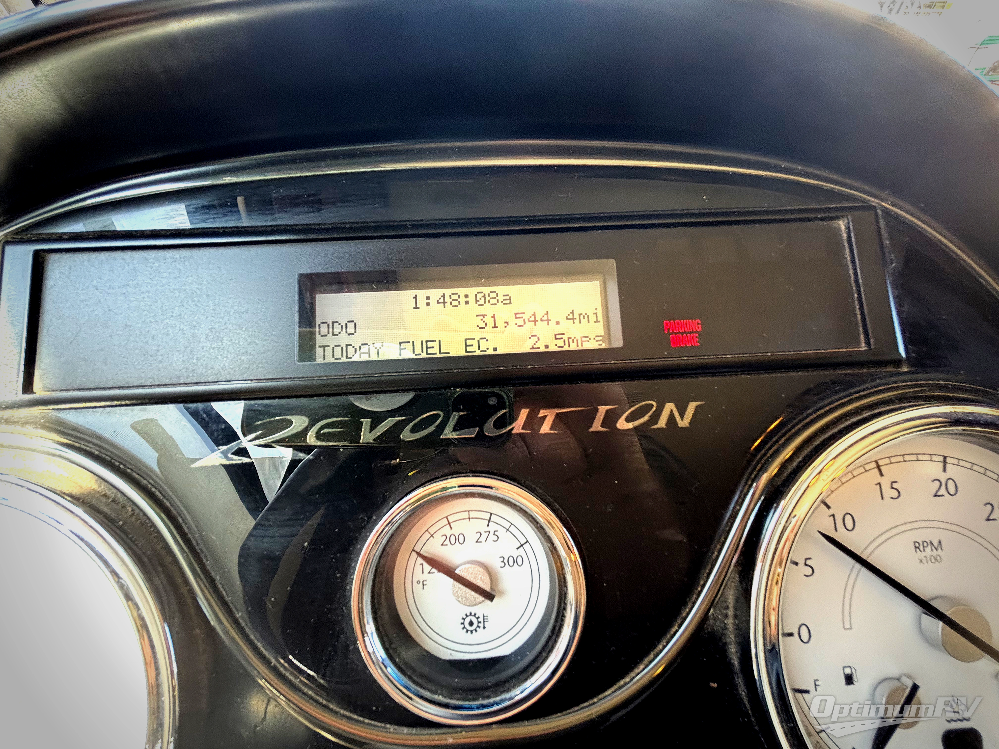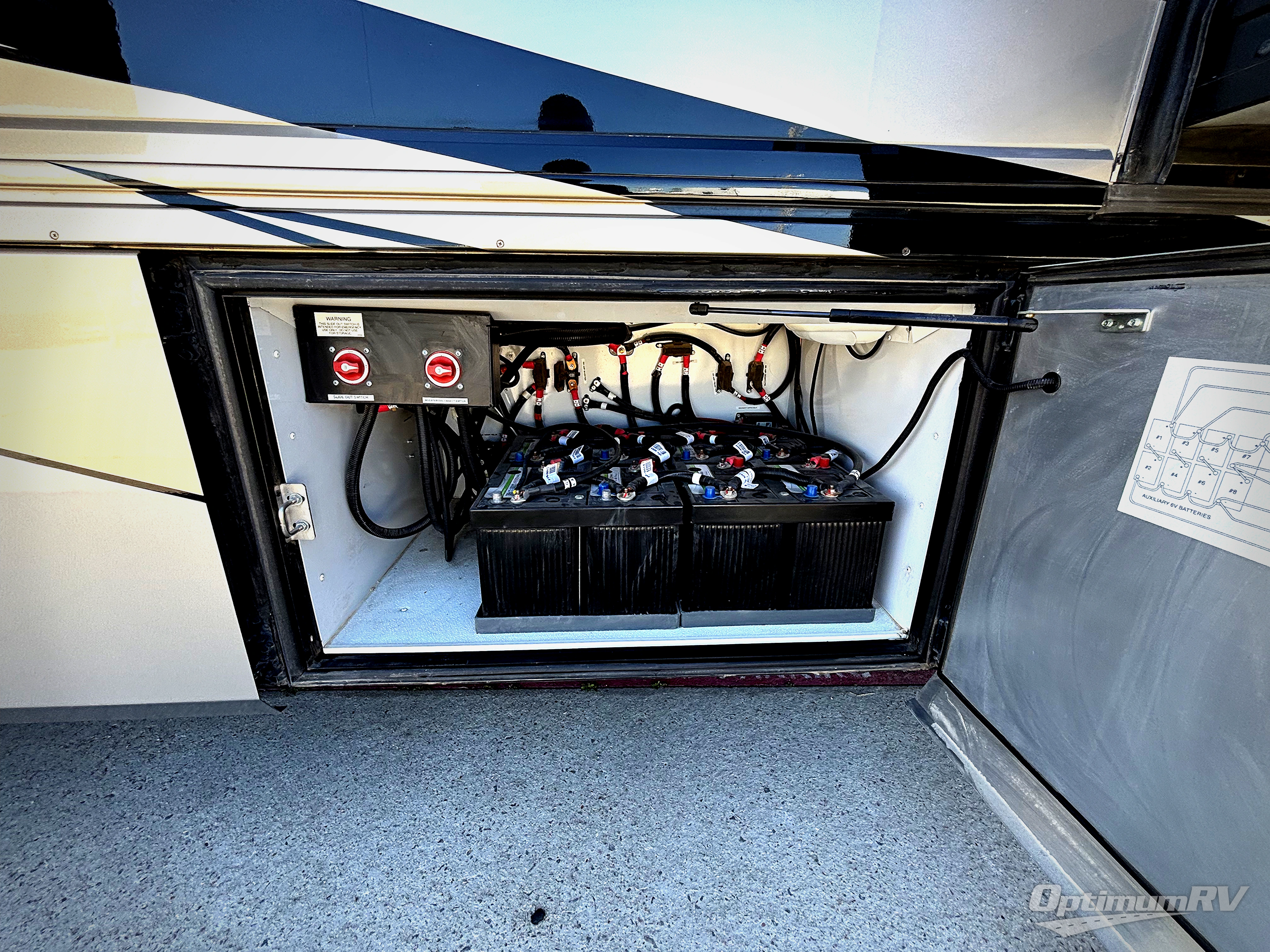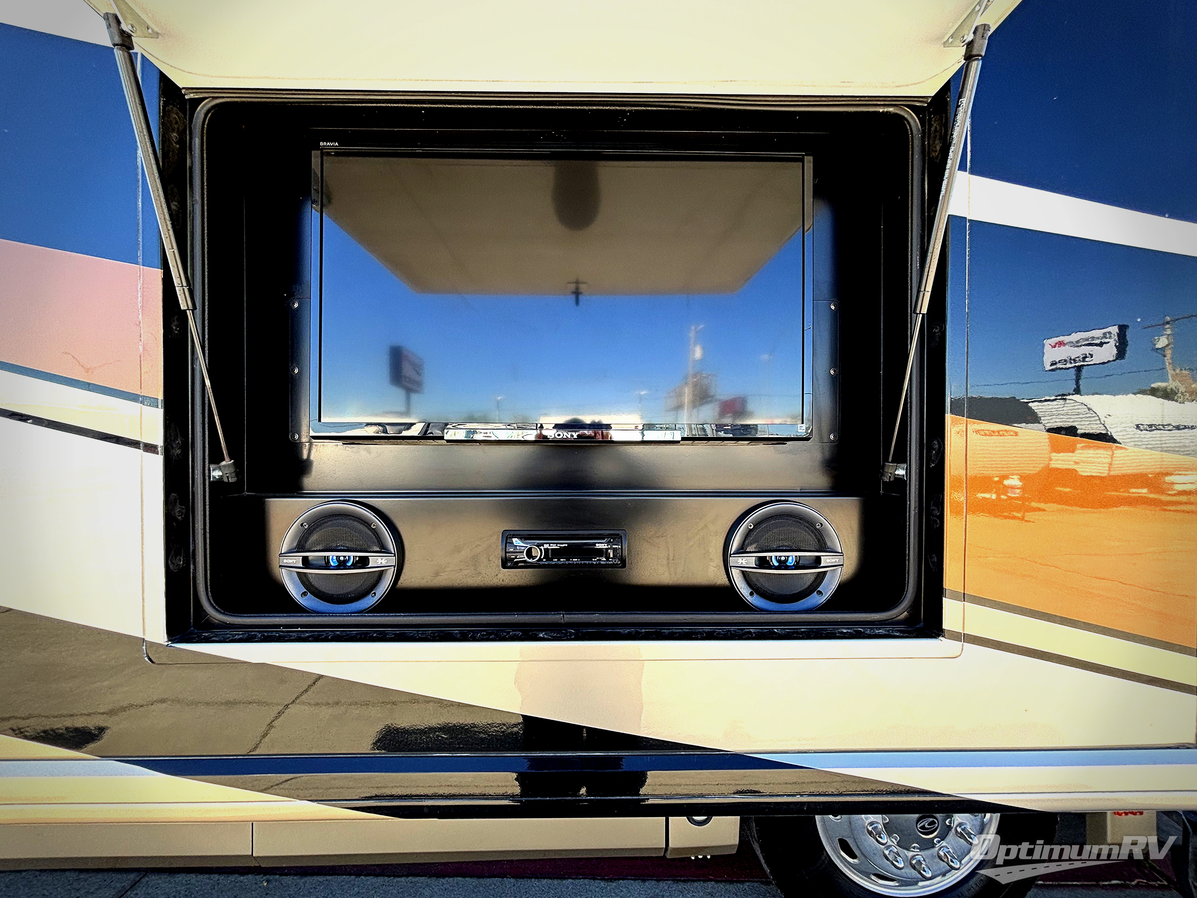 The American Revolution 42T motor home by American Coach features a bath and a half. Starting in the rear of the motor home, there is a walk-in closet with a stackable washer and dryer, utility cabinet, wardrobe and shelves. The bathroom has a shower, toilet, sink, and medicine cabinet. In the bedroom, there is a king bed and nightstands slide. As you proceed from the bedroom, to the right, is a half bath. The living and kitchen areas offer a 46" LED tv, a slide with a dining table & chairs and sofa. There is also a front 32" LED tv. The side behind the driver's seat is a full wall slide and has a sofa, double kitchen sink, microwave, three-burner range, refrigerator with ice maker, pantry and 32" LED tv in the bedroom. You can choose a few "extras" as options, washer dryer ready, washer dryer combo, dishwasher, king bed with air mattress, face-to-face dinette ensemble.
