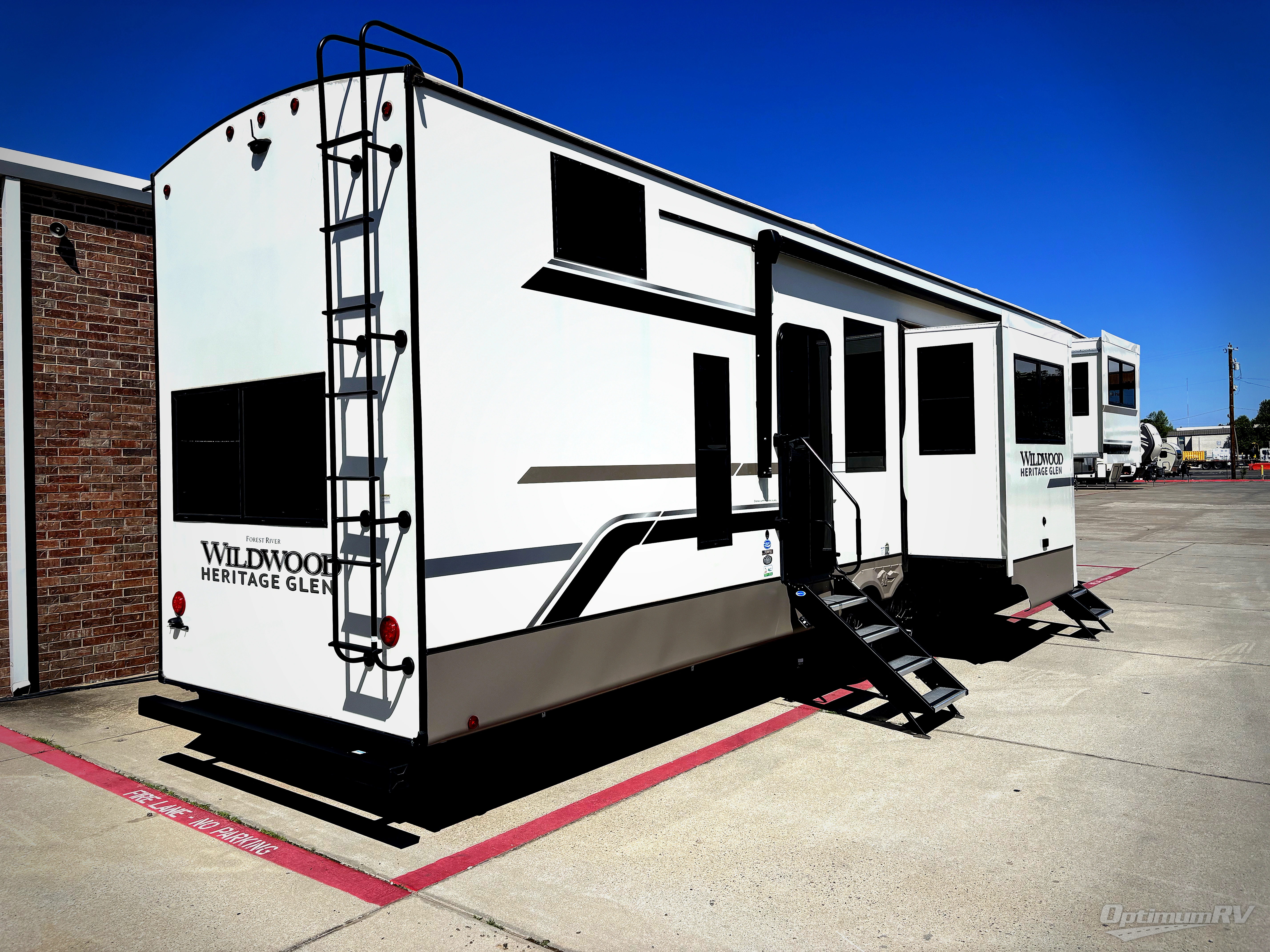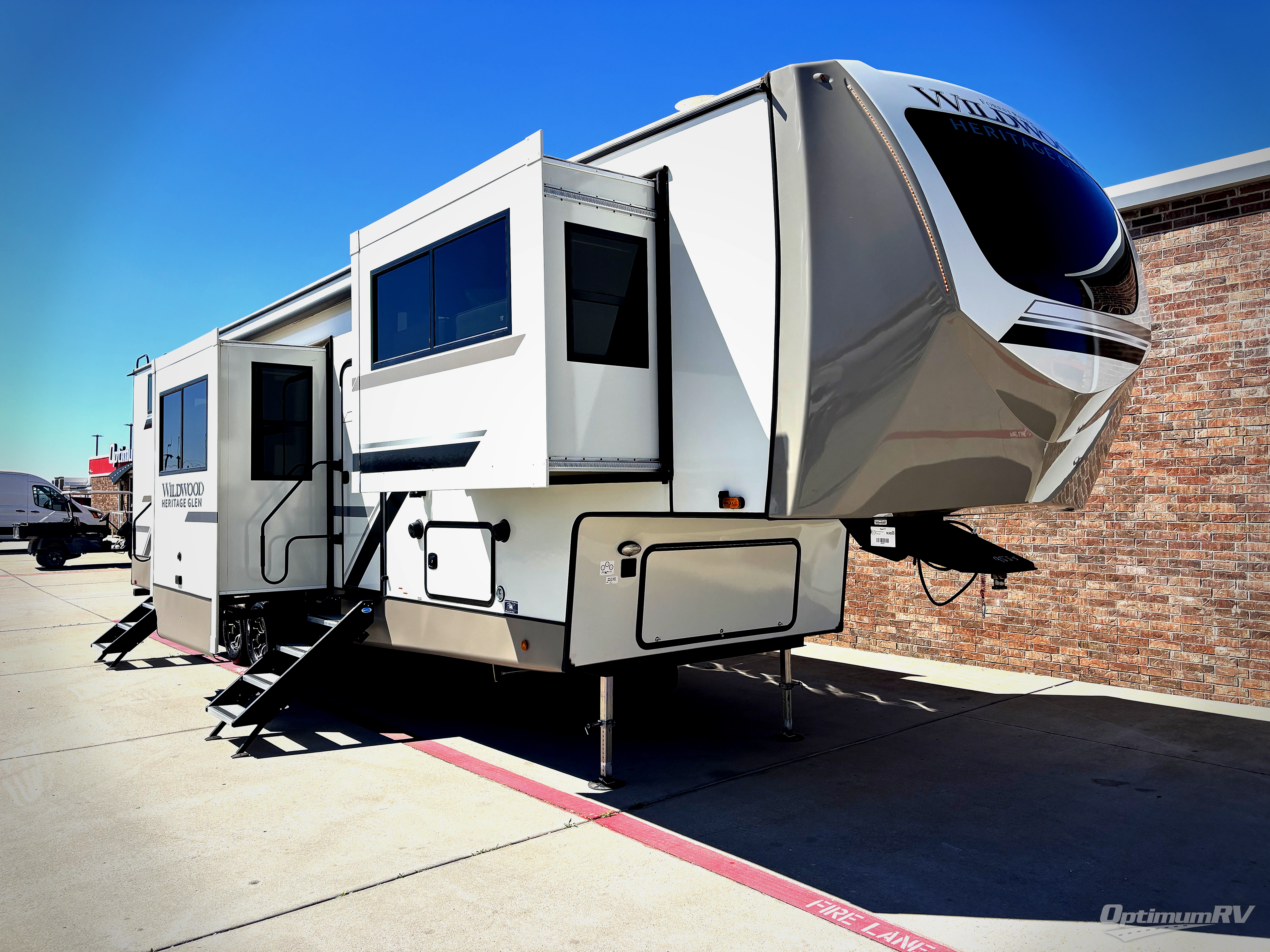 If you are looking for plenty of space, great views, and a place to call home, you have found it with this Wildwood Heritage Glen fifth wheel! The living area is separate from the kitchen and includes dual opposing tri-fold sofas with panoramic windows, theater seating with cupholders, and a 50" LED TV with a fireplace and storage along the front wall. The separate kitchen also offers lots of space with dual slides, a kitchen island, a free-standing table and chairs, and a hutch. You will find the loft stairs beside the full bathroom with a walk-in shower, and the rear private bedroom has a custom king bed slide for endless nights of rest and rejuvenation. There is so much more to enjoy from the loft above the bedroom, the pantry for lots of snack storage as well as the panoramic window in the kitchen and the residential walk-in shower in the full bathroom to mention a few.