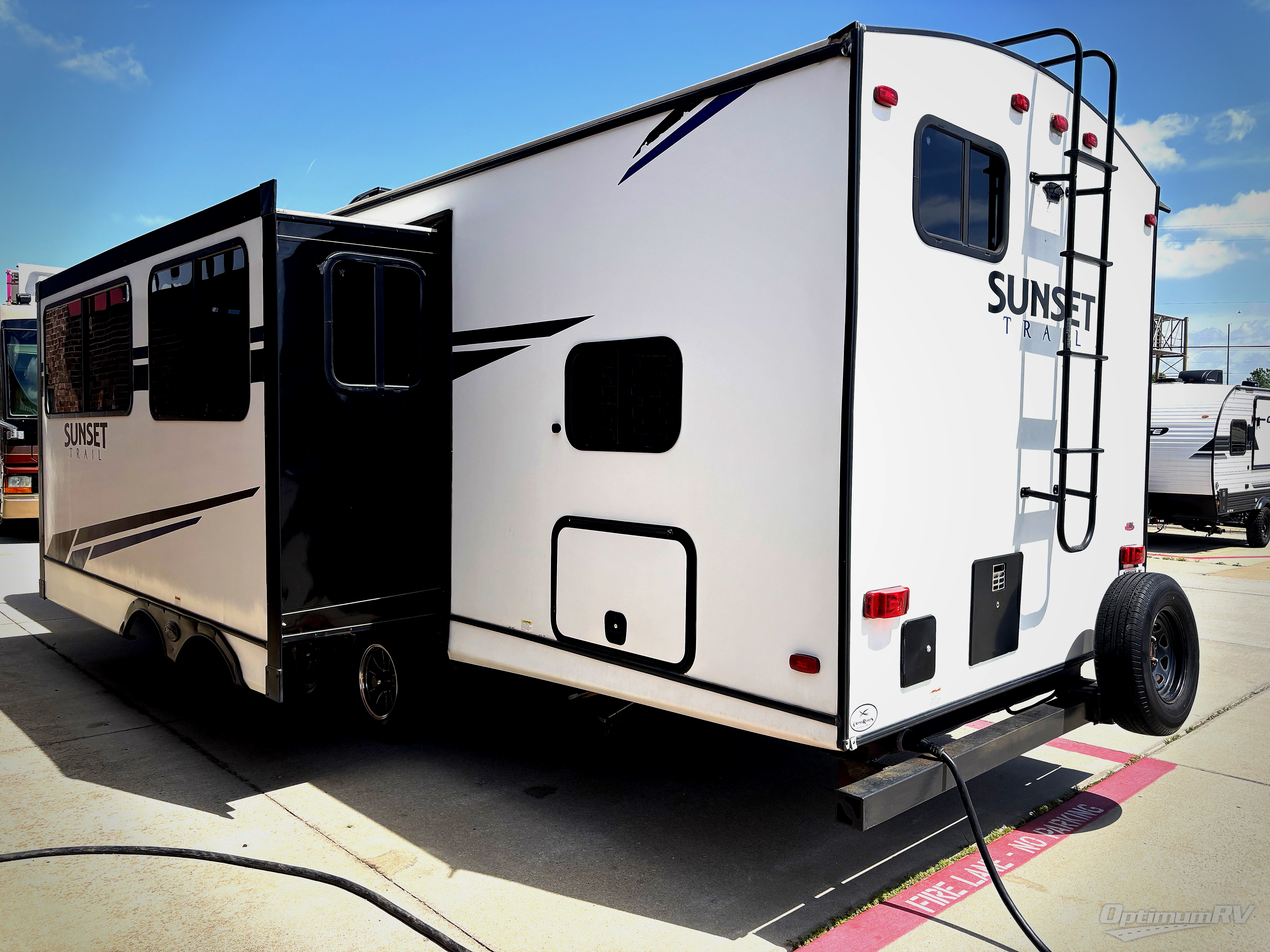 The lightweight Sunset Trail travel trailers by CrossRoads RV include EZ lube axles, laminated sidewalls, secure stance entry steps, plus an exterior convenience center to make each camping trip enjoyable. The gas oven, stainless steel microwave, and refrigerator allow you to cook and store food during your trip to the lake, and the stainless steel farmhouse sink will make clean-up a breeze. These models feature solid wood drawer construction and LED lights for an open and bright living space. You can choose to add many convenient options, such as the optional 50 amp electrical service, a second 13,500 BTU A/C, and a free-standing table and chairs in place of the booth dinette!