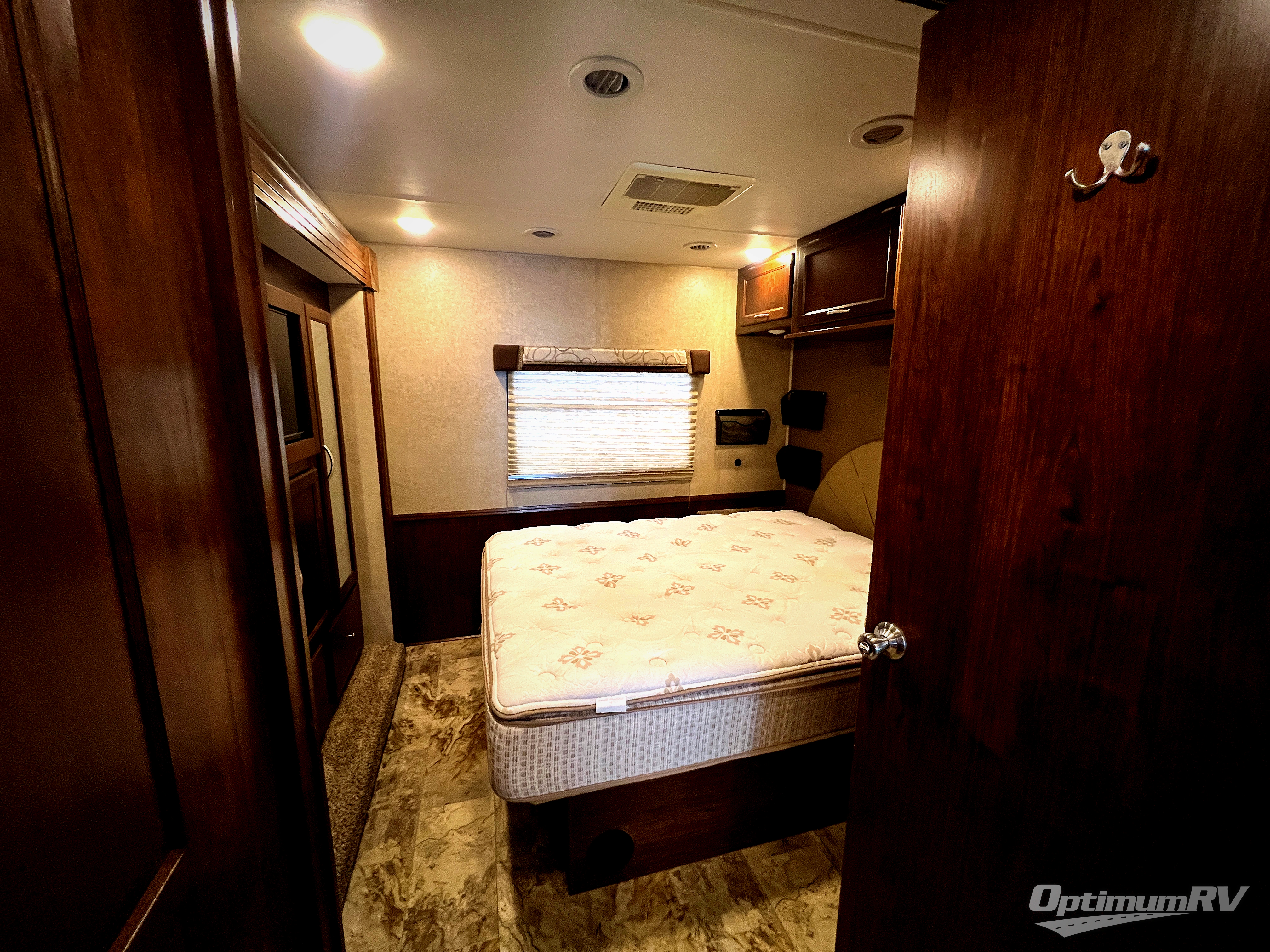 Step inside model 33BH and see just how convenient this motor home is. To the right of the entrance there is a booth dinette with overhead storage. There is a 47" x 81" electric drop down bunk above the cab area for more sleeping space if you need it at night. You will also find a cockpit table and computer workstation.
