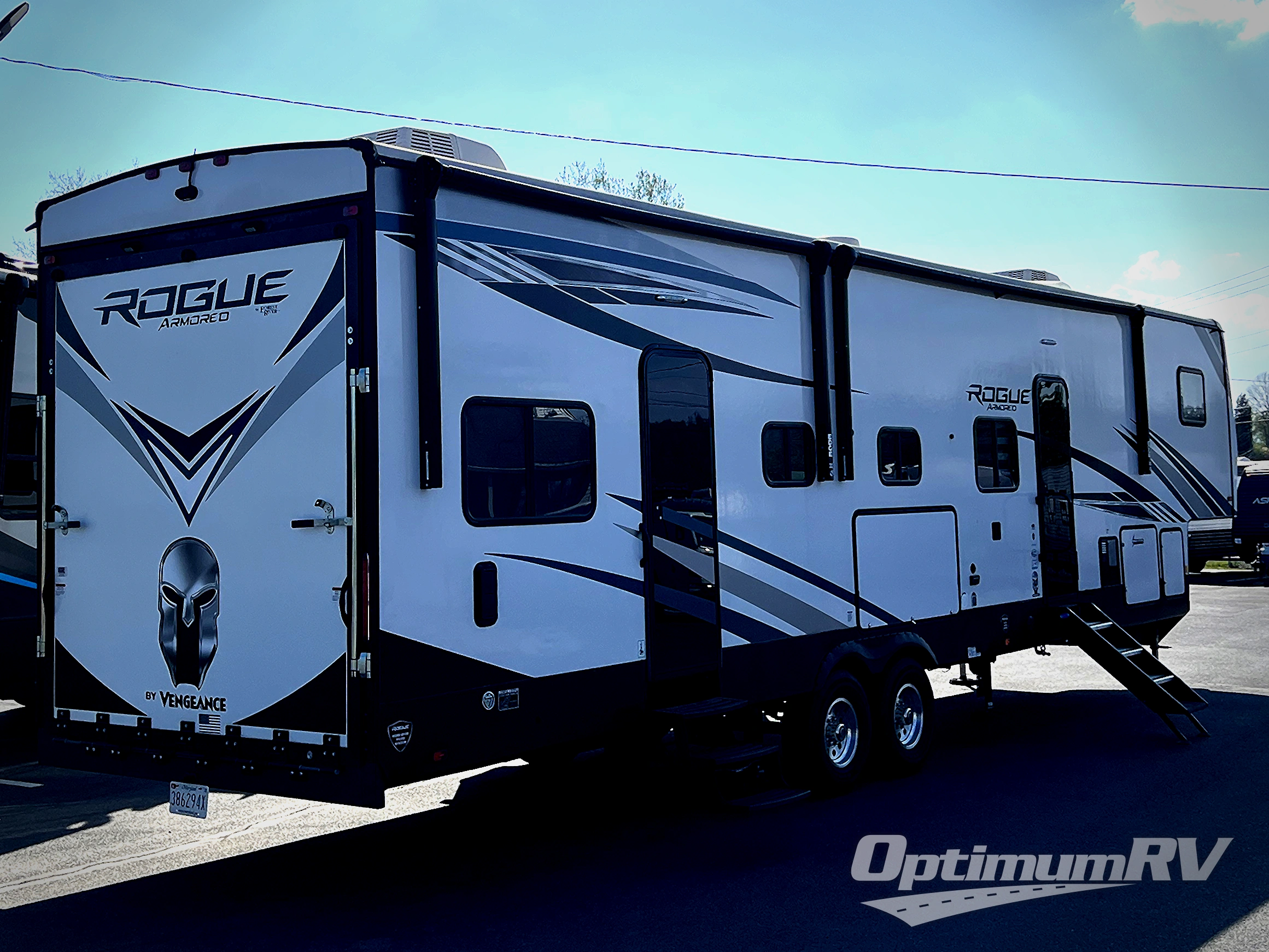 Every one of these Forest River Vengeance Rogue Armored fifth wheel toy haulers come with the features you want most at an affordable price tag! The DUR-A-POXY cargo floor has 5,000 lb. tie downs to ensure your toys will arrive safely without damaging the flooring, plus the 8' ramp door makes it easy to load them. A 15,000 BTU air conditioner will keep you cool even on the hottest summer days. An enclosed and heated underbelly keeps your unit's vitals protected and a central docking station makes life a little easier. The Rogue Armored package comes with a six point leveling system, a comfort plus adjustable powered king bed system, and a ramp door patio system. You can be sure to find one that fits your needs!