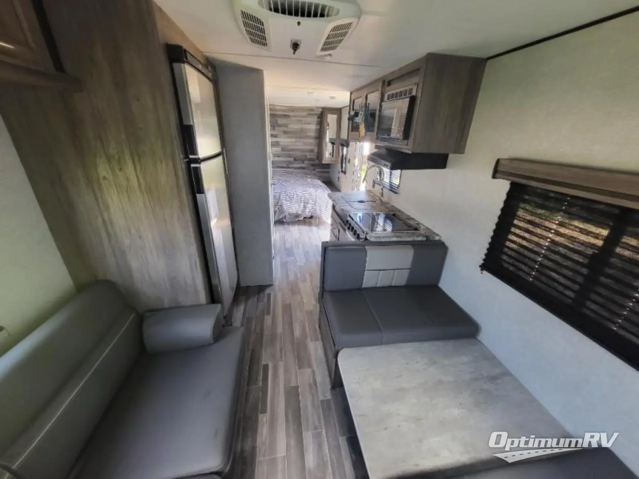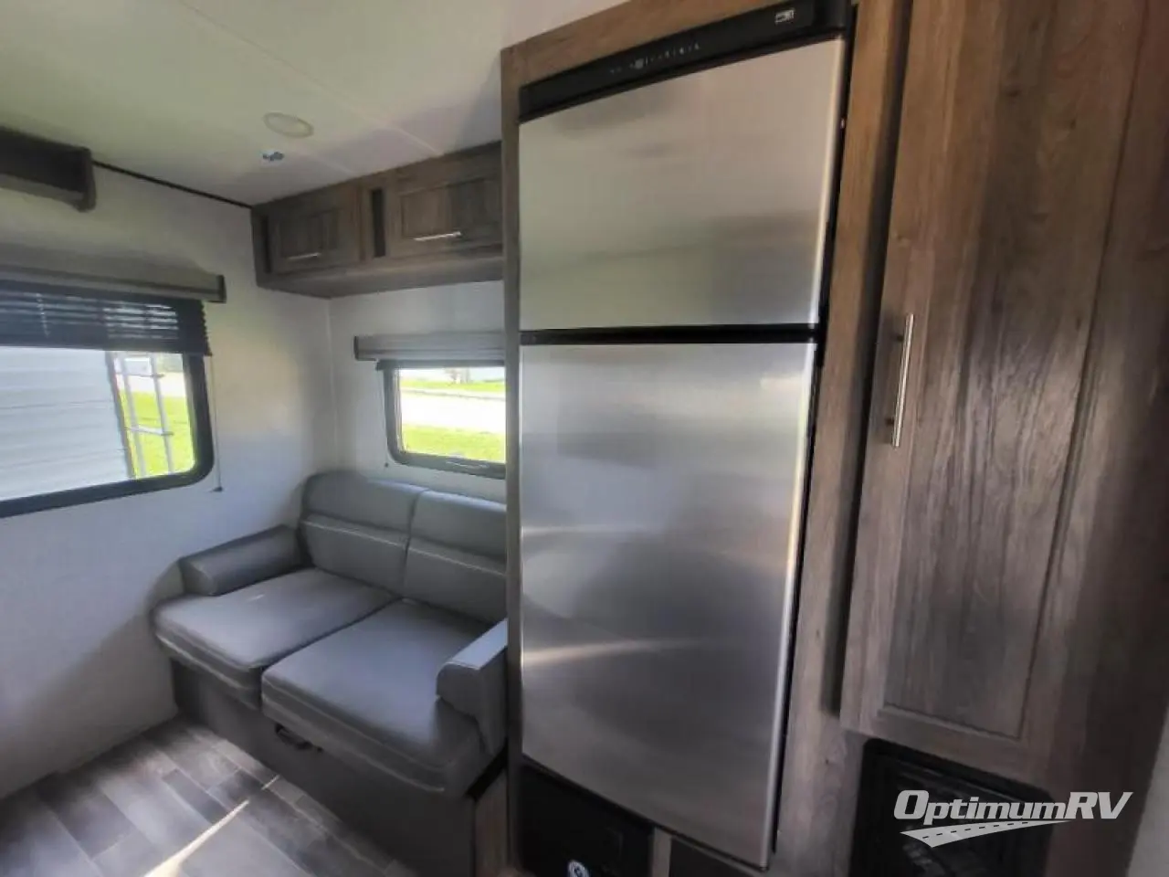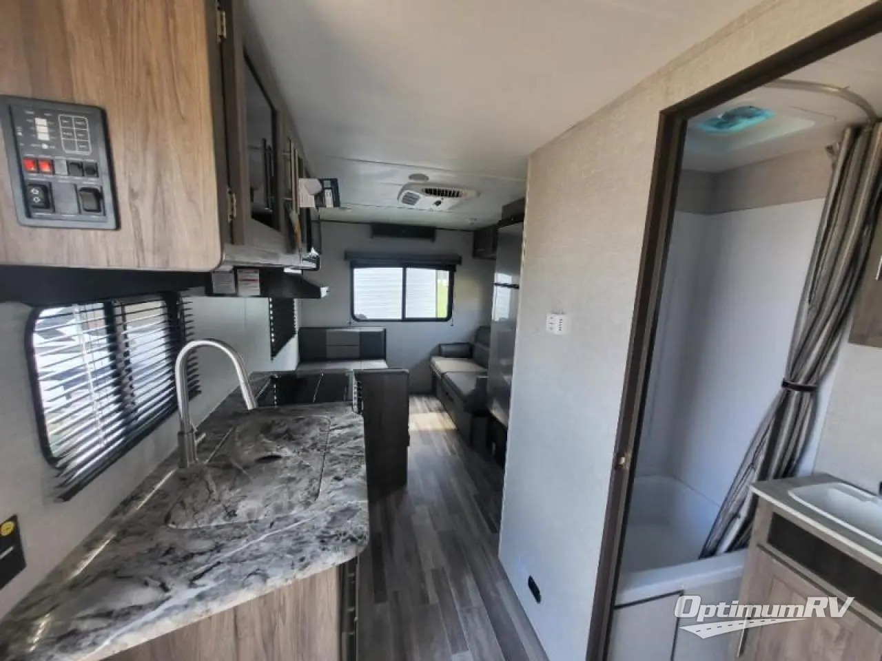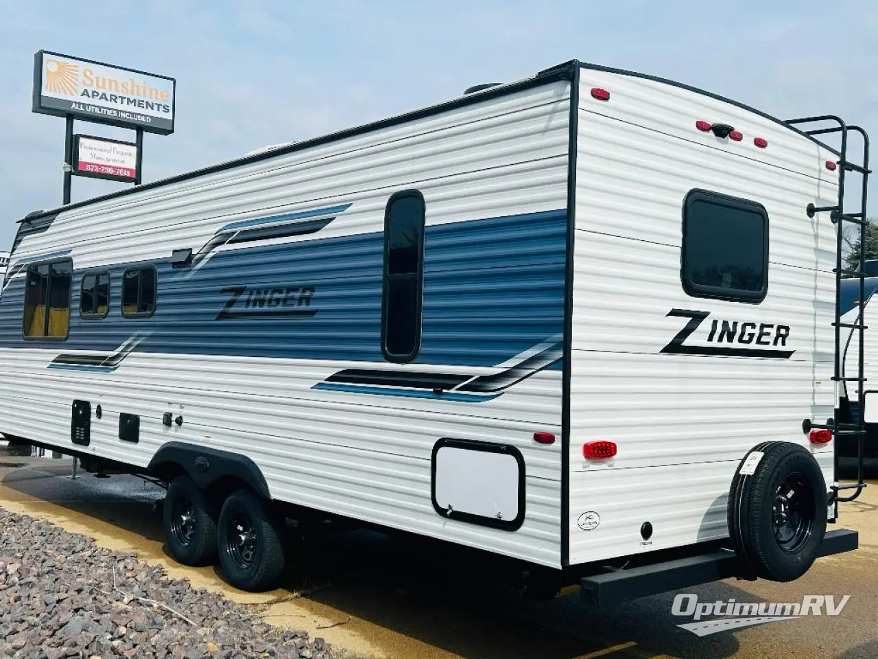 Come step inside this Zinger Lite travel trailer that is sure to bring fun to your next weekend trip. With room to sleep five, you can bring the grandkids or friends. You'll enjoy the rear dining area with a 60" sofa and 38" booth dinette to visit with family and enjoy dinner. This unit includes an RV queen bed with two shirt closets on both sides of the bed. You'll appreciate a pantry for dry goods and a refrigerator to hold chocolate milk for the kids. This travel trailer features a full bathroom with a 36" tub, a toilet, and a medicine cabinet for the first aid kit.