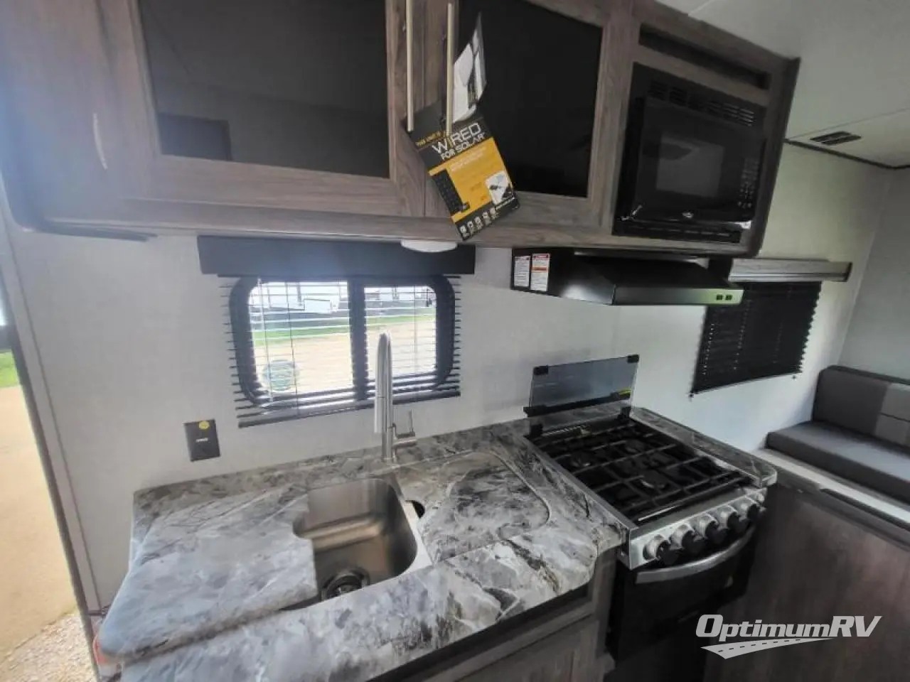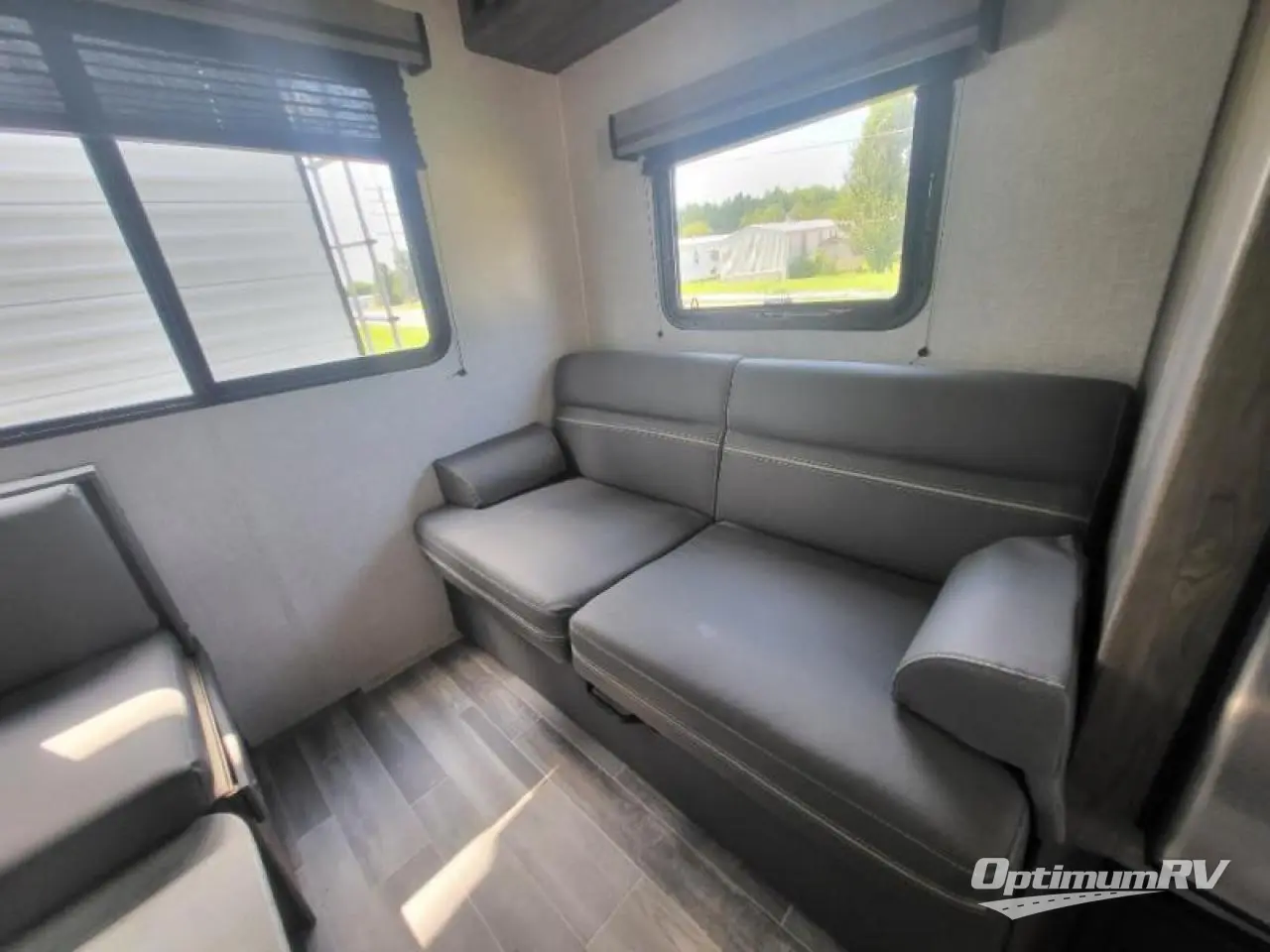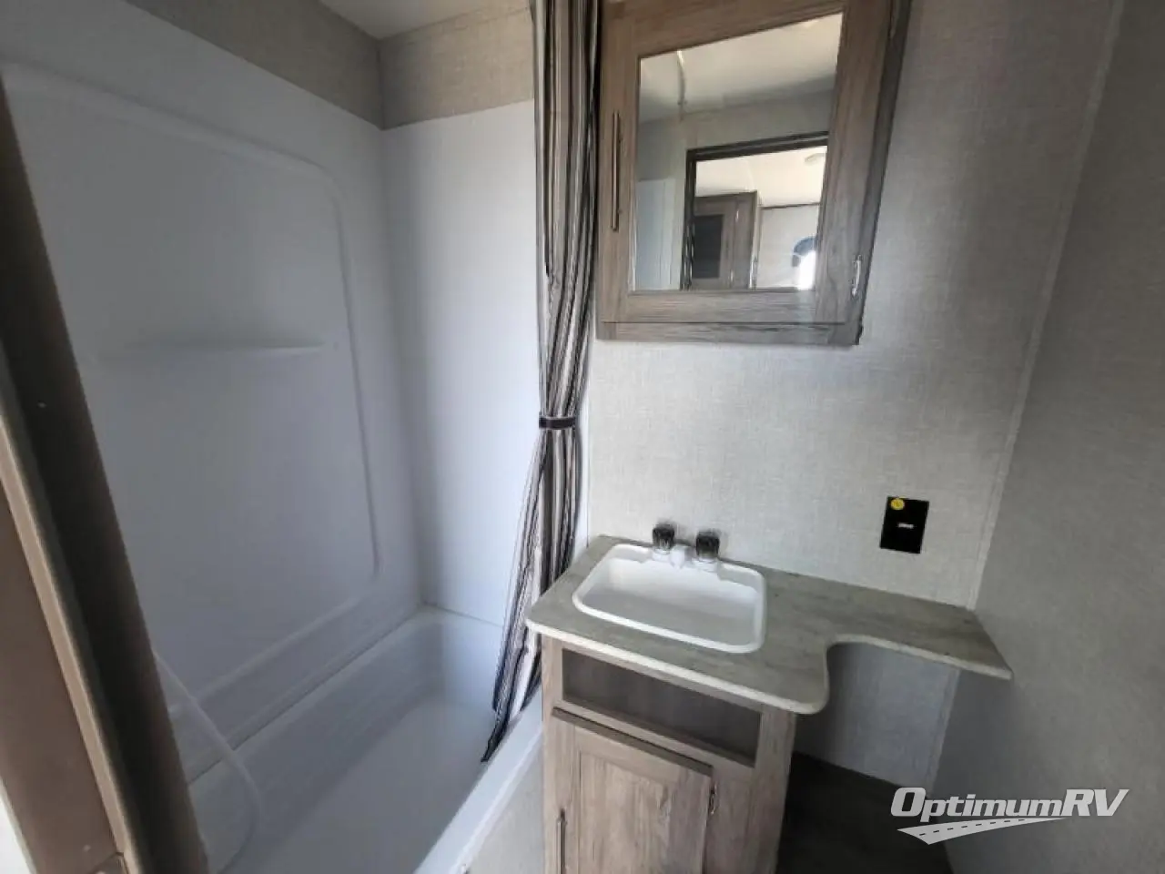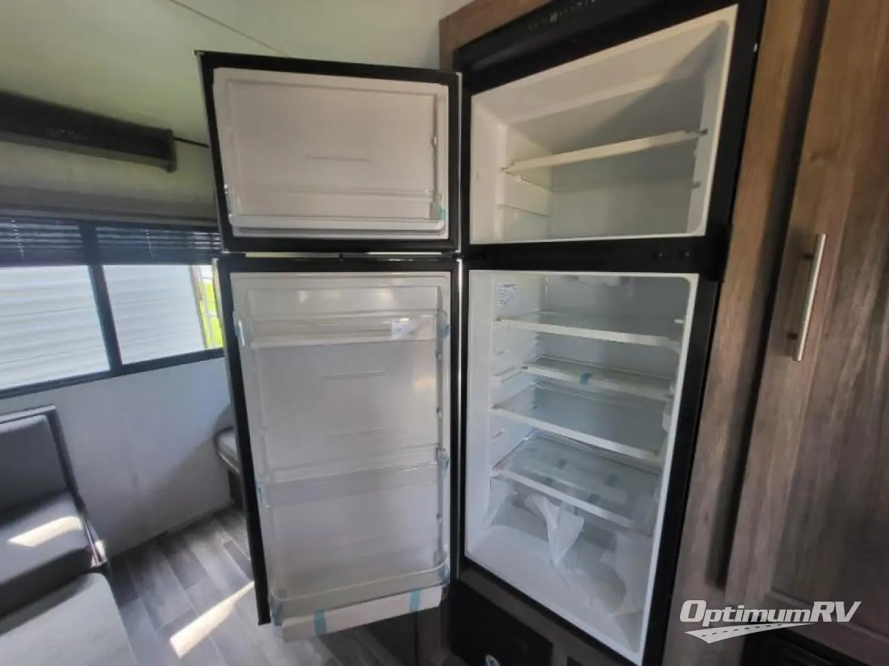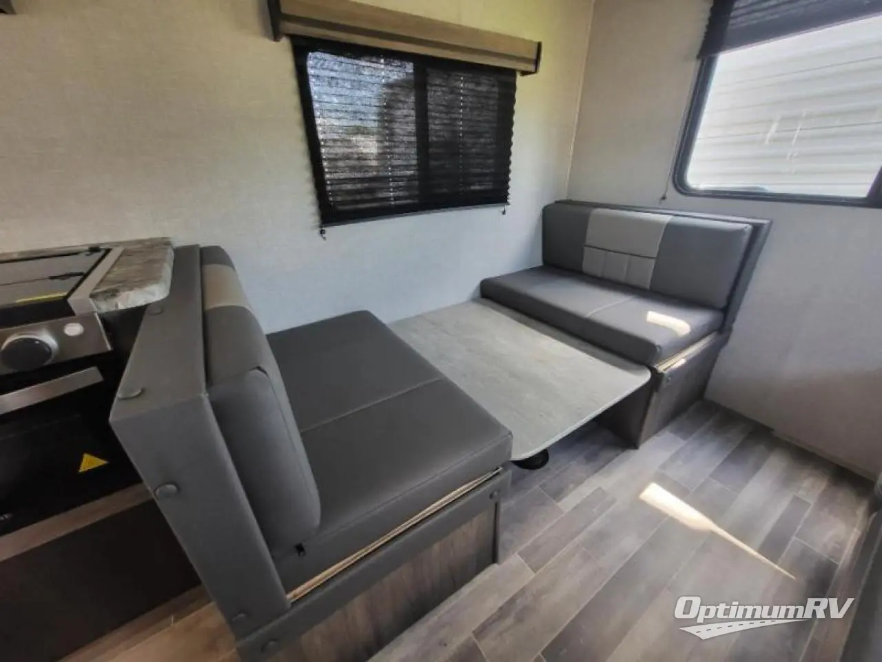 Come step inside this Zinger Lite travel trailer that is sure to bring fun to your next weekend trip. With room to sleep five, you can bring the grandkids or friends. You'll enjoy the rear dining area with a 60" sofa and 38" booth dinette to visit with family and enjoy dinner. This unit includes an RV queen bed with two shirt closets on both sides of the bed. You'll appreciate a pantry for dry goods and a refrigerator to hold chocolate milk for the kids. This travel trailer features a full bathroom with a 36" tub, a toilet, and a medicine cabinet for the first aid kit.