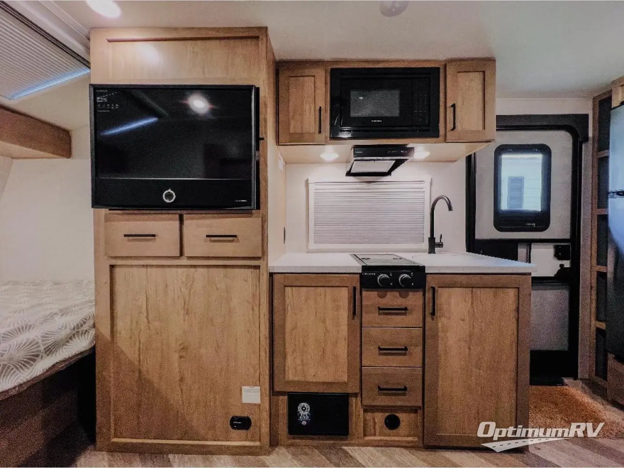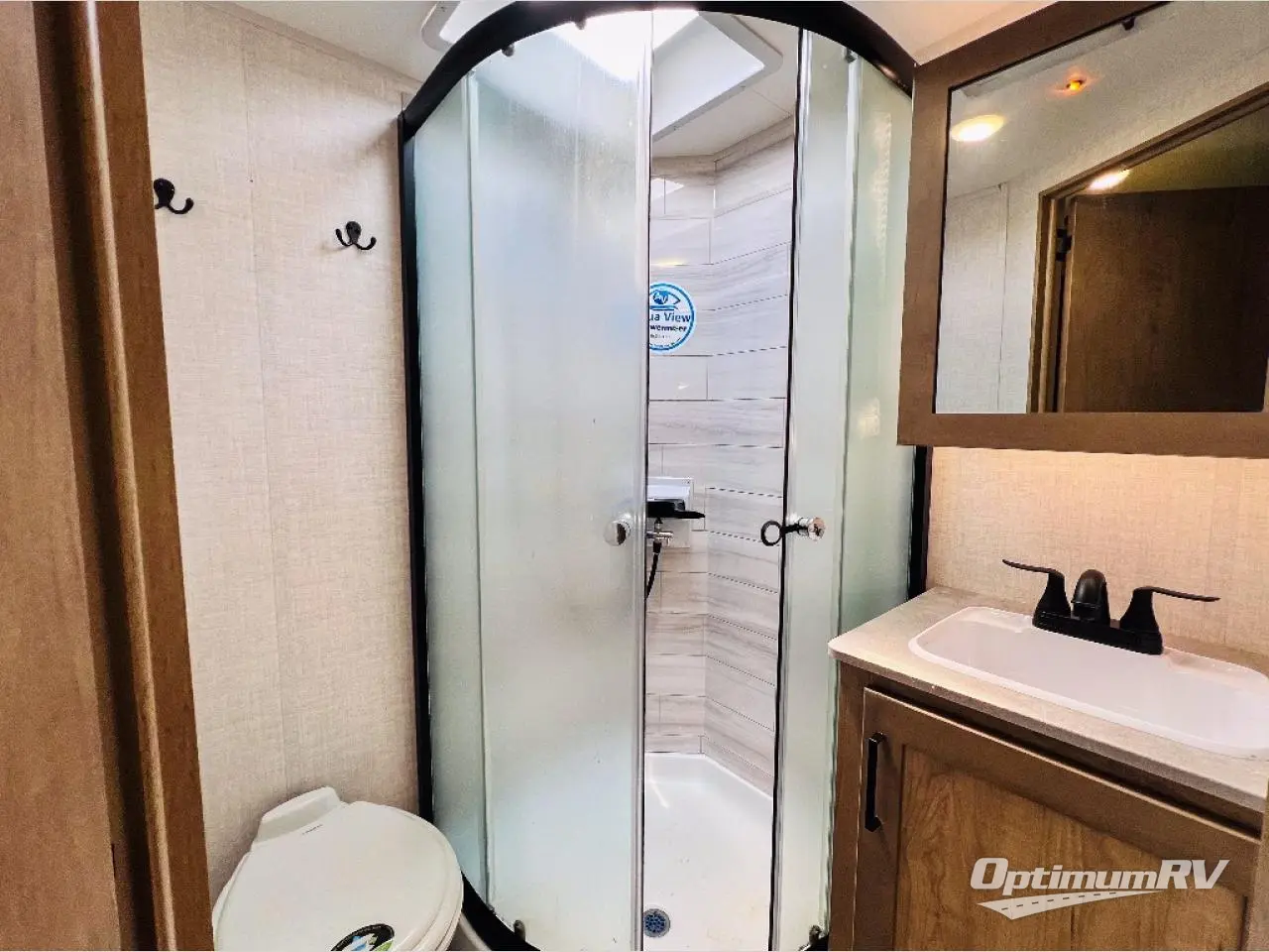 Pack your bags and hitch up this travel trailer for an unforgettable camping trip! Start each day feeling well rested after sleeping on the front queen bed and look up at the beautiful sky through the "Stargazer" skylight. Another friend can join in on the fun too and sleep on the jackknife sofa slide when you are done relaxing on it while watching a movie with the 12V HDTV/AV system which even has a hidden wardrobe behind it. On one side of the 8 cu. ft. refrigerator there is a pantry for your snacks, and on the other side you will find the rear corner bathroom with a 32" radius shower to freshen up. You can prepare delicious home cooked meals indoors with the two burner cooktop or head to the outside kitchen where you will find a 1.6 cu. ft. refrigerator and an optional griddle. There is also an optional microwave you can add to the inside kitchen for those nights when you don't feel like cooking!