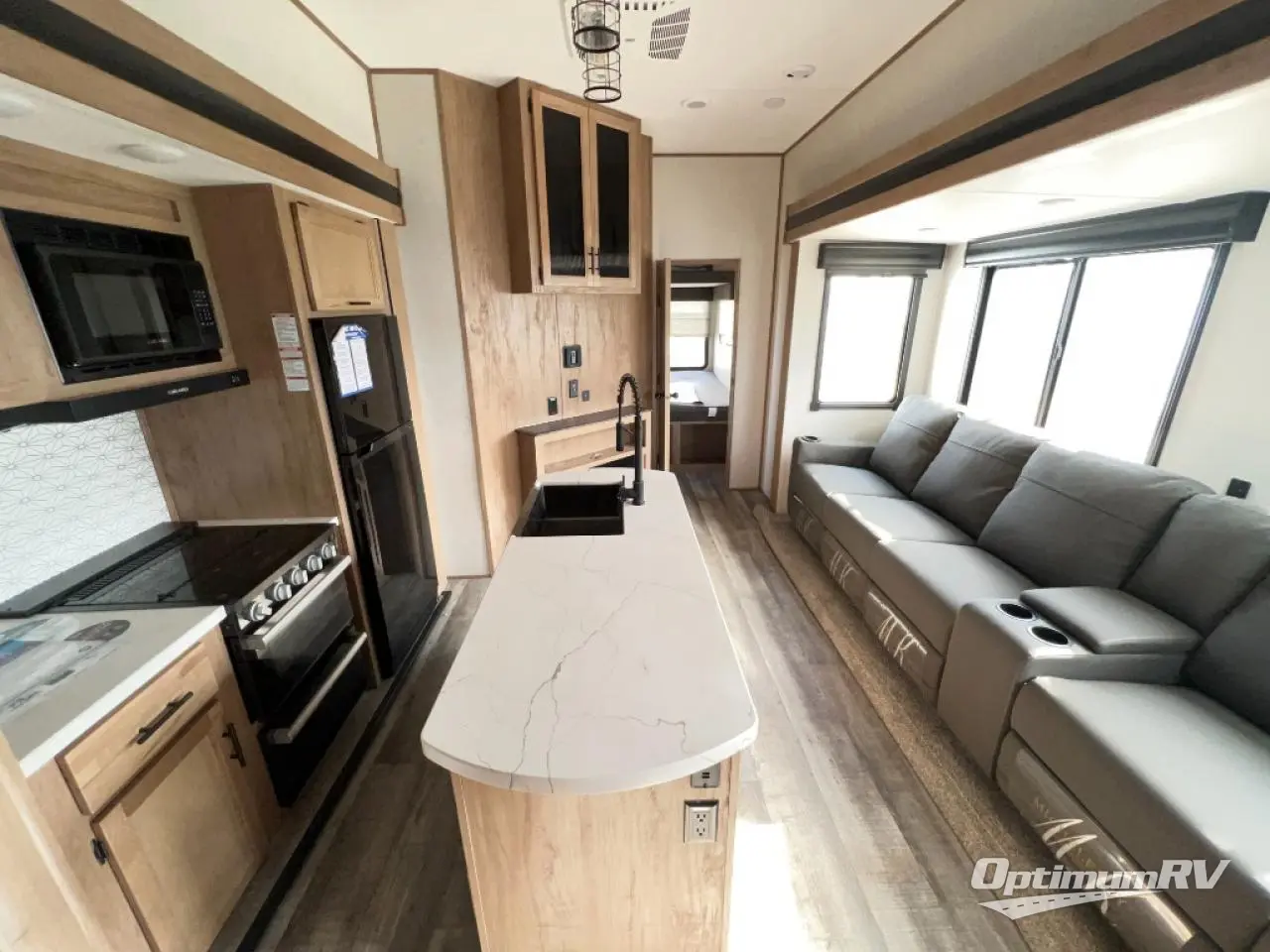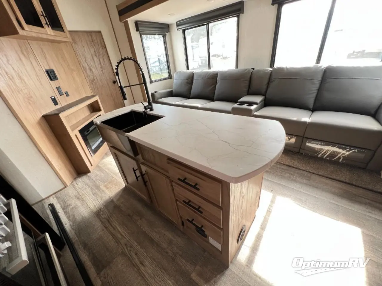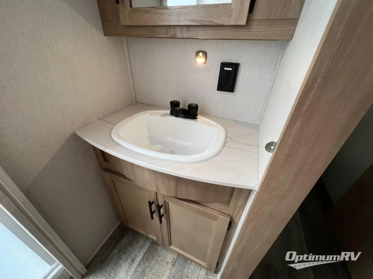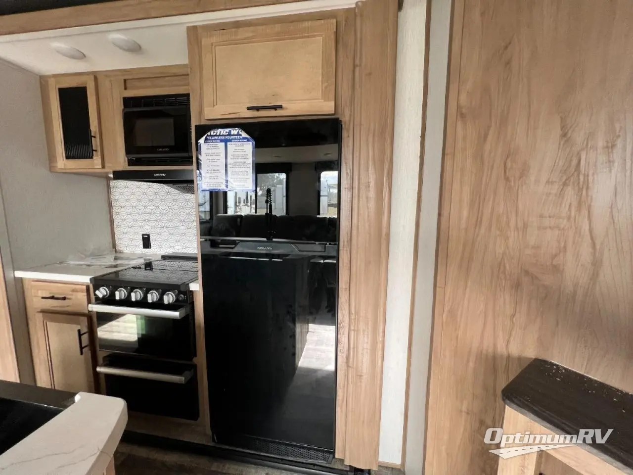 You will have amazing residential comfort in the Forest River Cherokee Arctic Wolf Suite fifth wheels! These units have a “SuperStor” dual-cavern basement storage compartment to allow you to bring more gear, and they have been constructed with a “ToughBend” rigid skirt metal design, a 1x engineered wood “SuperTruss” roof structure with 3/8" decking, and a 5/8” tongue-and-groove plywood floor decking. Each model includes Leash Latch pet safety technology, an outside shower with hot/cold water, preparations for an exterior TV, motion-sensing lighting, and a smart monitor panel with smart phone Bluetooth connectivity. The supersized central air conditioning unit (15,000 BTU) with quick cool air dump feature and second oversized 15,000 BTU ducted air conditioner will cool your unit down in a snap when you camp in the hot summer months.