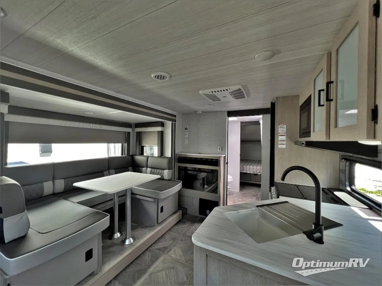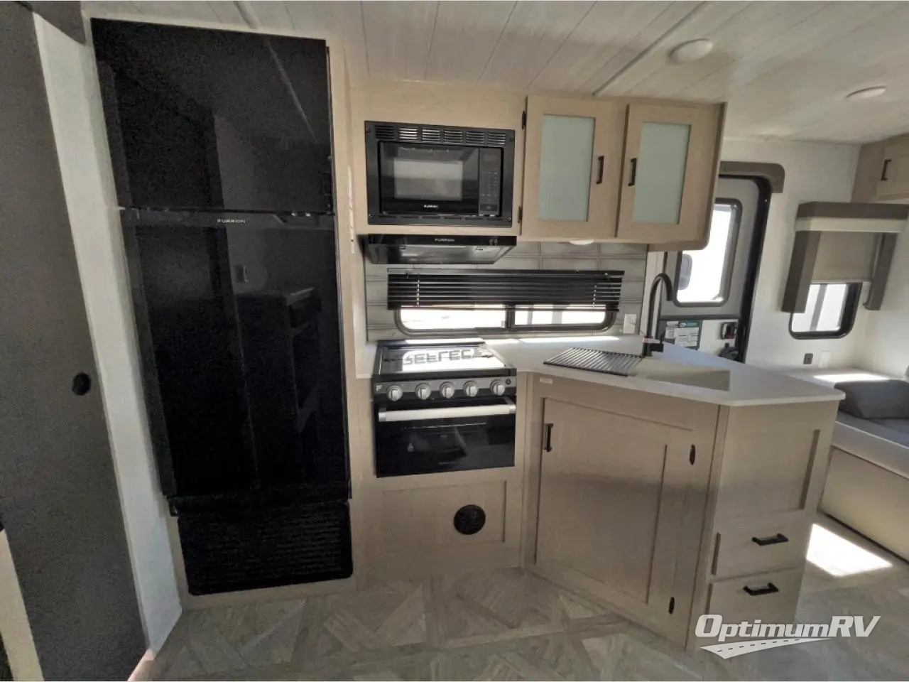 Whether it's a family vacation or a romantic getaway with your significant other, this Platinum Edition Wildwood X-Lite travel trailer will make it the very best! The master bedroom has many places to store items with the walk-in closet and bedside closets plus nightstands, and the walk-through bath also provides additional storage with a linen closet and vanity. The kitchen has modern amenities, like an 11-cubic foot refrigerator, a microwave, and a three-burner cooktop, plus the U-shaped dinette has panoramic windows that surround it to create an inviting space to spend your time. And you will enjoy the protection from the 16' power awning and the sturdy Step Above steps at the entry.