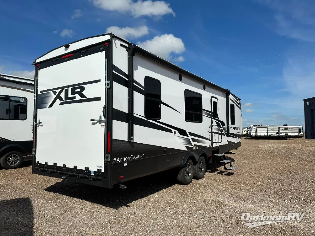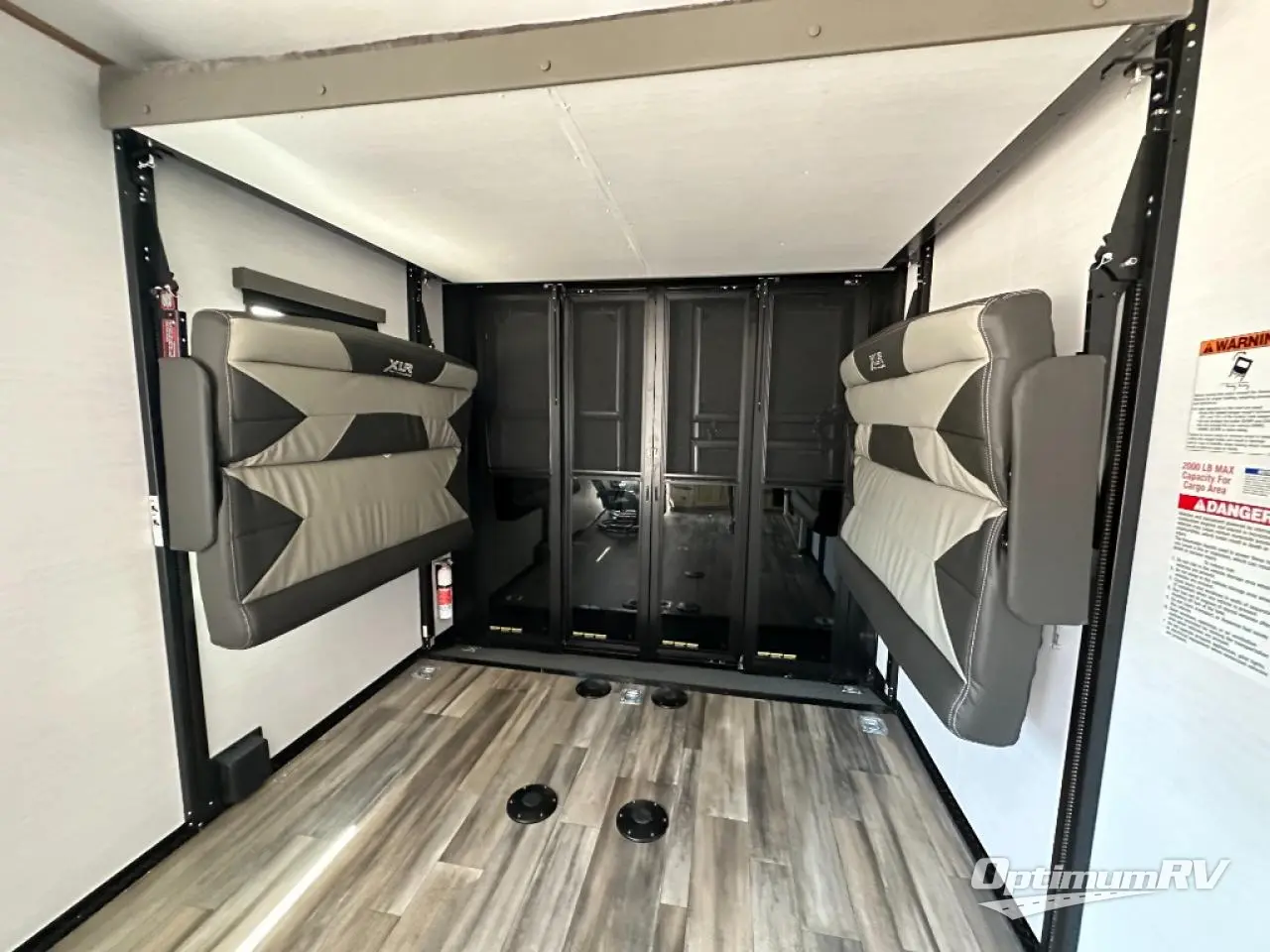With the XLR Hyper Lite toy hauler travel trailer by Forest River, there is a wider interior with a 74" width even when the slides are retracted in so you can enjoy modern decor, at-home amenities and custom styling. The garages are spacious and include 5,000 lb. cargo tie downs that are anchored to steel plates, an insulated floor, a black rear privacy screen, a ramp patio cable kit for outdoor fun above ground, and Alumi-tread rear entry steps to mention a few highlights. More standout features include MORryde CRE3000 premium suspension that smooths out even the toughest of roads, heavy-duty Dexter axles offering the best in class carrying capacities, and the XLR fully enclosed "Body Armor" underbelly that is insulated and uses a panel system for ease of access. So when you want to play hard, choose an XLR Hyper Lite that offers upgraded features, quality construction, and allows you the control of venturing on or off road!