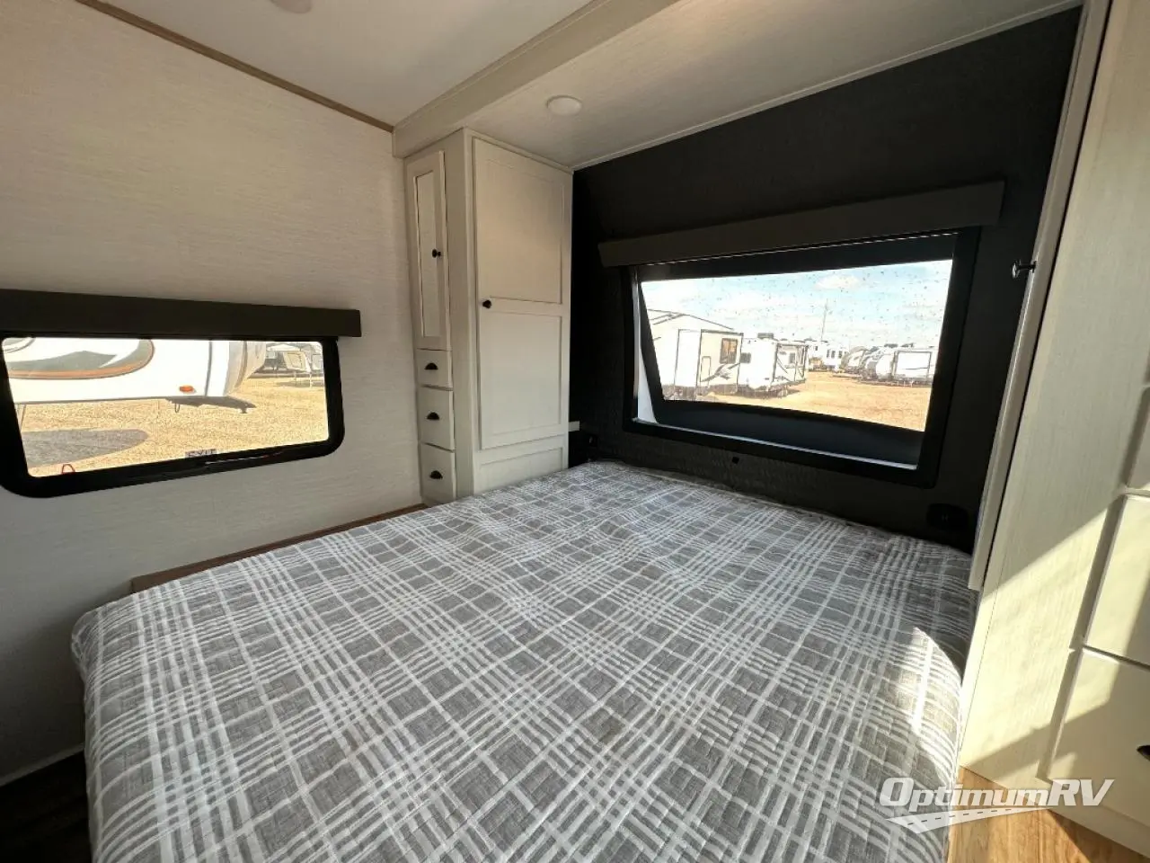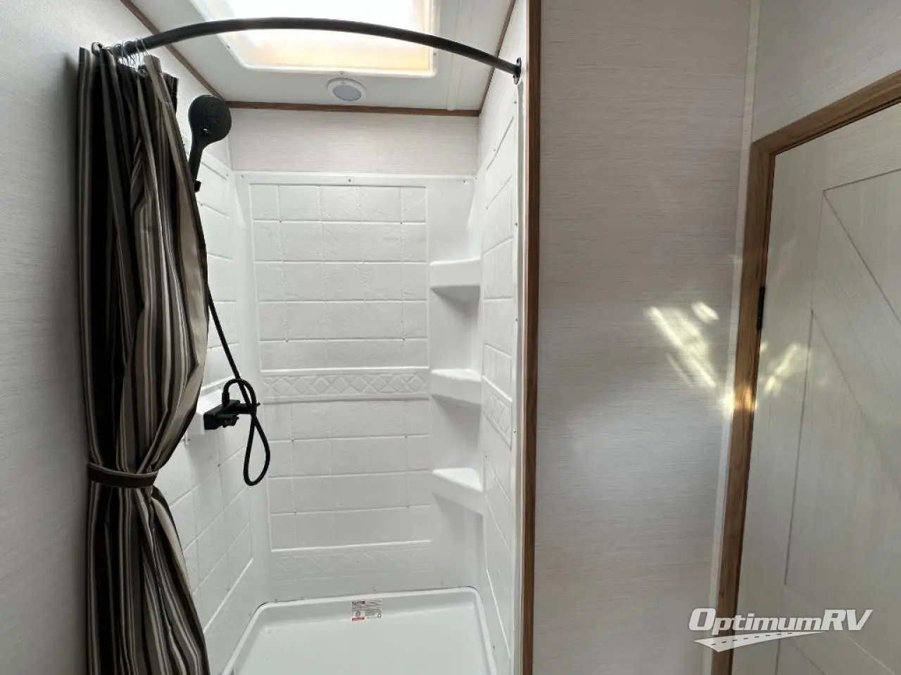 As you seek adventure with your toys, you can also require comfort in your own bedroom at the campsite! The front bedroom provides your own walk-around queen bed with dual wardrobes and windows with great views and natural lighting, plus access to the full bathroom with a radius shower. The main living and kitchen area offers two lounge chairs with end table in between to place your drinks on, dual sofas with dinettes in the rear to dine at, and a slide out with kitchen amenities plus there is extra counter space and a stainless steel single basin sink plus storage for the cook. You will love the hardwood cabinet doors, the grate style sink cover/drying rack, and the metropolitan grey countertops. And the furniture doubles as sleeping space, plus the electric bunk gives you room for two more.