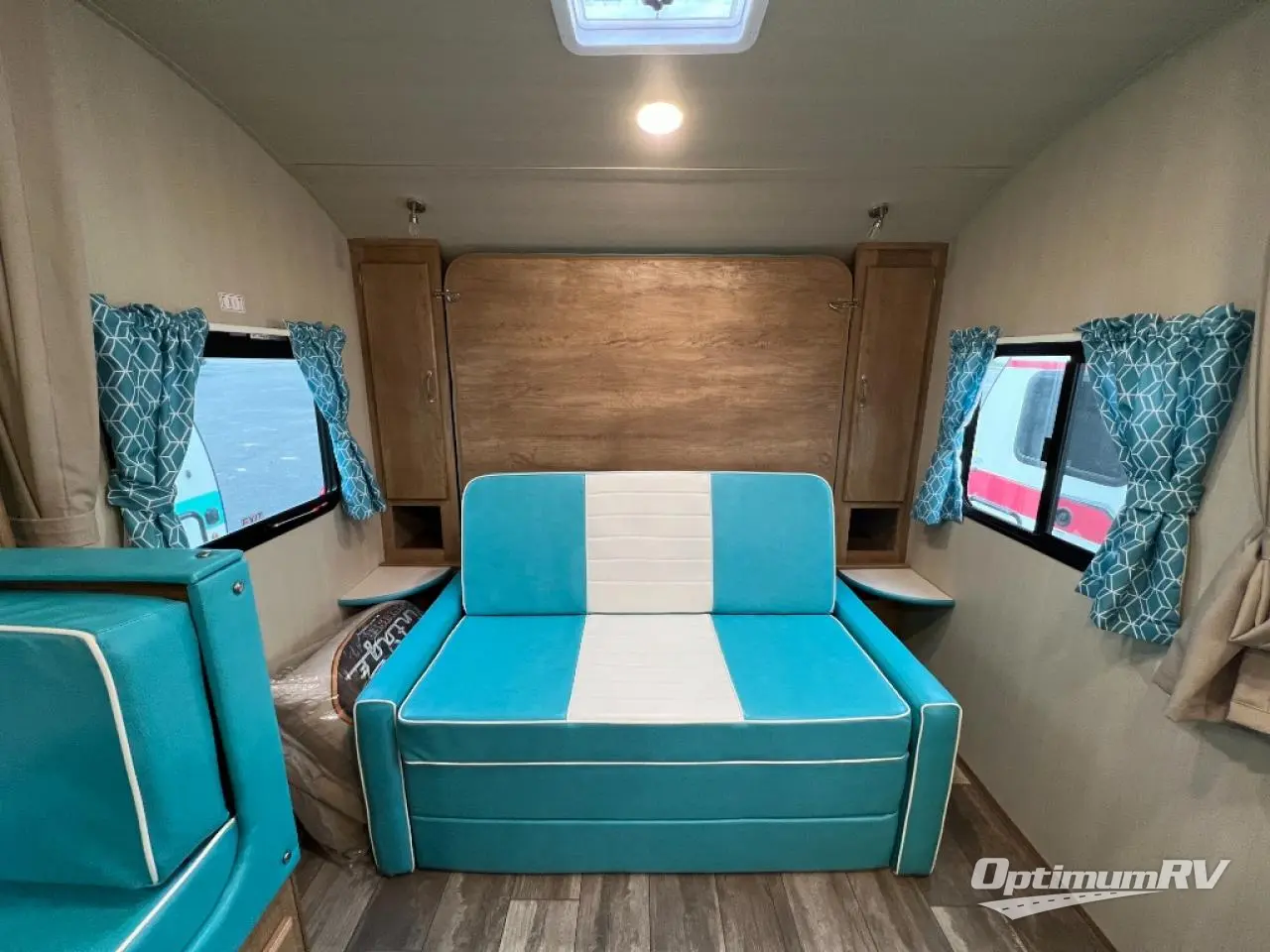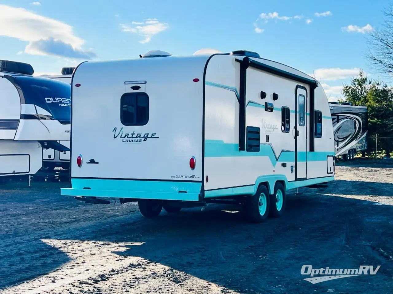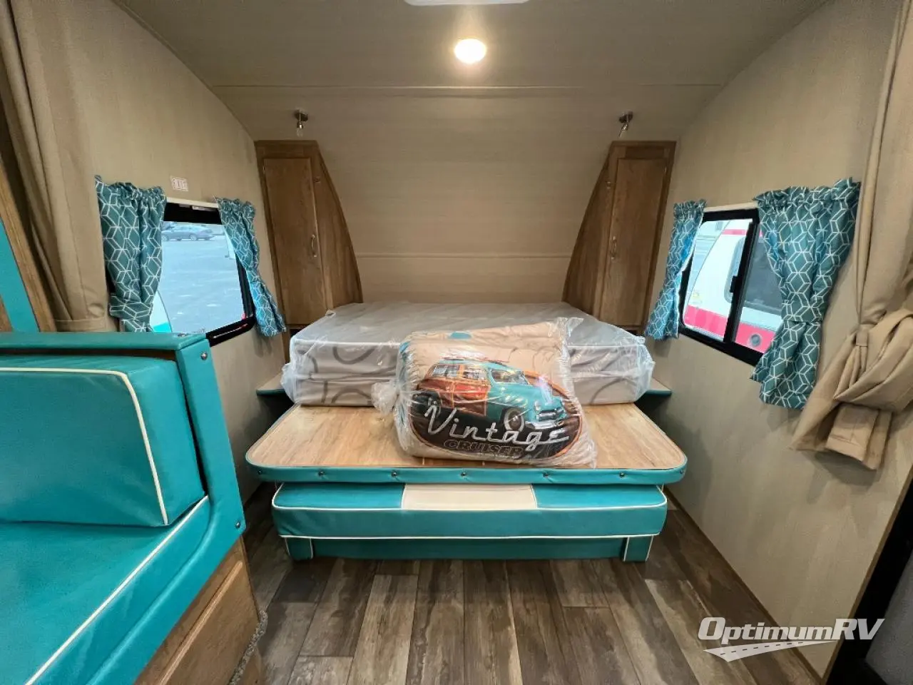 With any Vintage Cruiser by Gulf Stream you will be taken back to the fun of the 50's with vintage exterior graphics and classic interiors. Each model is constructed with a six-sided welded aluminum frame, vacuum bonded sidewalls with Azdel, and a vintage painted bumper you are sure to love. You may like to choose the optional "Woody" Package that includes an Oyster painted A-frame, Hickory Saddle floor vinyl, Southern Pine Sidewalls, and more rustic cabin features. The Vintage Cruiser travel trailers include high-performance vinyl flooring, LED interior ceiling lights, a seamless tub/shower surround, and vintage flat cabinet doors to name a few comforts you'll find throughout. These models are also prewired for roof A/C and come with a standard 20,000 BTU furnace or a 16,000 BTU furnace, depending on the model you choose. Nostalgia is waiting for you with a Vintage Cruiser!