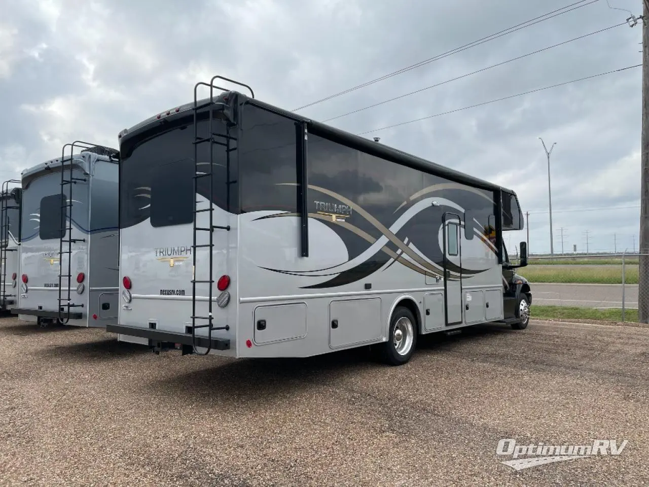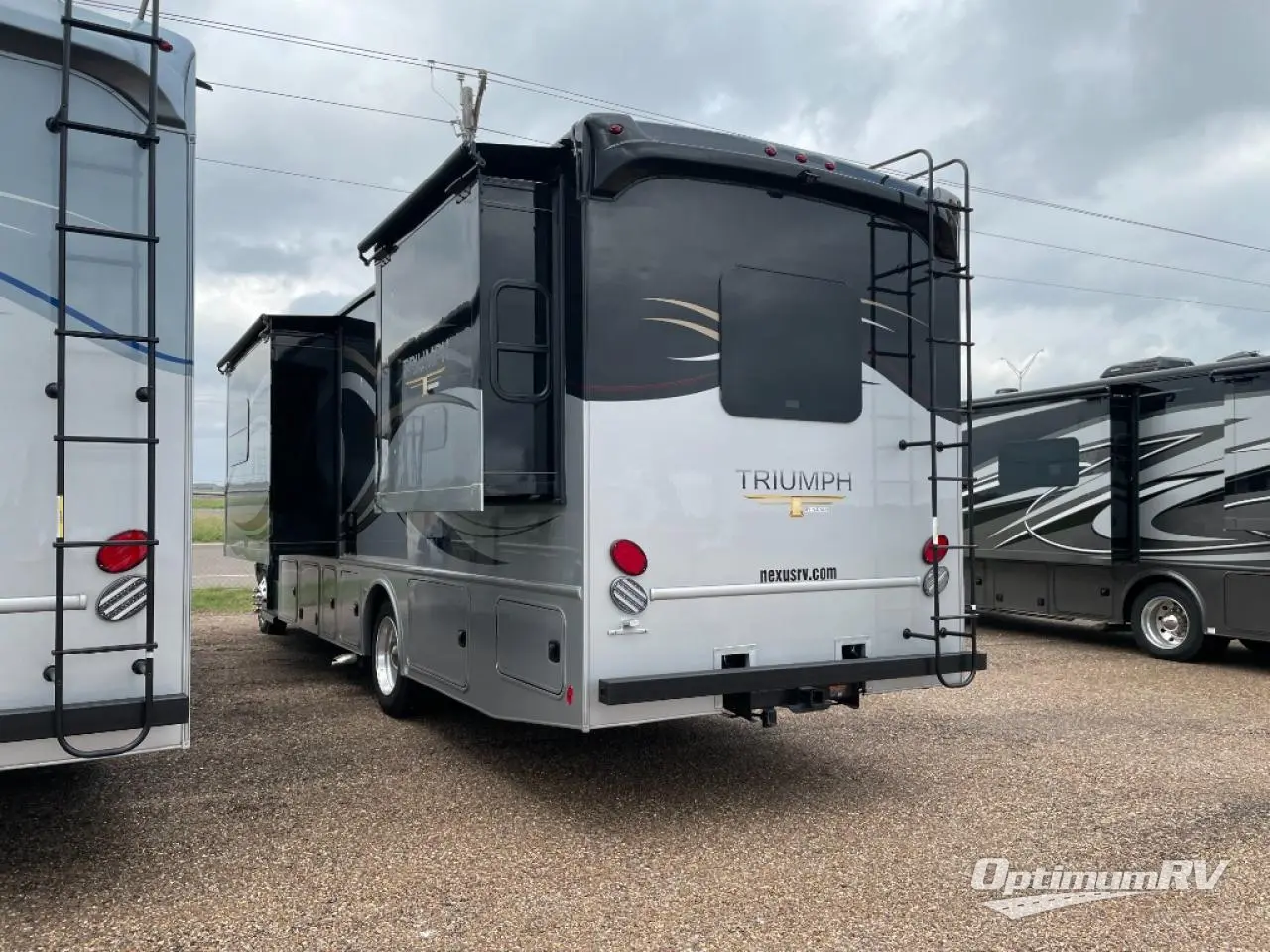 Step up to the diesel pusher lifestyle with the Triumph Super C diesel motorhome by NeXus RV. You will appreciate the solid foundation thanks to the high strength low alloy lightweight steel cage, the seamless fiberglass sidewalls, and the laminated steel framed floor. Each model includes rubber-lined galvanized trunk boxes and slam latch compartment doors with struts so you can bring along all your comforts from home. The 35K furnace and two 13.5K BTU ducted roof A/C's ensure your comfort all year long, and each mode includes a 6.0 Onan diesel generator to keep your adventures running. You will love all the interior amenities that have been included for your comfort, like the stainless steel sinks, the eye-catching window treatments, the water filtration system throughout, and much more!