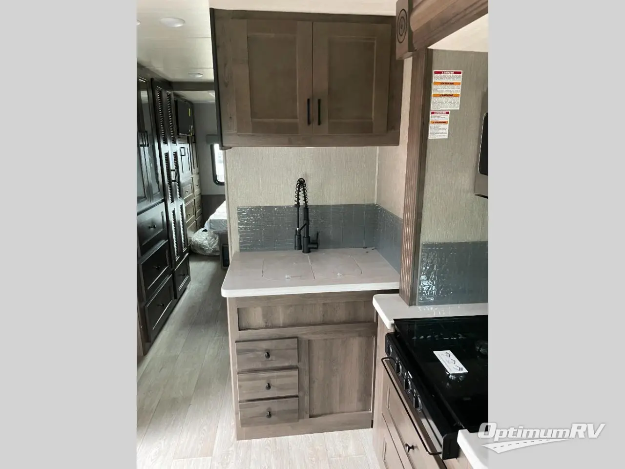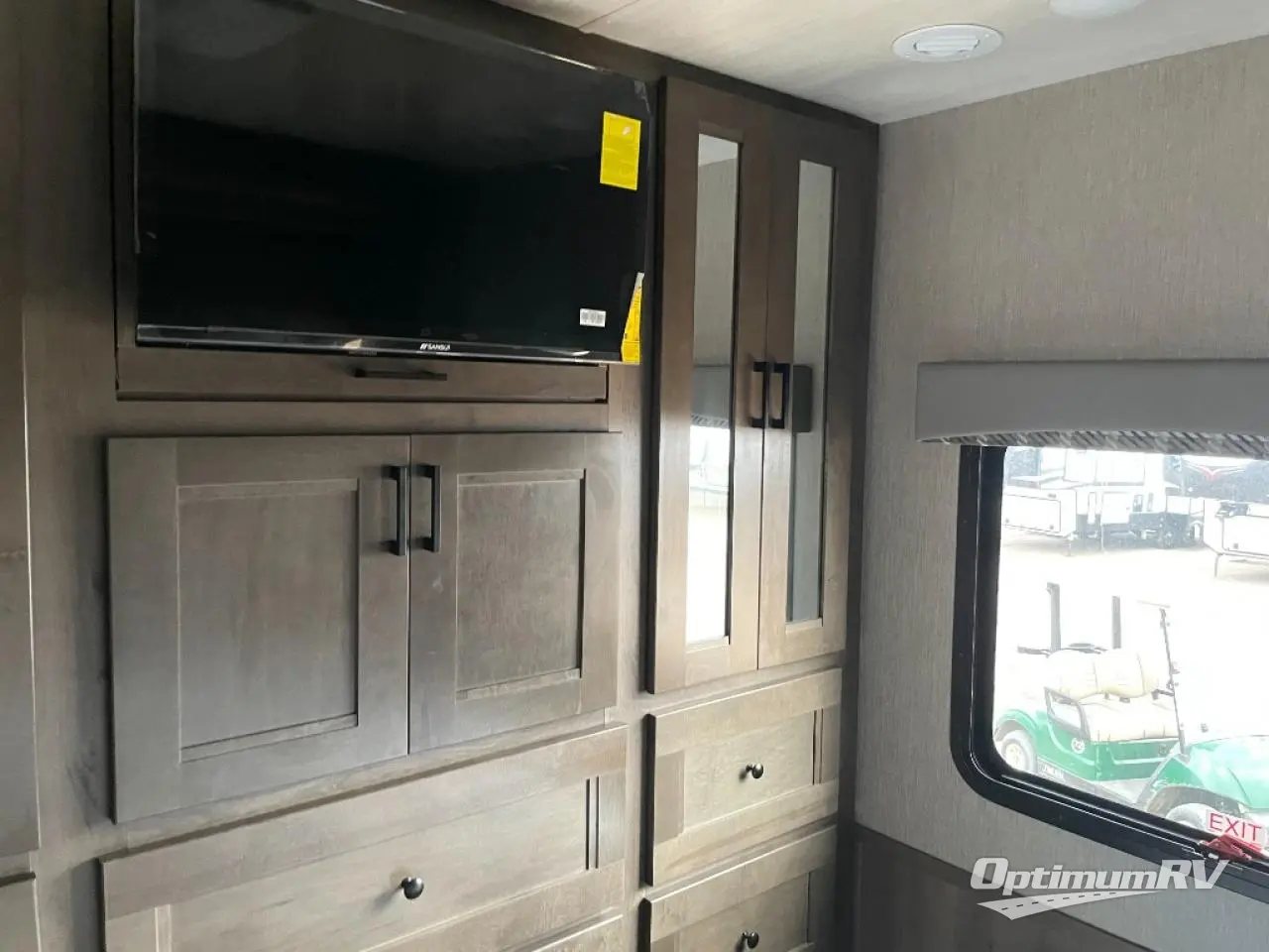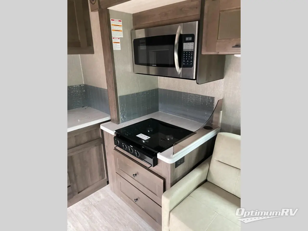 Visiting family a few states over has never been easier than in this spacious Triumph Super C. You will find plenty of storage space including a pantry and three wardrobes. One of the wardrobes even has a space that has been prepped to add an optional washer and dryer for easy full-time RV living. The grandkids can tag along since there is sleeping space for them on the cab-over bunk, the booth dinette, and the jackknife sofa. You and your spouse will enjoy the rear private bedroom all to yourselves with a queen bed, a large wardrobe, and an optional TV if you want to watch a late night movie. The full bath will provide complete privacy when getting ready each day, and there is even a shower skylight for more standing room and natural light. If you enjoy cooking breakfast outdoors, make sure you choose the optional exterior kitchen!
