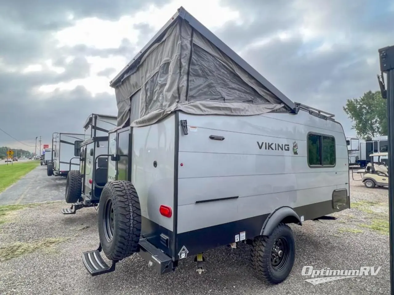 Make your camping life easier by choosing the Viking Express Series folding pop-up camper! The interior offers you 100% adhesion residential-grade linoleum, dark ash cabinetry, and residential laminated countertops. You'll also have 12V LED interior lights to help you see. The exterior is constructed with an E-coated tubular steel frame, and there are heavy-duty tongue jacks with wheels, Wide Trac ultra-lube spring axles, electric brakes, and radial tires. The laminated fiberglass roof and automotive-grade metal will protect the exterior for years to come.