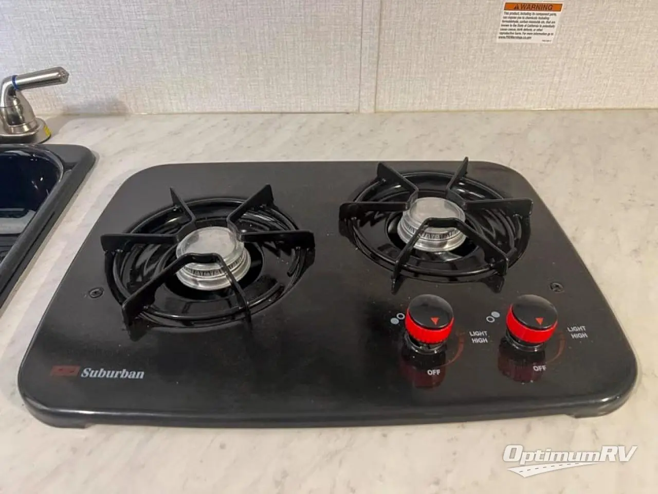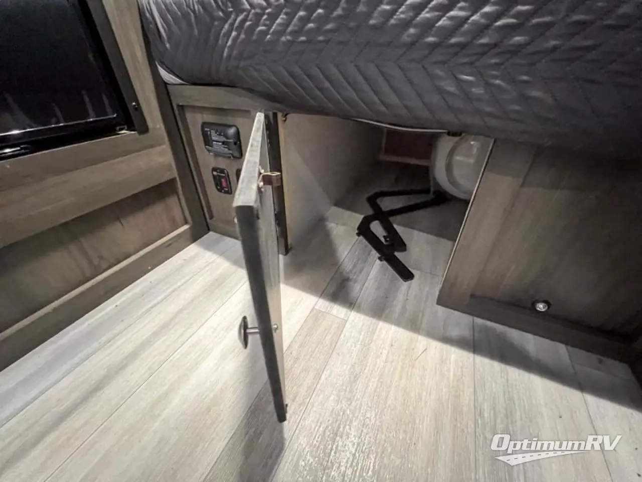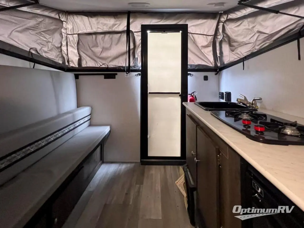 You can take this Viking Express Series folding pop-up camper to any campground of your choice! There is a 1.9-cubic foot refrigerator that will allow you to bring fresh orange juice and eggs with you on your journeys, and the storage above the 60" x 74" bed will hold personal belongings. There is another storage area to the right of the entry door, and this flip-lid storage can hold additional gear. Stay cool with an air conditioner, and use the gaucho bed as a lounge space or sleep space.