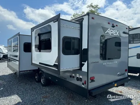 Lightweight living and camping is found with the Apex Ultra-Lite travel trailers by Coachmen. These eco-friendly units are made to last thanks to the Azdel composite sidewalls, the laminated aluminum floor, and the vacuum-bonded laminated crowned roof. Easy lube axles make towing easier than ever, plus there is a friction hinge entrance door, a 200-watt solar panel with a 30 Amp control charger, and slam latch baggage door catches for easy unloading. Some of the interior comforts you'll fall in love with are the one-piece seamless edge countertops, the hard valances with night shades, the matte black hardware, and the Casino Bisque cabinetry. The Apex Ultra-Lite trailers also include USB ports, a digital TV antenna with cable hook-ups and Wi-Fi capability, and a 13.5K BTU A/C to keep you comfortable all summer long!