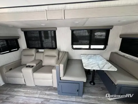 Enjoy each adventure camping in this Apex Ultra-Lite unit featuring dual entry doors. There is sleeping for up to six with the convertible dinette and sofa, plus a queen bed slide in the rear private bedroom that includes super storage beneath. This bedroom also features a large wardrobe near the private bedroom entry door. The front kitchen has everything you need to prepare hearty camp meals easily thanks to the large counter space for prepping. A booth dinette and sofa slide offer seating for everyone and all will easily be able to view the entertainment center with TV and cozy fireplace from either one. A large pantry is conveniently located just inside the main front most entry door where you can quickly grab a snack for outside, or load up groceries once you shop for your trip. You will also love the exterior camp kitchen to cook meals outdoors!