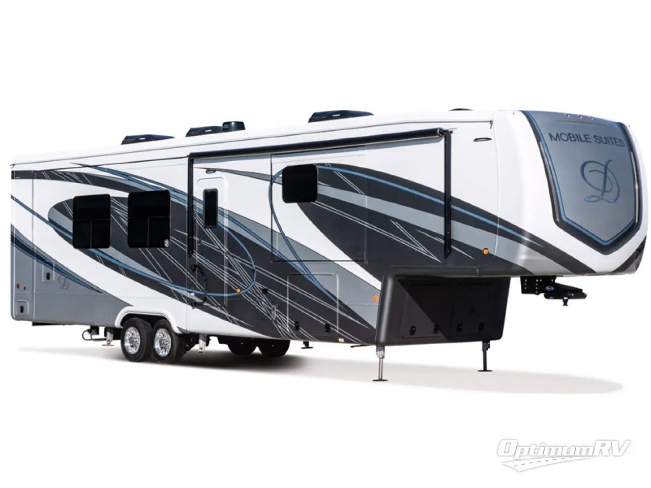 With any Mobile Suites fifth wheel by DRV Luxury Suites you will enjoy durable construction, beautiful interiors, and tons of storage spaces. The MORryde I.S suspension with MORryde pin box helps absorb road shock for a smooth towing experience, and the six point hydraulic leveling system will make set-up a breeze. Each model includes hassle-free conveniences, like the SeeLevel tank monitoring, the fully ducted A/C system with cold air return, solar prep, and much more! The interior is packed with luxury features, such as custom hardwood wardrobe doors, LED ceiling lights with dimmer switches, crown molding throughout, and custom hand laid glass backsplash. You may spend all your time relaxing indoors, but don't forget to check out the exterior. A power awning with LED lights, extra thick compartment doors with gas struts, and a custom painted exterior with clear coat are just a few features that are sure to be a deal breaker! You might even want to choose between the two optional full-body paint choices within the Elite Package, and many more available options to further customize your fifth wheel!