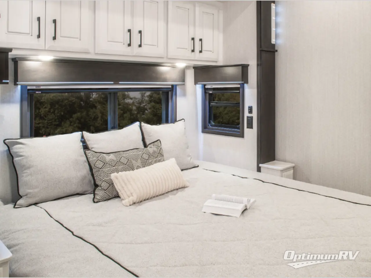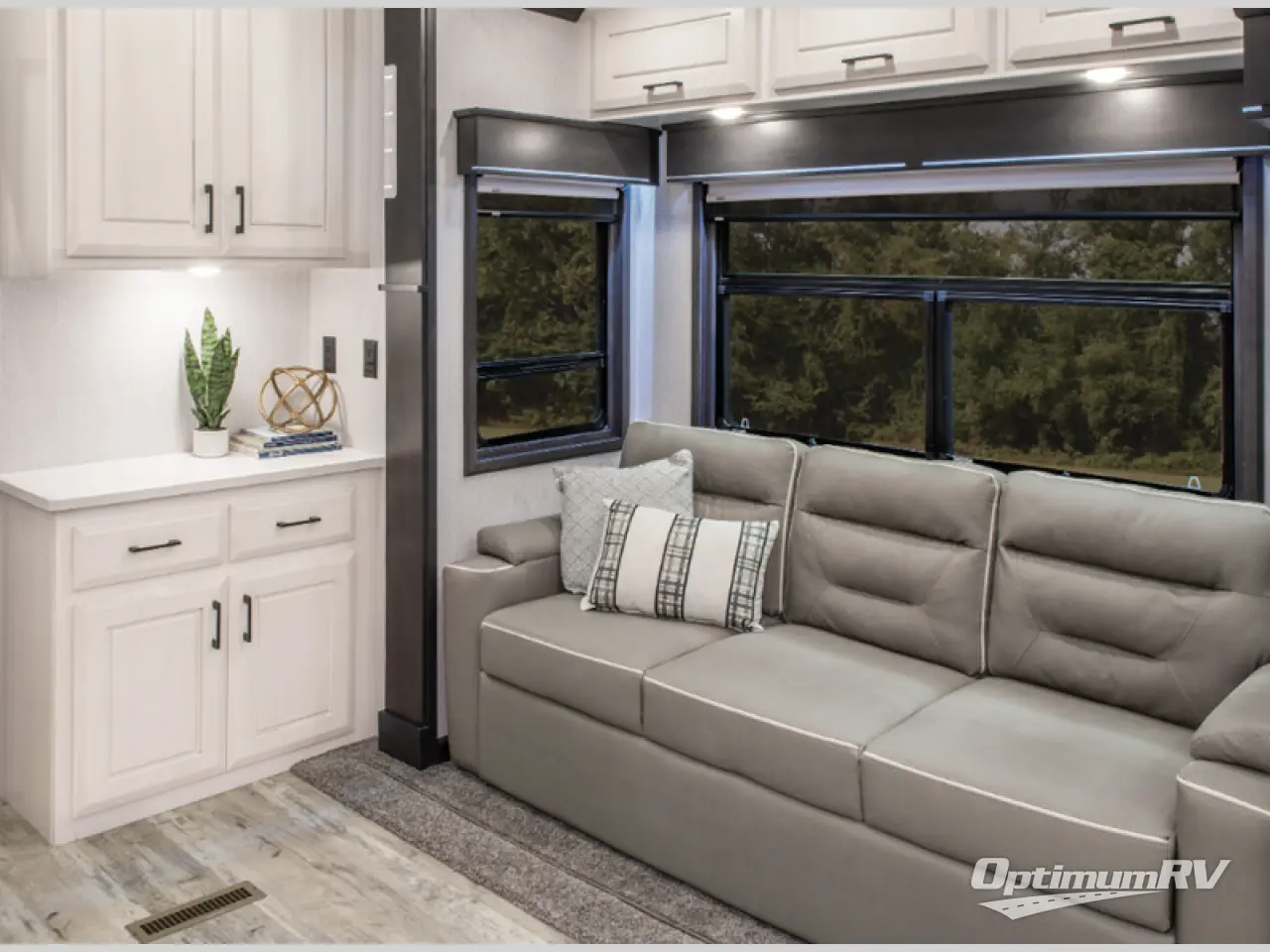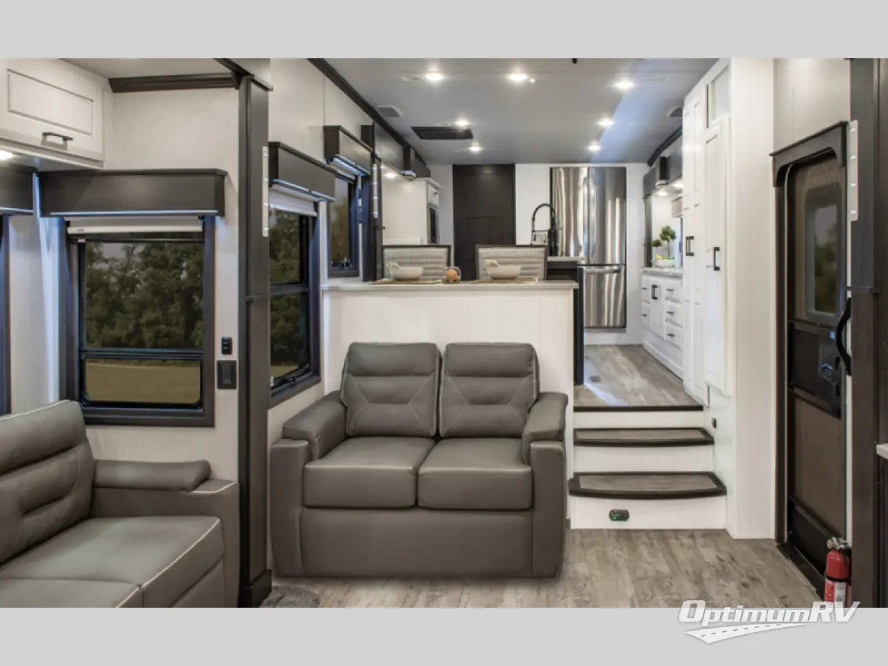 Luxury abounds in this fifth wheel made for full-time living! Step inside and you'll be wowed by the large living area with two sofas, and an entertainment center with a fireplace and Smart TV. The kids or your guests can make this area their bedroom at night, while you and your spouse claim the master suite all to yourselves. Here, you'll sleep soundly on the king bed, and you'll find plenty of storage space, including a dresser for your clothes. You will love waking up in the morning and heading to the gourmet kitchen up front that includes a lighted pantry, dual slides for added space, plus a counter with stools the kids are sure to love. This model also includes its own designated closet with washer/dryer prep. The only thing missing in this fifth wheel is you!