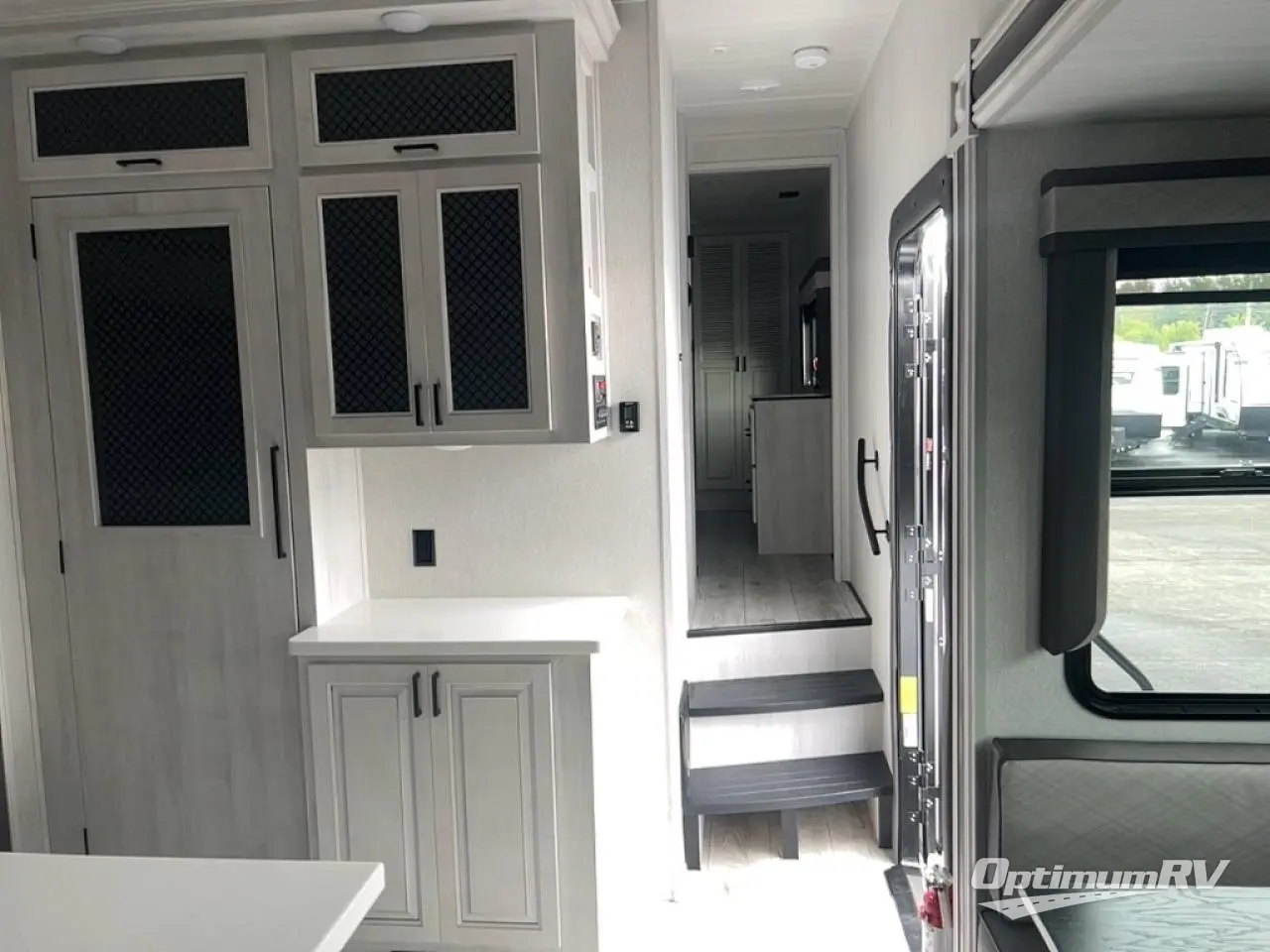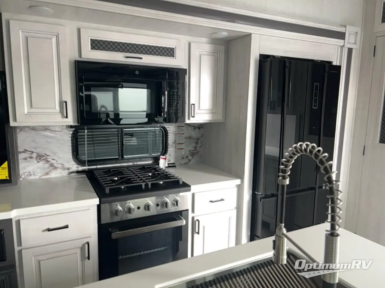 There is just too much luxury to name on the EAST TO WEST Ahara fifth wheel! These units are quite impressive, and once you see them, you'll know what we mean. The Ahara first grabs your attention with its hi-gloss gel-coated fiberglass exterior which showcases two power awnings with LED lights, an LP quick connect, an exterior cable/satellite hookup, and a universal all-in-one docking station. For towing, you'll find a MORryde CRE 3000 suspension, Dexter Gladiator thick-wall 7,000-LB axles with Nev-R-Adjust brakes, and preparations for a rearview camera. Traveling during all seasons is also made easy with the high-efficiency triple A/C system, a 40,000 BTU high-capacity furnace, a heated, insulated, and enclosed underbelly and dump valves with circulating heat, and Radiant Technology Composites insulation in the roof, front cap, and underbelly.