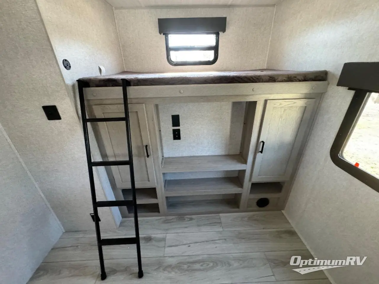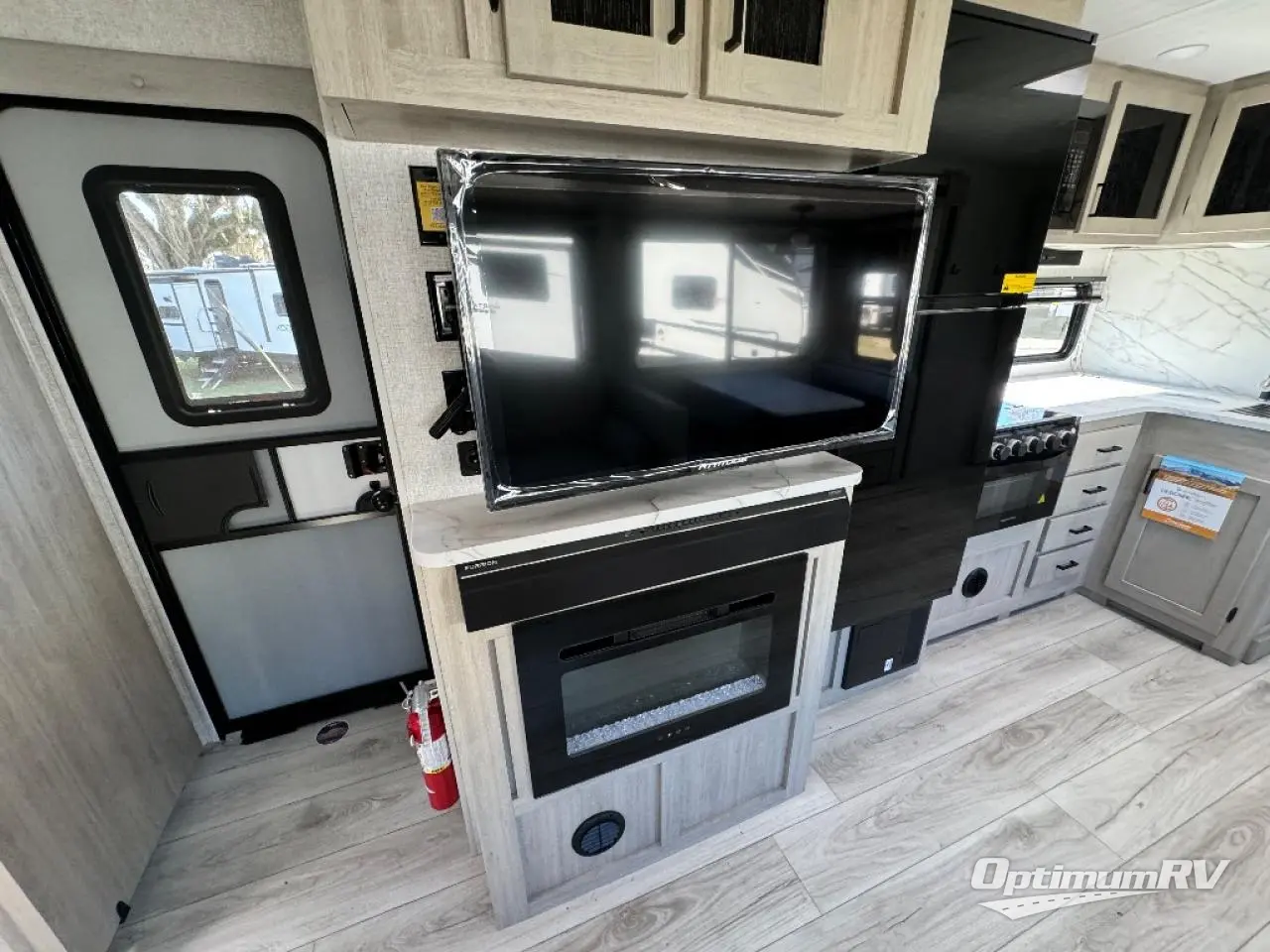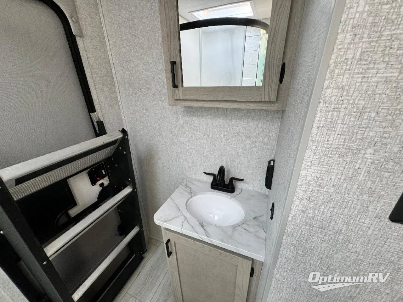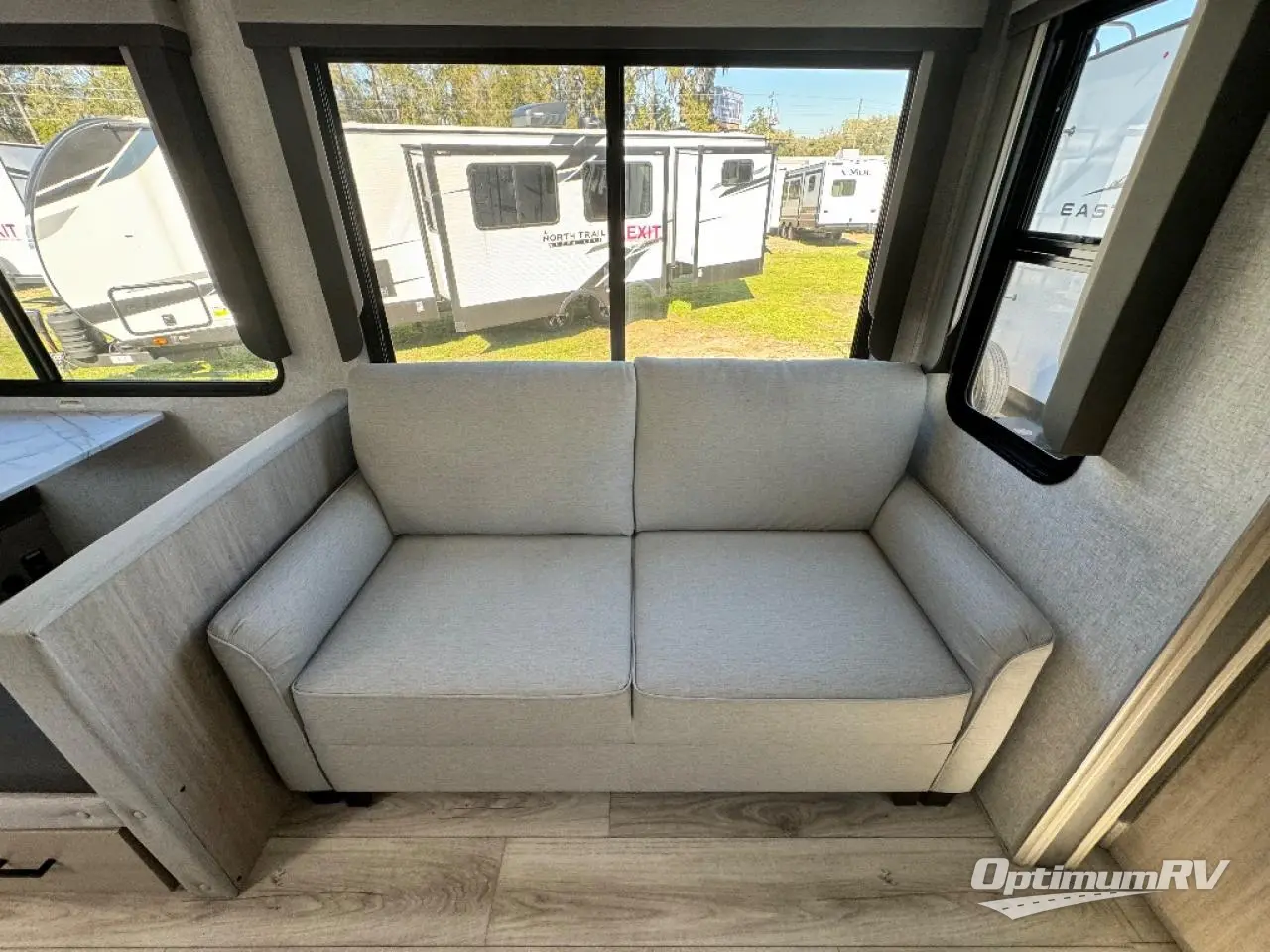 If you're looking for a travel trailer to take tailgating, this Alta model is the one! After you've unloaded the pass-through storage and set up the 21' power awning, start lunch on the outside kitchen! Since there are dual entry doors you can enter in through the main living area, or the full bath for convenience. The little ones are sure to spend most of their time in the rear bunkhouse that includes a flip-up bunk under the sofa, plus a second bunk across the room. The adults can visit at the booth dinette or on the tri-fold sofa, and check out the front private bedroom with sliding doors and a king bed for all-around comfort!