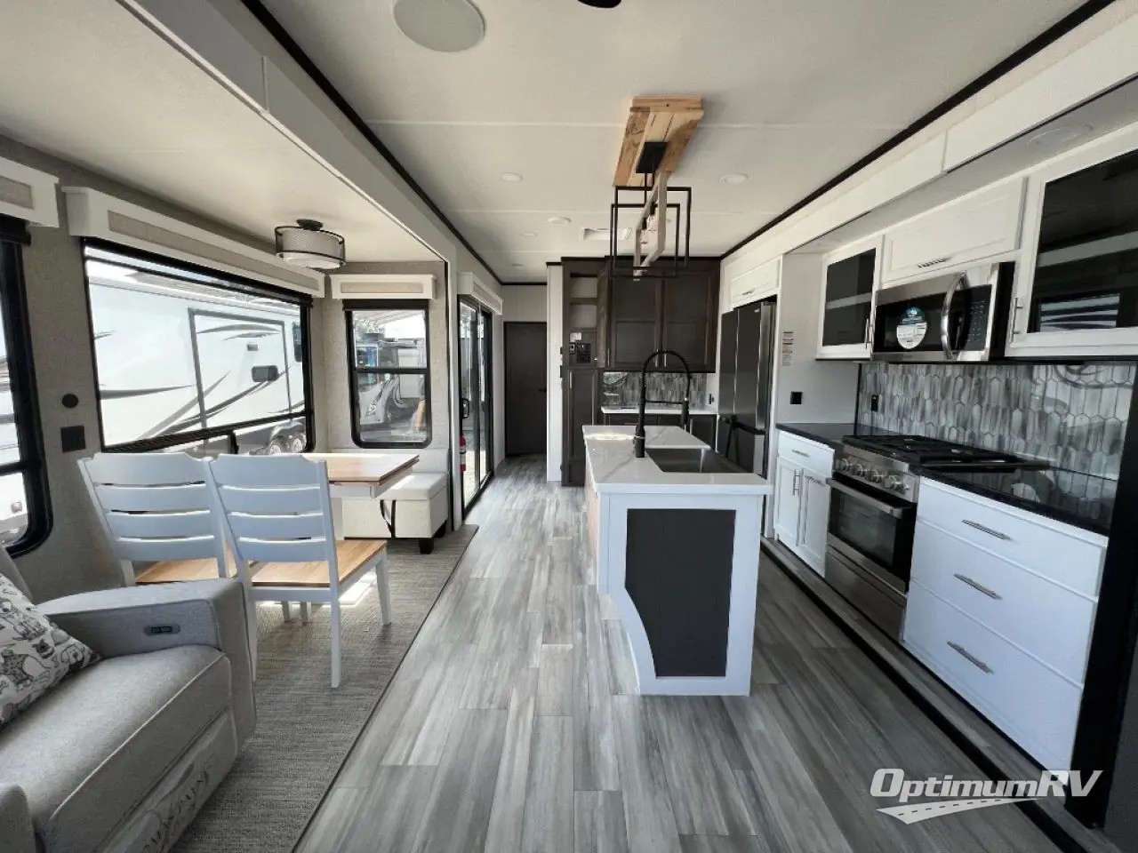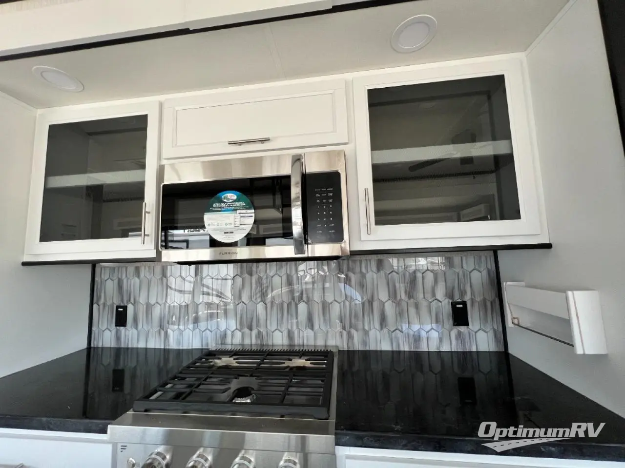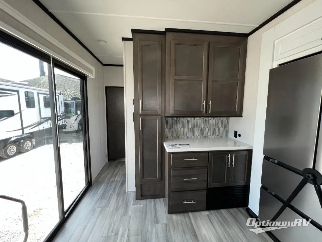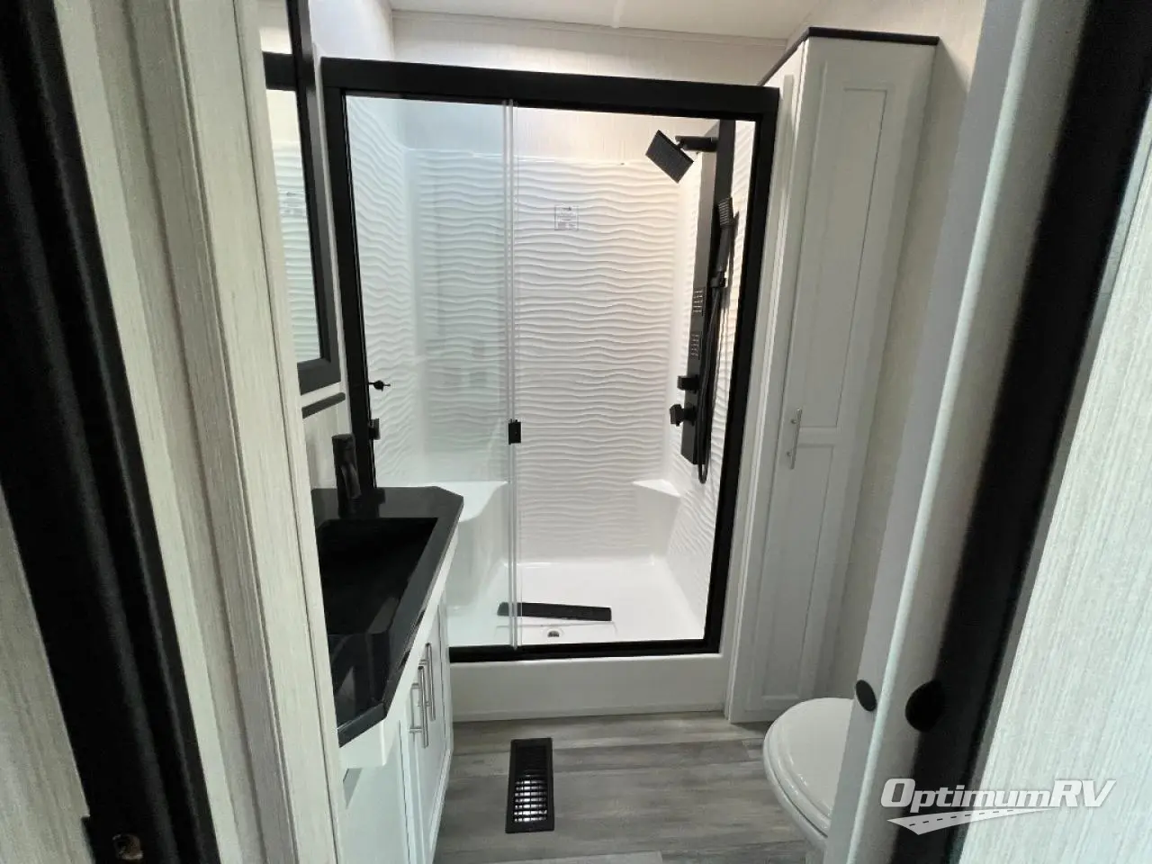 Spend some time getting to know your family a little bit better in this Cedar Creek Cottage destination trailer! You will have plenty of space to do all sorts of indoor activities with the opposing slides and king bed slide, and the free-standing table with chairs has a hidden table leaf extension that you can use if you are working on a bigger puzzle or have guests over for dinner. The kitchen has a Create-A-Breeze Fantastic Fan with thermostat and rain sensor to keep you cool as you work on the 24” free-standing four-burner gas range and stainless steel 30” over-the-range microwave with built-in vent. The full pantry has all the space needed to store many treats, and you can add an optional dishwasher to help you clean up much faster.
