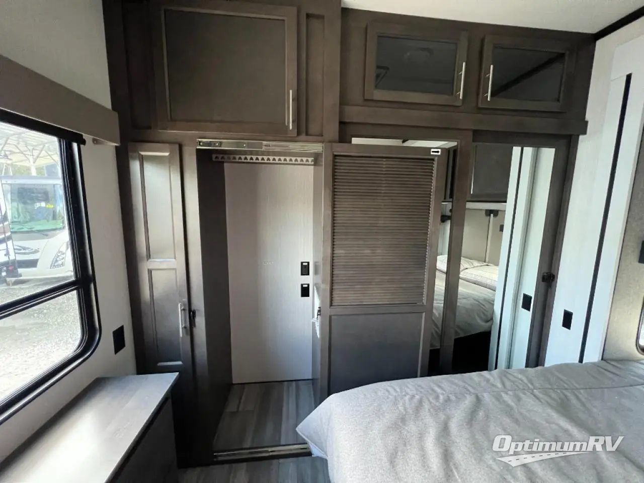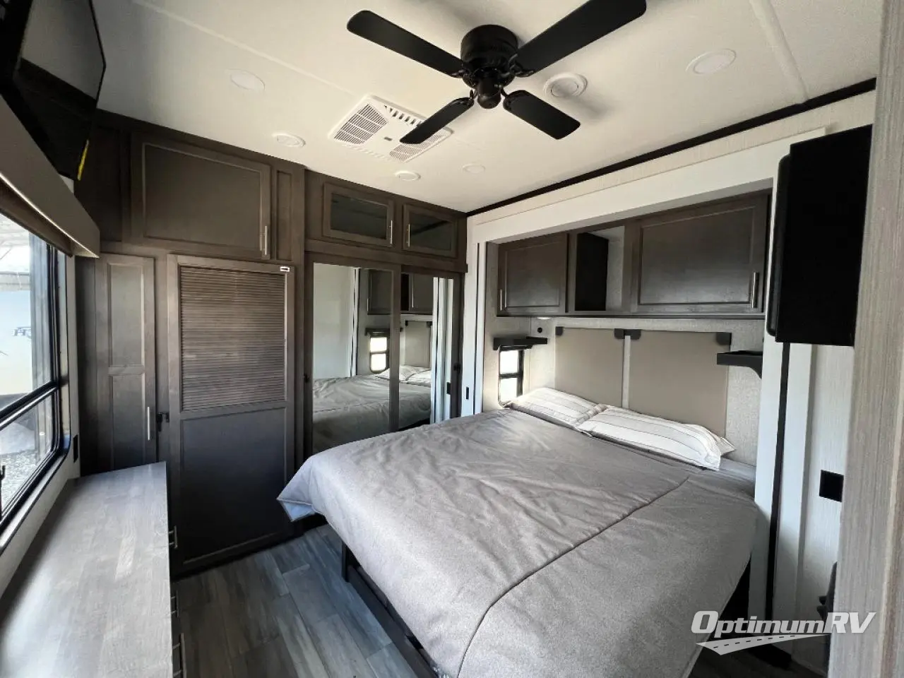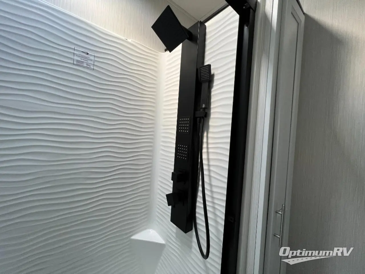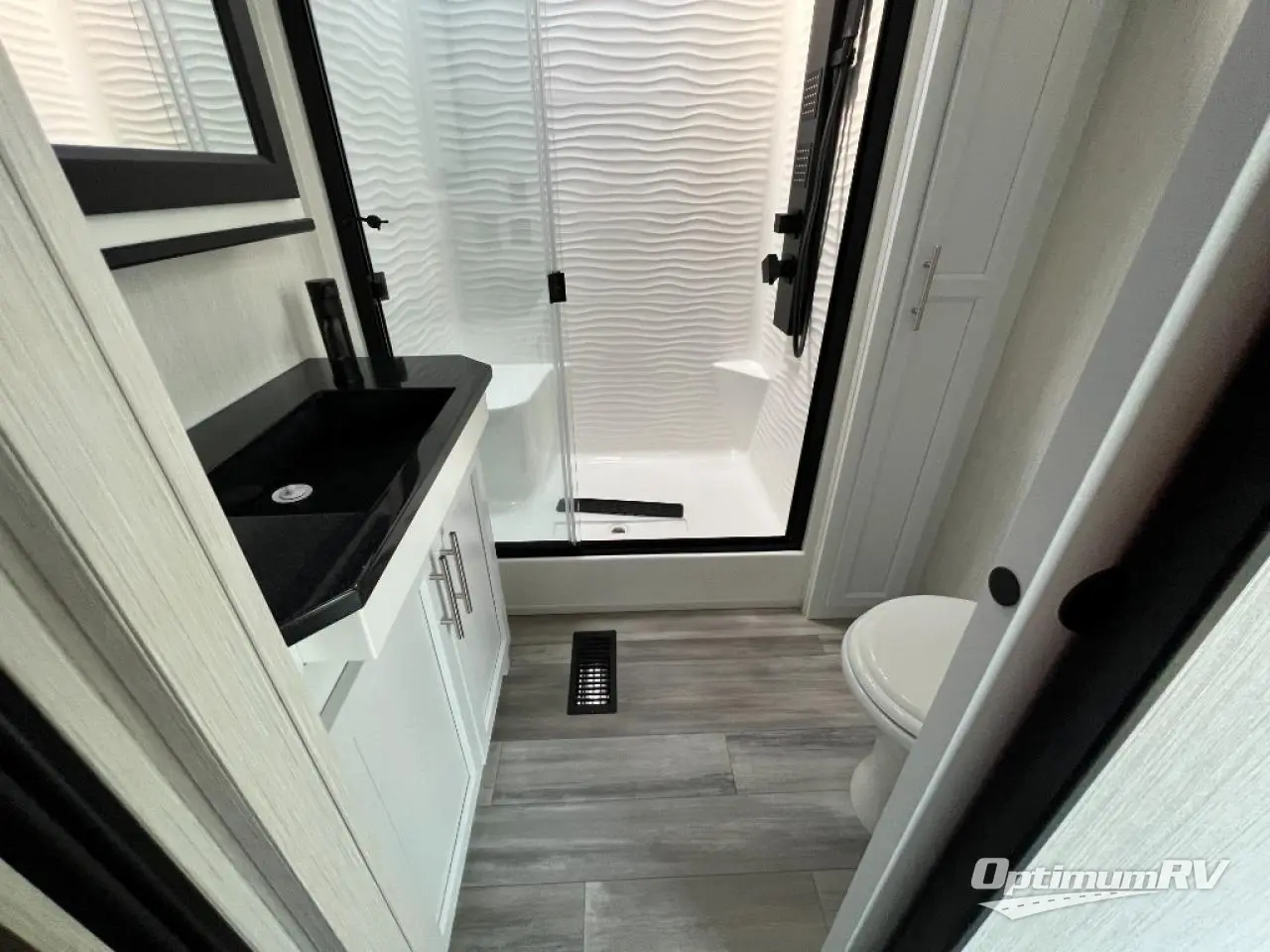 Spend some time getting to know your family a little bit better in this Cedar Creek Cottage destination trailer! You will have plenty of space to do all sorts of indoor activities with the opposing slides and king bed slide, and the free-standing table with chairs has a hidden table leaf extension that you can use if you are working on a bigger puzzle or have guests over for dinner. The kitchen has a Create-A-Breeze Fantastic Fan with thermostat and rain sensor to keep you cool as you work on the 24” free-standing four-burner gas range and stainless steel 30” over-the-range microwave with built-in vent. The full pantry has all the space needed to store many treats, and you can add an optional dishwasher to help you clean up much faster.