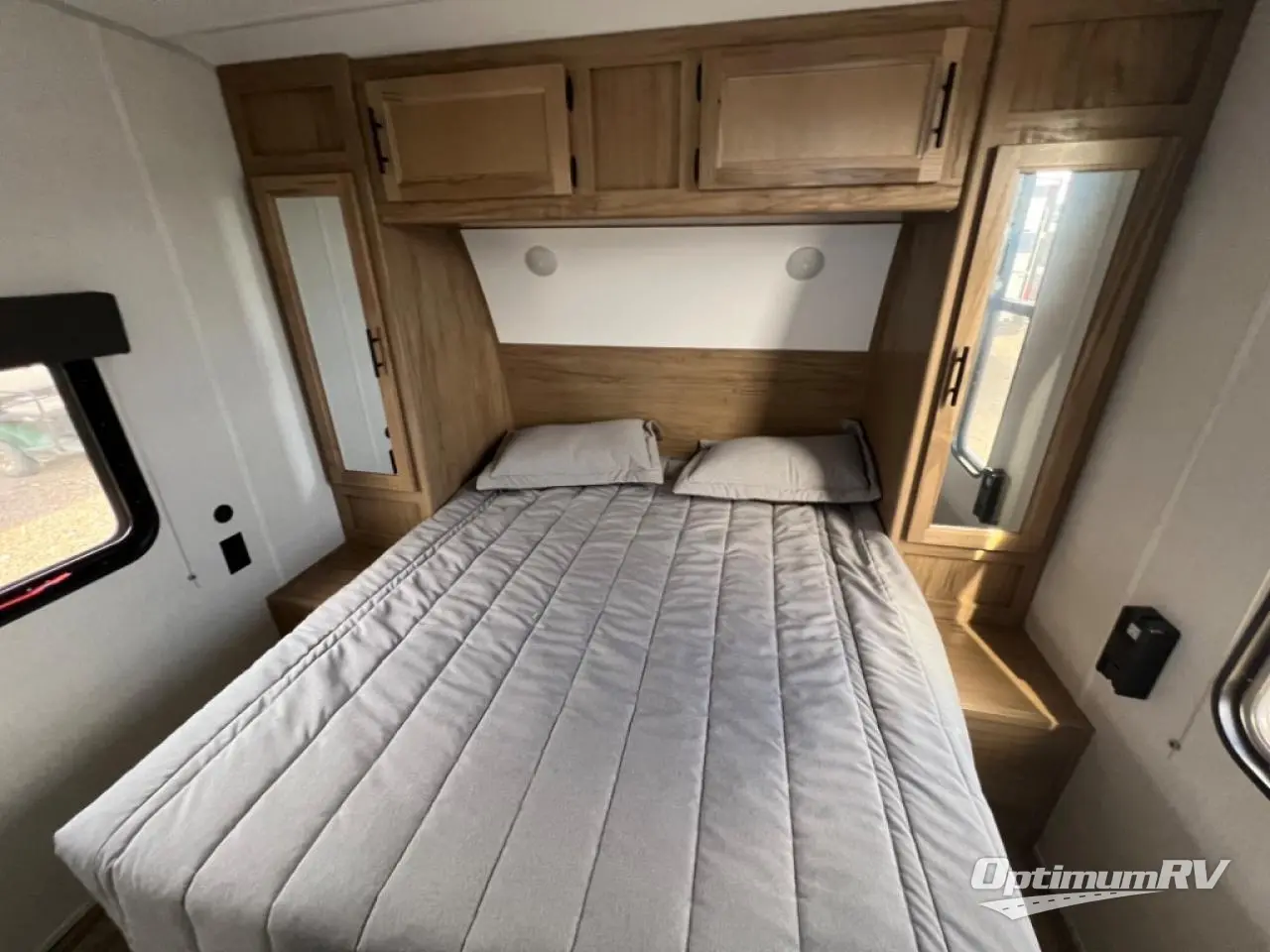 Your larger family will love spending weekends away with this Cherokee Grey Wolf travel trailer as their home away from home. This model offers lots of sleeping space with three bunk beds in the rear private bunkhouse. In the front, there is a master suite with wardrobes and nightstands on either side of the queen bed, and it even has private access to the dual-entry bath. The two entry doors will make accessing the trailer easy for everyone, and you will appreciate the abundant storage throughout this unit including large overhead cabinets, an oversized pantry, and numerous outside storage compartments for all of your outdoor gear. You also even have an outside bar & grill!