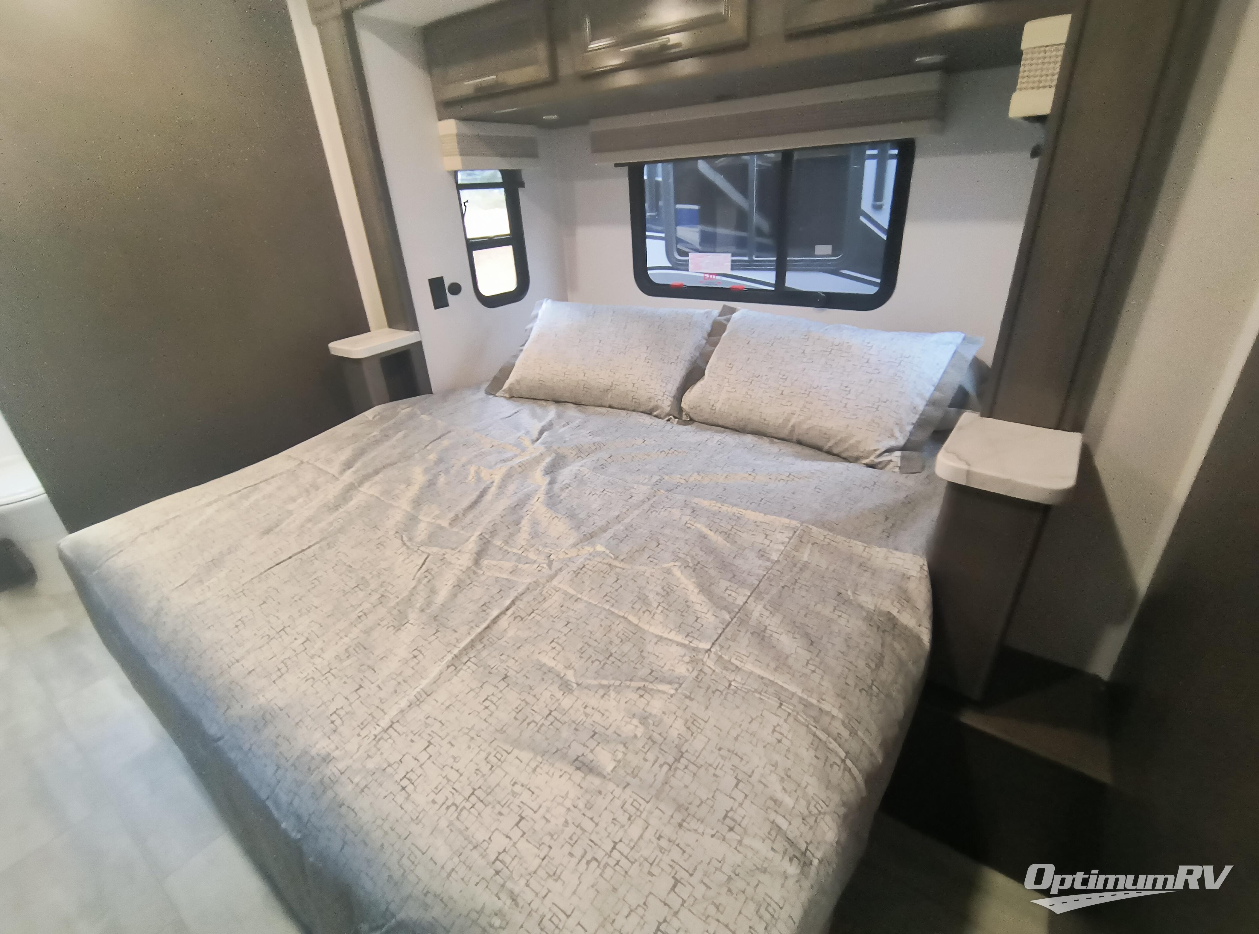 Three slides help to open up this motorhome! The kitchen slide features all of your essentials for cooking delicious meals and you even have a hutch with overhead cabinets to store all of your dishes. The Dream Dinette and Thomas Payne theater seating slide not only open up the living area, but also provide comfortable places to eat meals and unwind in front of the 5,000 BTU fireplace and 40" LED TV after a long day of traveling. The half bathroom is close to the kitchen and living area so you don't have to go far for a quick bathroom break. The master suite will have you feeling right at home with a 72" x 80" king bed slide to lay your head on at night with a dresser across from it that also has a 32" LED TV and wardrobes on either side of it with one of them with an optional washer and dryer. Plus, you even have access to the full rear bathroom which has a shower with a seat to freshen up in each morning!