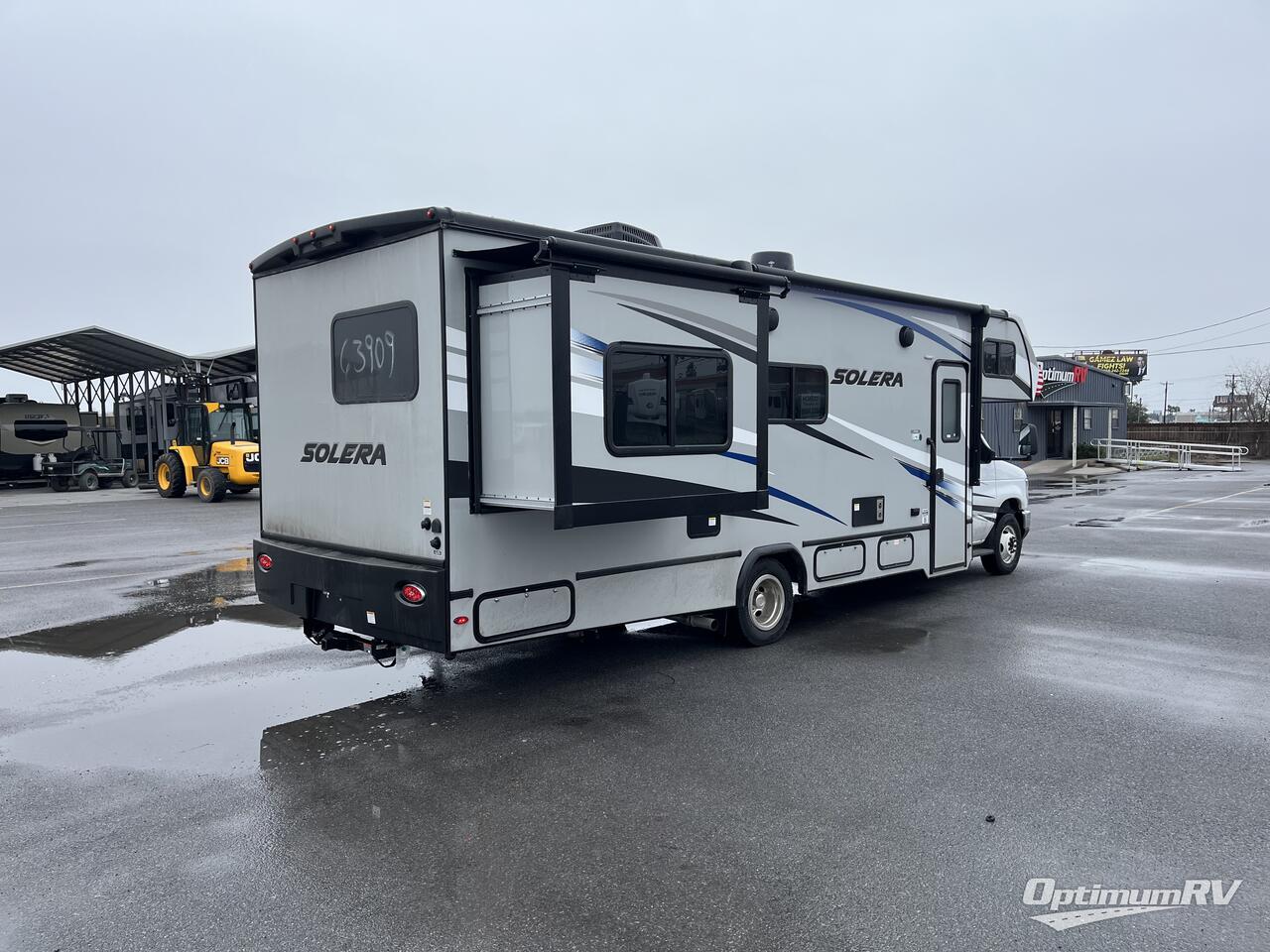Each one of these Forest River Solera Class C gas and diesel motorhomes proclaim the style of a new generation! There is a convenient keyless entry, a backup and side view camera system, and a 10" in-dash touch screen Apple Carplay/Android Auto radio. The Ford E350/Chevy 3500, Ford E450 or Mercedes-Benz Sprinter 3500 chassis also help with the smooth ride. Each model includes aluminum framed laminated sidewalls, superlite composite substrate, and a gel coat exterior fiberglass for added durability. Inside, you will enjoy the MCD roller shades, residential style furniture with Fortress stain resistant fabrics, soft touch self-closing drawer guides, and many more comforts. And you can stay connected where ever you go with the Winegard Air 360+ antenna with Gateway 4G WiFi capability.