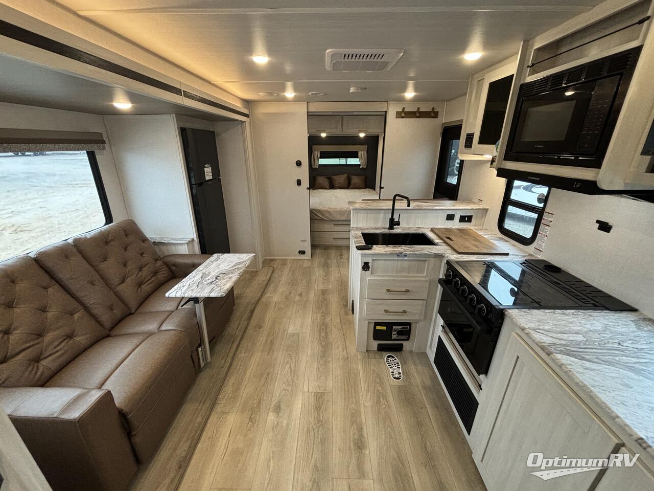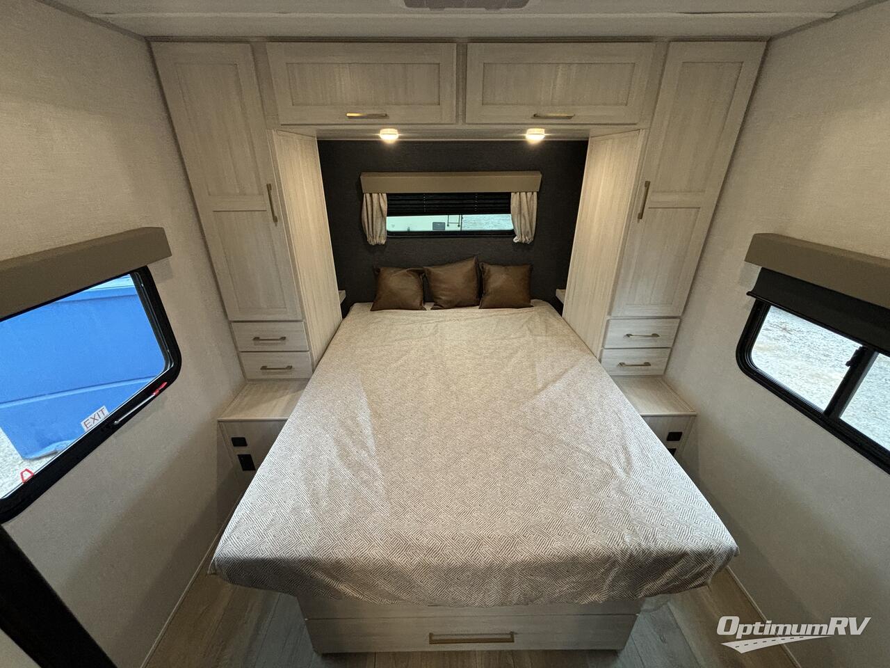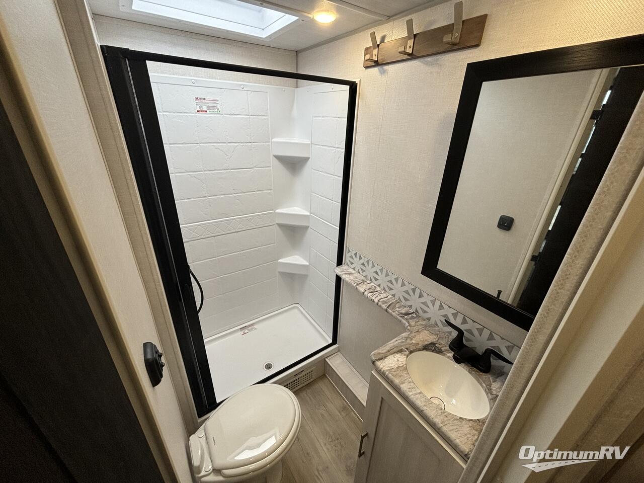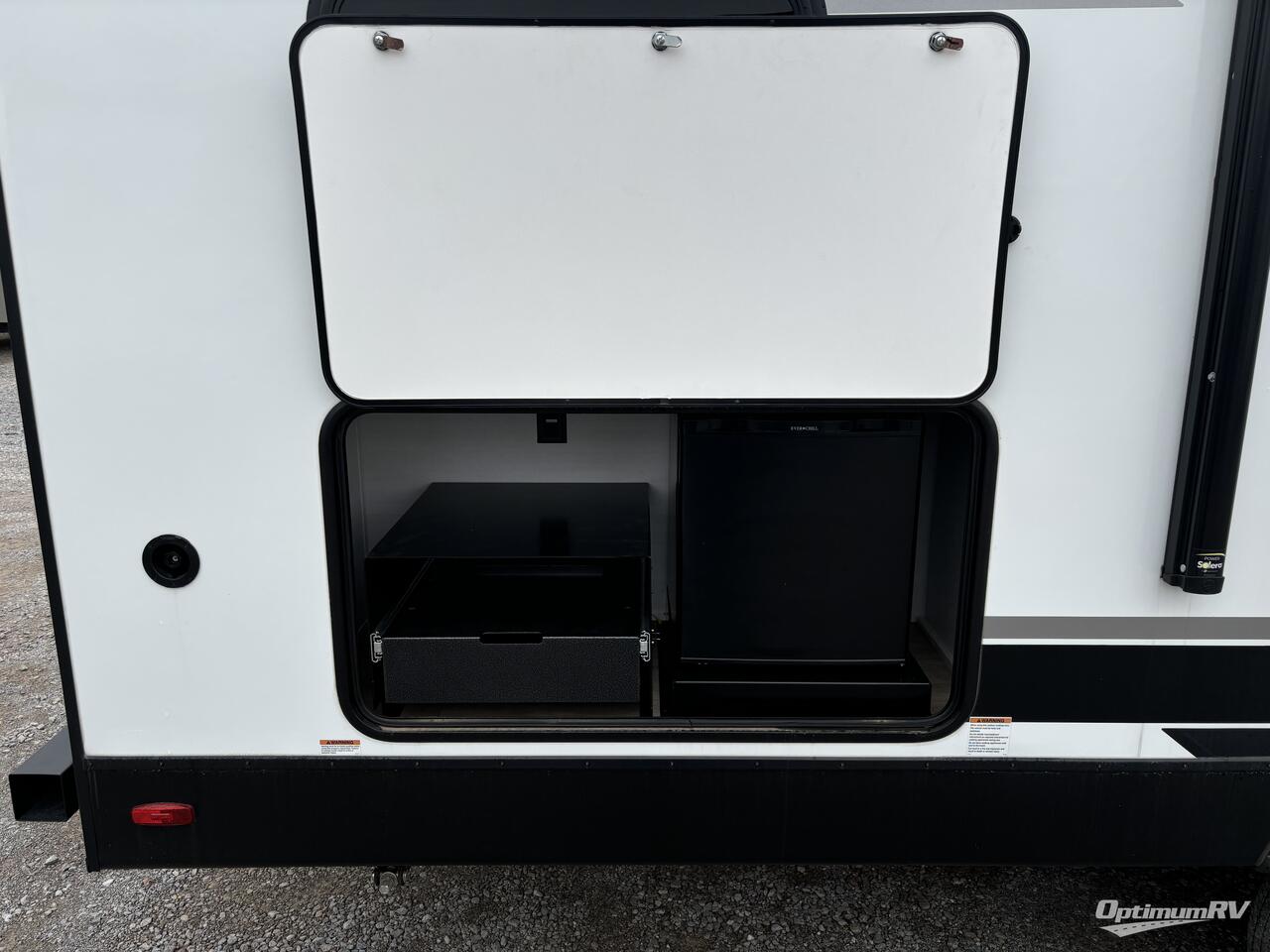 Every trip to the campground will be spent in comfort with this single slide out travel trailer. Once you arrive at the site, remove the kayaks or bikes from the rear storage door, start lunch on the outside kitchen, and put out the 15' power awning with LED lights. The interior includes a booth dinette slide with storage, a bar top with stools, plus an HD TV for movie nights. After a day of fun, head to the front private bedroom for a great night's rest on the queen bed, and you can store your belongings in the dual bedroom wardrobes!
