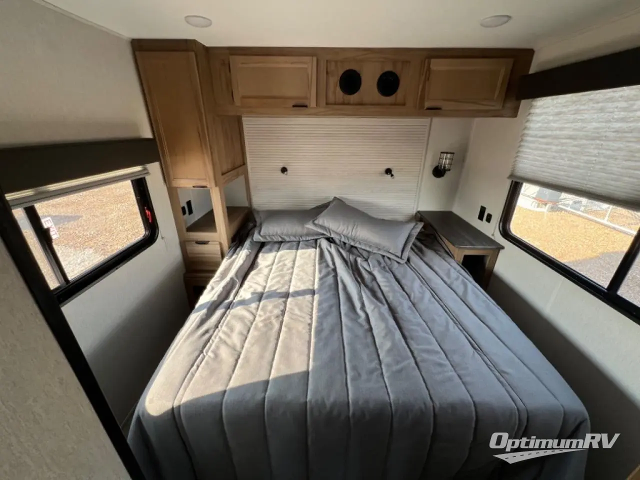 Enjoy comforts of home wherever you decide to roam in a Timberwolf destination trailer by Forest River. The seamless roofing membrane with heat reflectivity and power gear frame technology provide a durable foundation to your RV. You will also appreciate the exclusive solar thermo controlled reflective tinted safety glass windows, tire pressure monitors, and an on-demand tankless water heater to make extended stays easier than ever. Inside, the night shades will provide your crew with privacy, while the LED lights illuminate your space. There are also light filtering sheer shading premium zebra blinds, along with a premium bedding ensemble and comforter, USB charging stations, a supersized central A/C unit, and many more comforts!