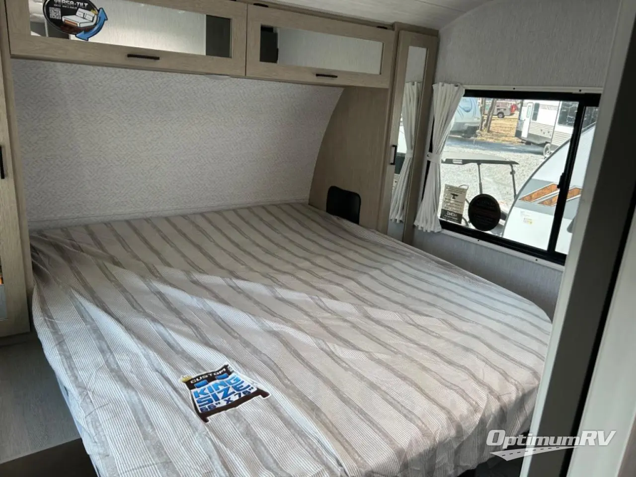 Sleeping for up to six with a custom king bed with Versa-Tilt in the private front bedroom, and a versa-lounge and u-shaped dinette which can both be transformed into added sleeping when needed. You will love the added space thanks to the large slide and the view through the large panoramic windows will bring the outdoors inside! Cooking will be easy either indoors our out with an exterior camp kitchen situated under the 20' awning. Inside, two pantries and an oversized fridge will hold all of your food, both dry and canned goods plus perishables will be kept fresh. There is also a walk-in closet as well as two nightstands and two upper shirt closets for your clothing and other personal belongings. A nice sized walk-in shower in the back of this unit, plus linen cabinet and extra wardrobe will keep everyone feeling clean and refreshed. On the outside of this unit, you will find more storage in the front pass-through compartment which is great for outdoor games and gear.