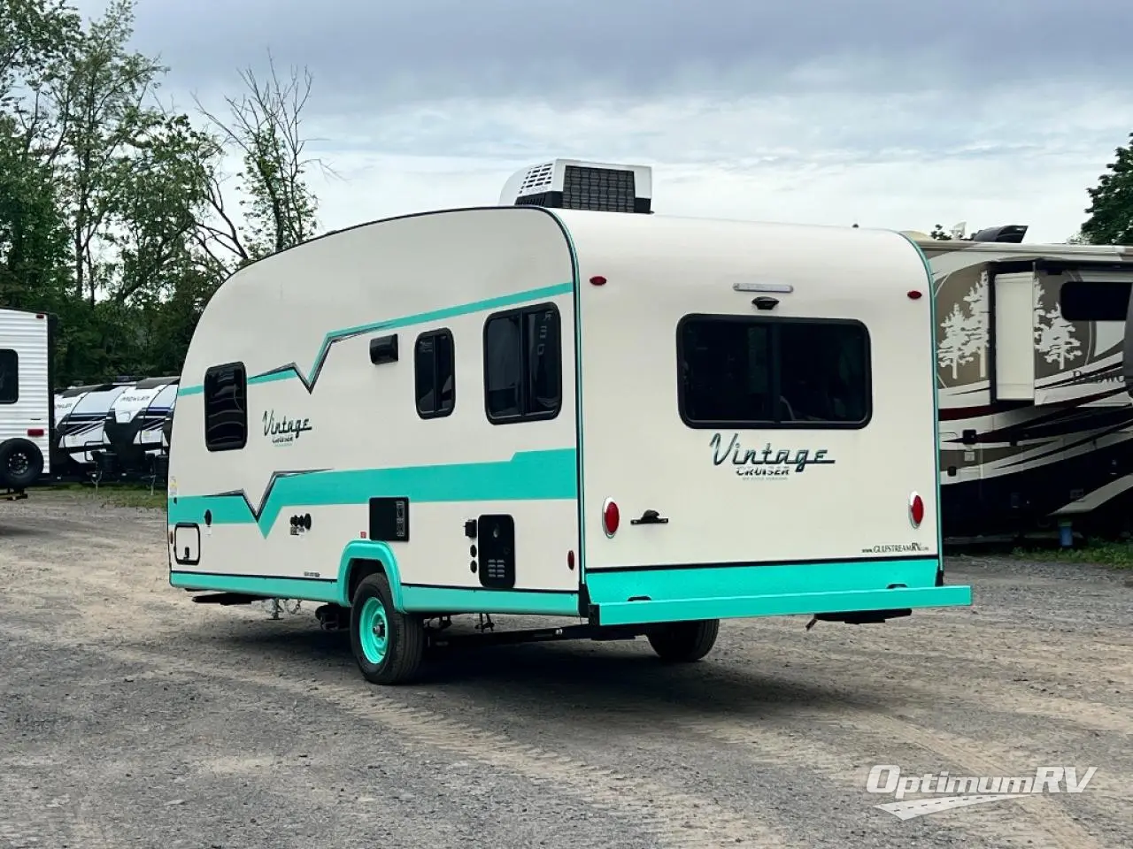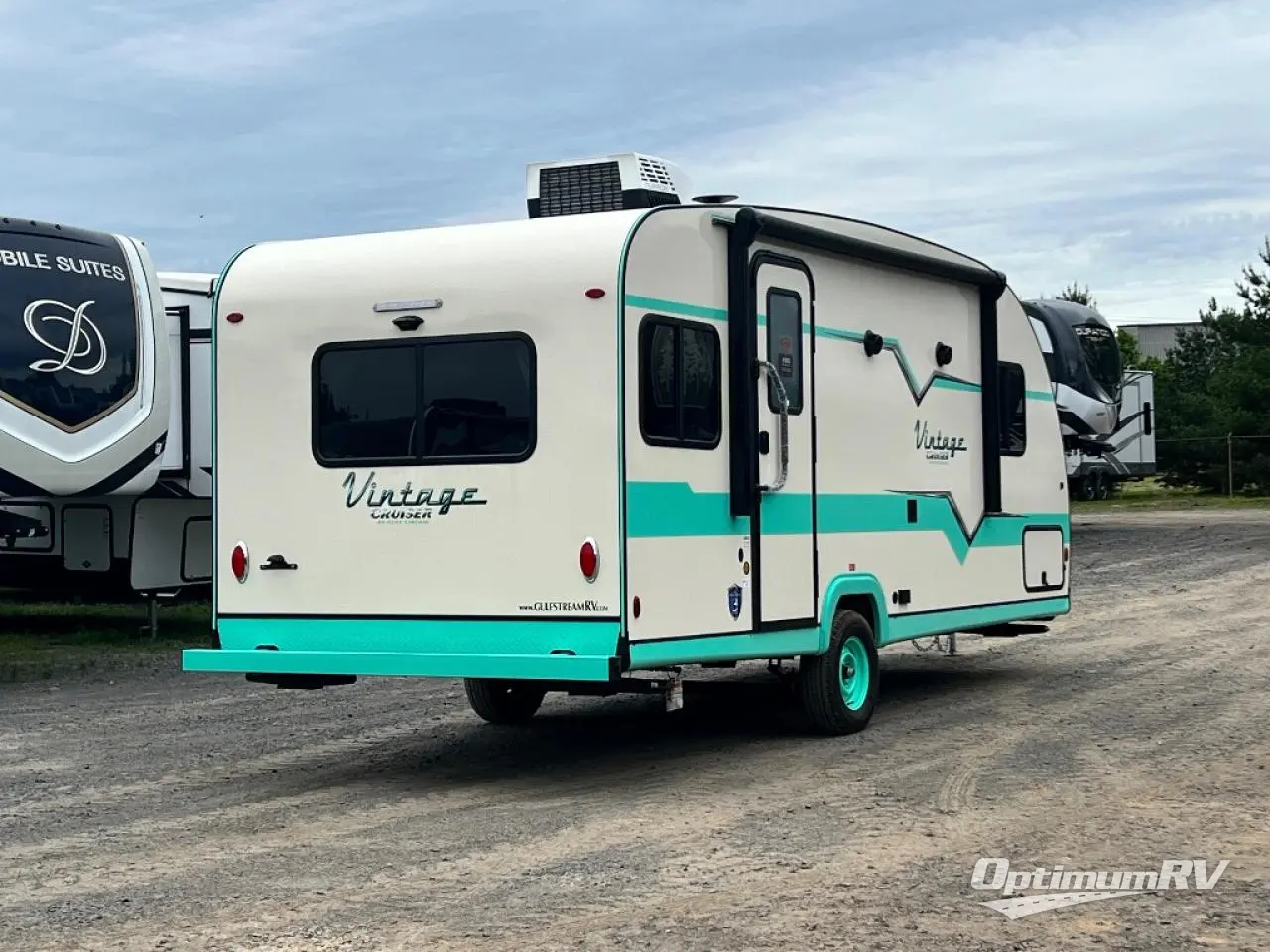 With any Vintage Cruiser by Gulf Stream you will be taken back to the fun of the 50's with vintage exterior graphics and classic interiors. Each model is constructed with a six-sided welded aluminum frame, vacuum bonded sidewalls with Azdel, and a vintage painted bumper you are sure to love. You may like to choose the optional "Woody" Package that includes an Oyster painted A-frame, Hickory Saddle floor vinyl, Southern Pine Sidewalls, and more rustic cabin features. The Vintage Cruiser travel trailers include high-performance vinyl flooring, LED interior ceiling lights, a seamless tub/shower surround, and vintage flat cabinet doors to name a few comforts you'll find throughout. These models are also prewired for roof A/C and come with a standard 20,000 BTU furnace or a 16,000 BTU furnace, depending on the model you choose. Nostalgia is waiting for you with a Vintage Cruiser!