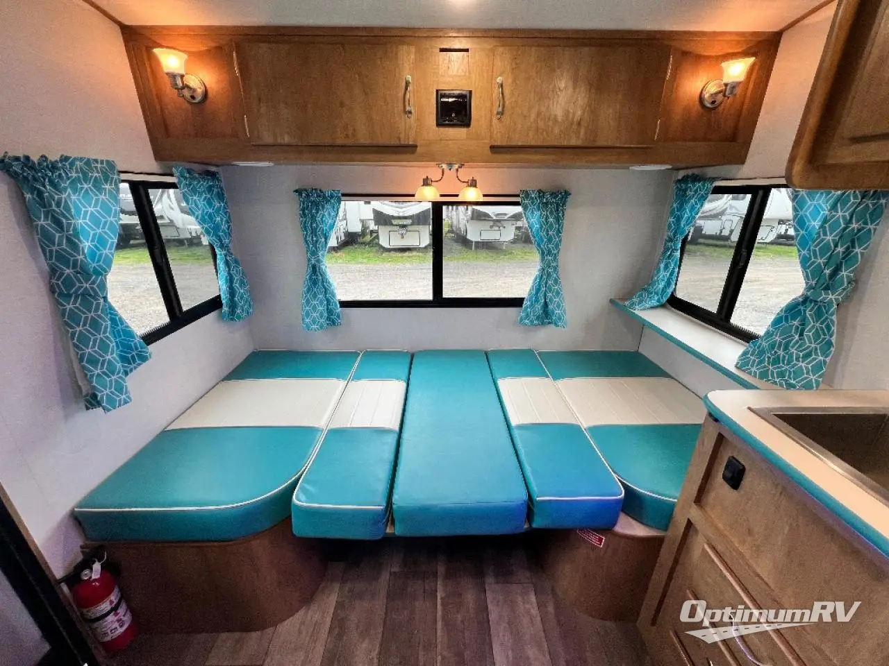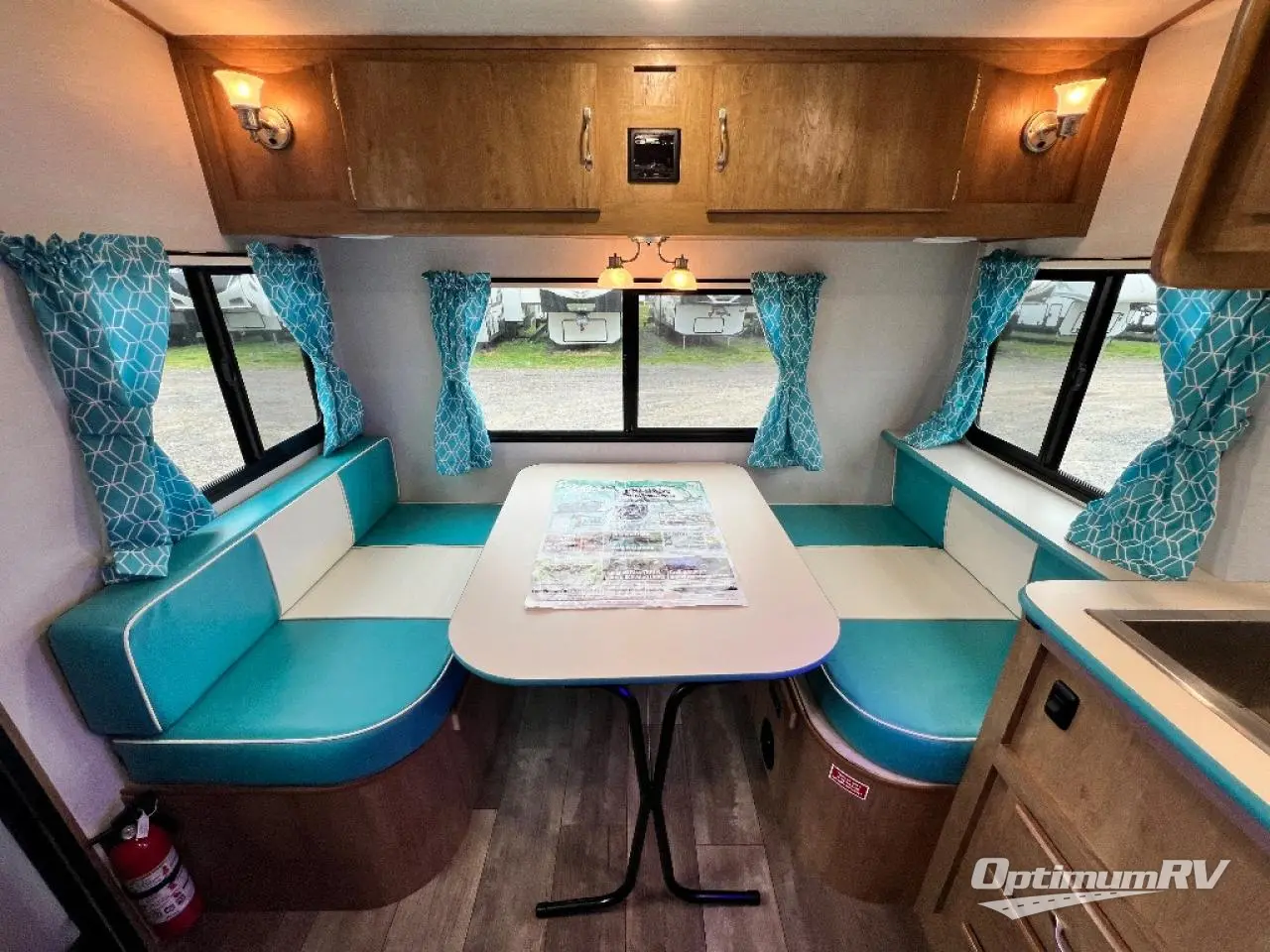 If you enjoy a more classic look for an RV, you'll love this Vintage Cruiser 19ERD. The rear booth dinette is surrounded by windows for bright, open views, and you'll find overhead storage here for dry goods or snacks. The chef of your group will have a two burner cooktop and a microwave oven to prepare meals, and you may want to add an optional 19" LED HDTV to keep your guests busy at the dinette while dinner is being made. The private toilet and sink is right across the hall from the 24" x 36" shower so two people can freshen up at once. How convenient! This model also features a semi-private front bedroom with a privacy curtain for your own space, plus an RV queen bed and dual shirt closets to keep your clothes tidy!