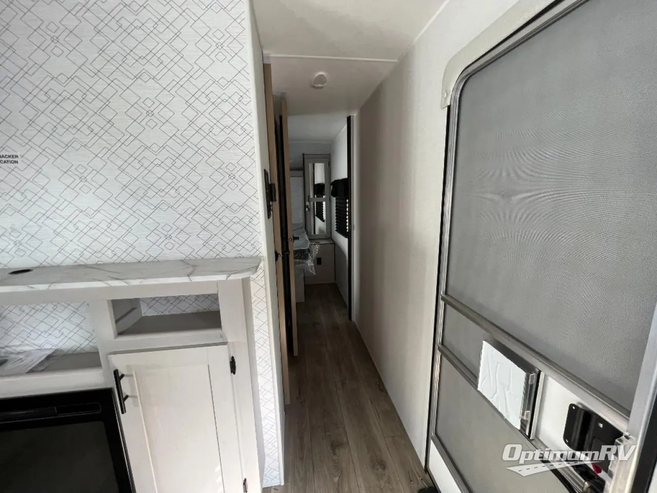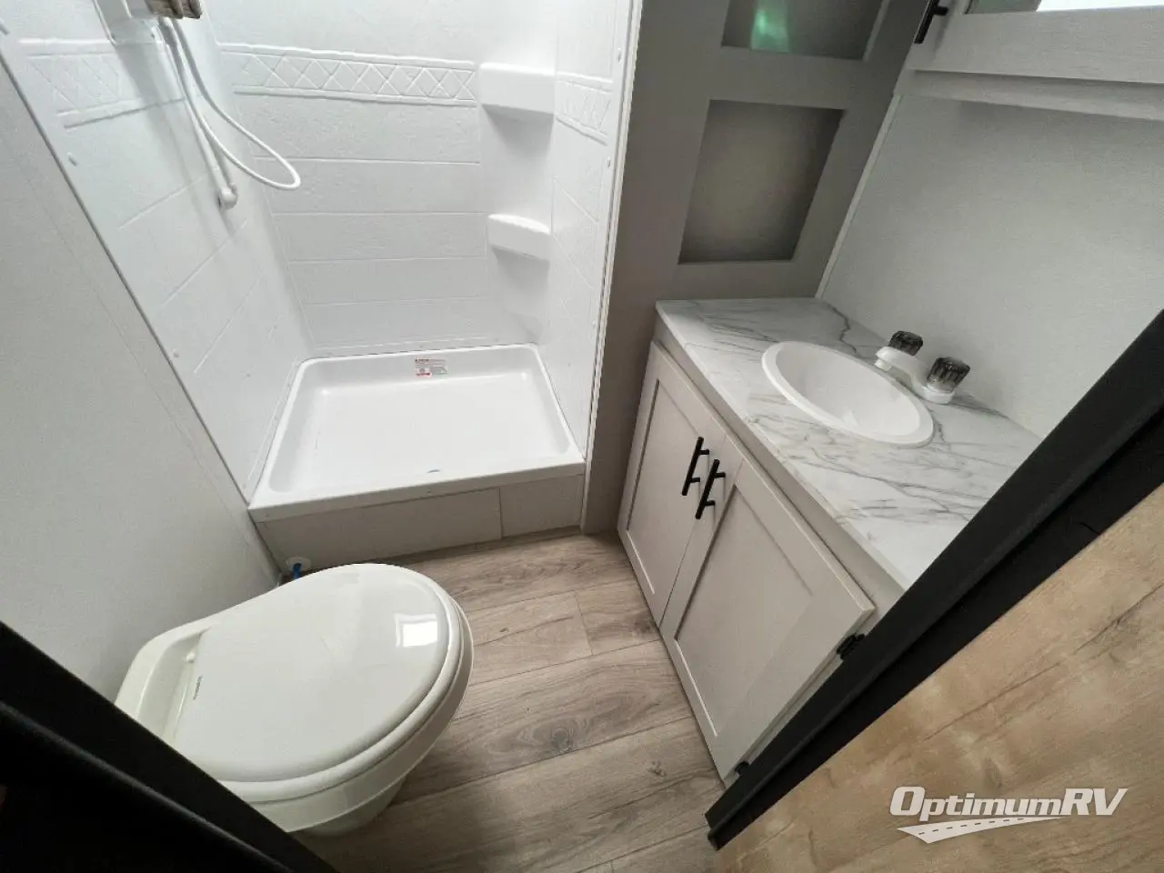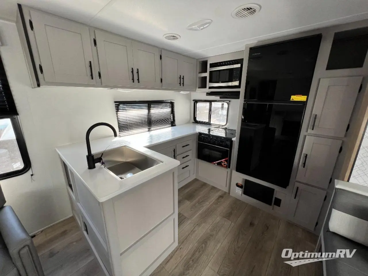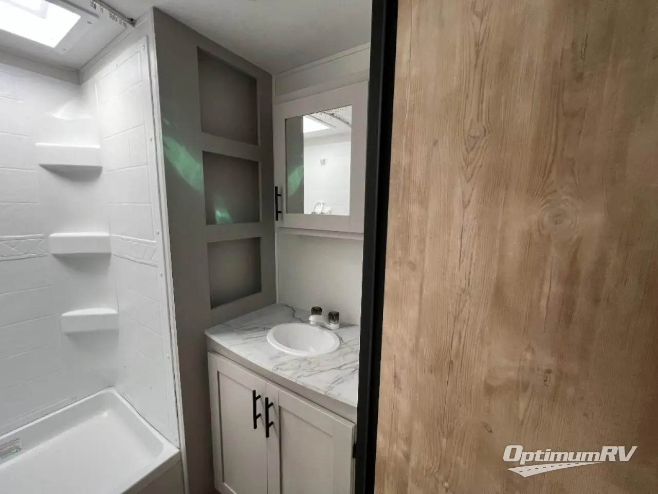 You will feel right at home with this travel trailer! The rear kitchen has plenty of countertop space to prepare your best home cooked meals. The U-shaped dinette is not only great for enjoying meals and playing games, but also for transforming into an extra sleeping space. Relax in true comfort each night on one of the two recliners or sofa by the TV prepped area. Freshen up after a fun filled day with the shower, and then head to the front private bedroom and get a good night's rest on the queen bed. You can even cook in the great outdoors with the outside kitchen that comes with a griddle and refrigerator to enjoy a cold beverage while you flip burgers!