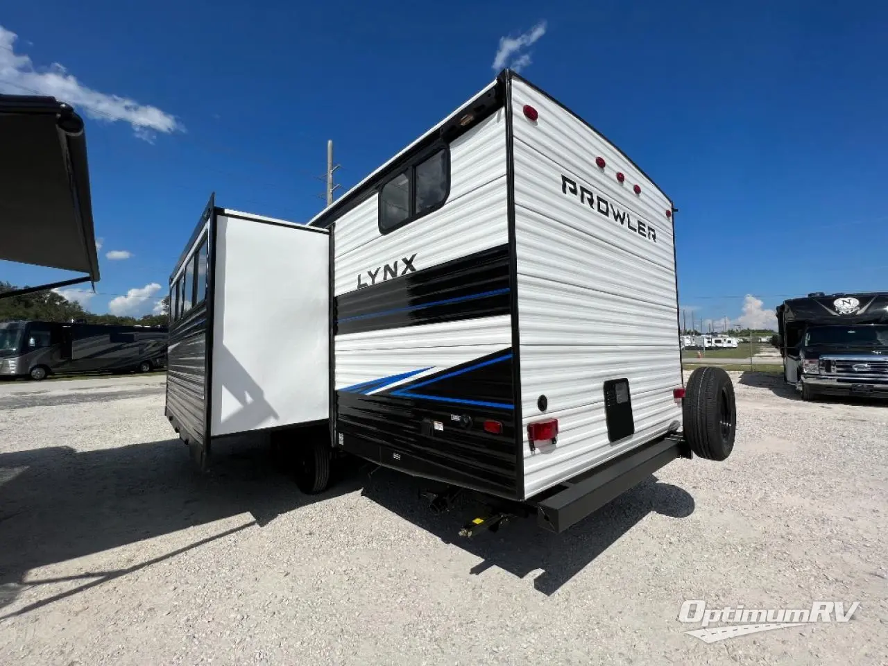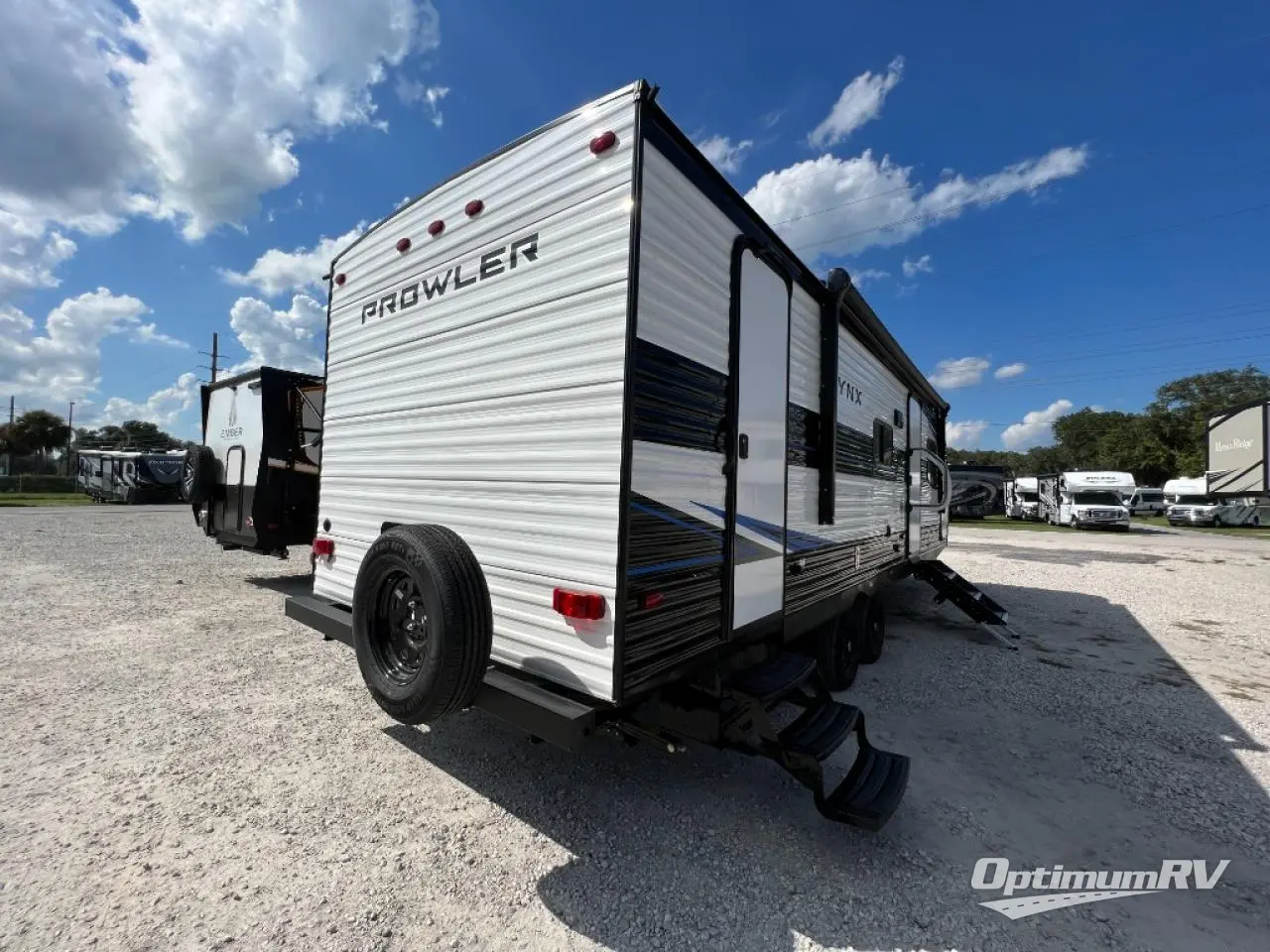 Get ready for comfortable and easy camping with the Prowler Lynx travel trailers by Heartland. These models feature durable construction with a performastructure aluminum front wall, cambered structural steel I-beam frame, and a fully walkable roof. The MEGA bright pass-through storage features 52 cu. ft. of exterior storage with mega sized access doors, LED lights, and a finished interior to keep your gear secure. You'll fall in love with the at-home kitchen that includes Duralast countertops, a residential refrigerator, plus a stainless steel double bowl undermount sink for easy clean-up. These travel trailers also feature panoramic windows, an EZ clean interior, USB charging ports throughout, and many more comforts! Don't let the Prowler Lynx travel trailers slip away. Choose your favorite floorplan today!