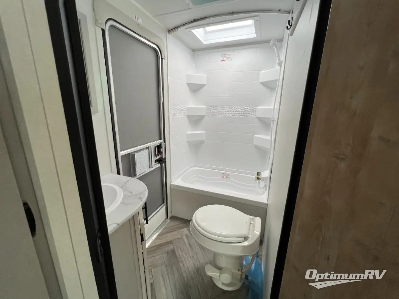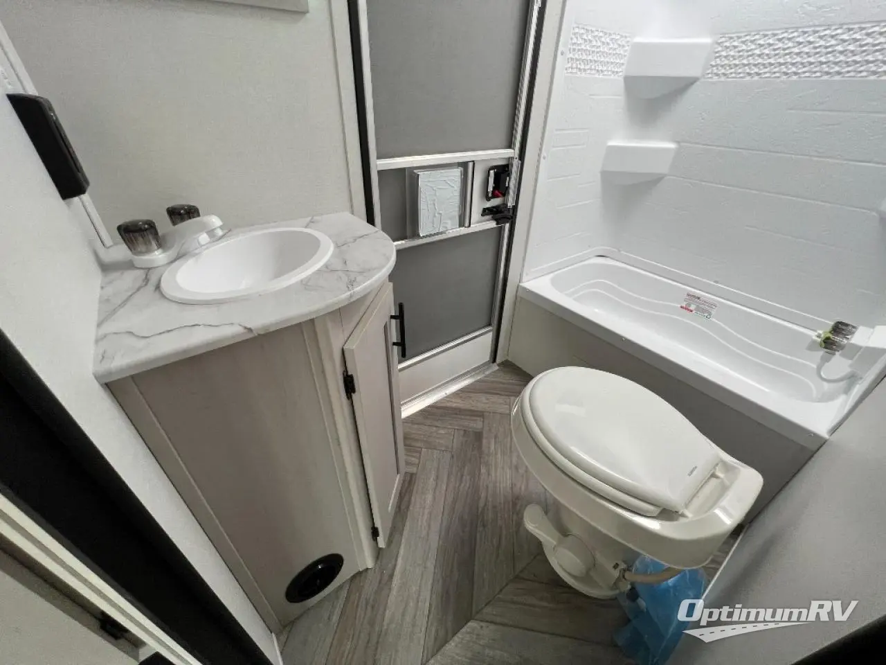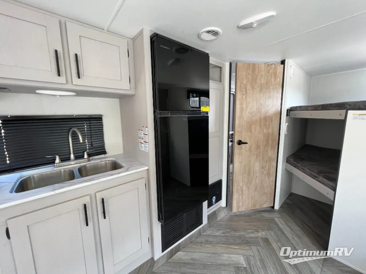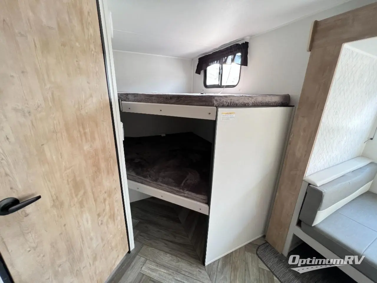 This Prowler Lynx is perfect for any larger family or one that likes to travel with friends! This bunk model features double bed sized bunks to sleep four, plus a private bedroom in front for two with dual wardrobes for your things. A dinette and sofa slide creates more interior space inside, plus provides ample seating for everyone. Both can also be transformed into added sleeping when needed. The kitchen is fully equipped to create meals and snacks inside while you camp if you do not enjoy cooking over an open fire, and the dual entry doors will make it easy and convenient to load and unload, with one door leading directly into the full bath which features a shower, toilet, and vanity with sink.