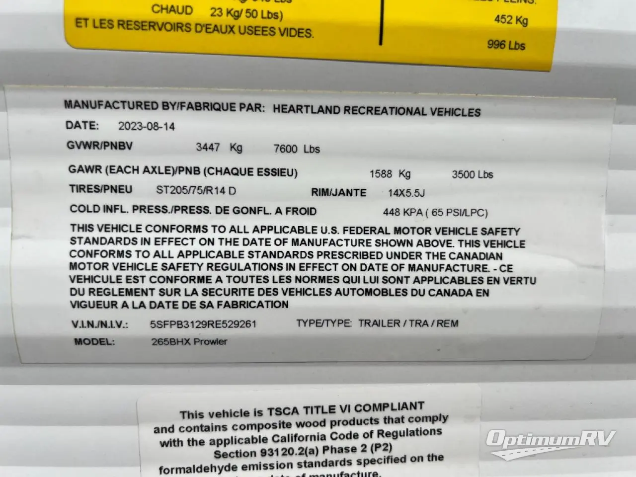 Heartland Prowler Lynx travel trailer 265BHX highlights: