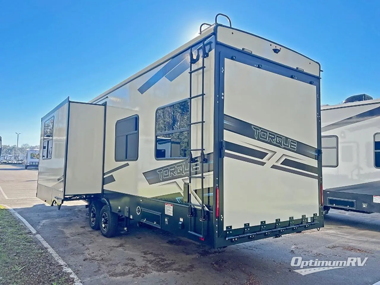 With any Torque toy hauler travel trailer or fifth wheel by Heartland you will find Azdel laminated sidewalls, a wide-body design, and rack and pinion slide outs that fully support the slide out floors. Each drive to the lake will be smooth thanks E-rated tires and E-Z flex suspension with shock absorbers, and there are professional installed tie-downs to keep your toys secure. Head inside to find a culinary kitchen workspace with full-height shaker cabinetry, the largest kitchen countertops in the industry, fuel and oil resistant diamond plate TPO rubberized flooring in the garage, and many more comforts. There are also available options that can be added to further customize your Torque toy hauler, such as an LCD TV, a generator, a ramp door patio, and more!