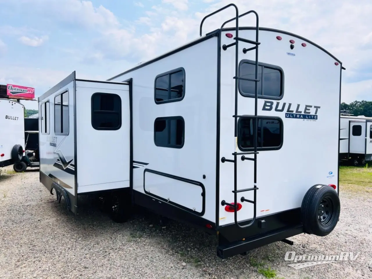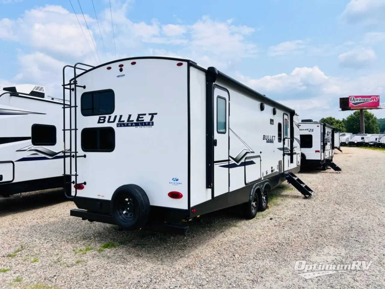 With any Keystone Bullet travel trailer you can experience ultra-lightweight camping with style! The interior design and functionality will impress you, and the stunning cabinetry, the vaulted ceilings, and the built-in laundry chute are just a few of the highlights. Each is built with Hyper Deck RV flooring that is stronger, lighter and more resilient than traditional wood laminated flooring, a pass-through storage compartment with a peg board and baggage doors with magnetic catches, and a docking station, an easily accessible convenience center with water connections, water heater bypass, KeyTV hookups, stabilizer jack switches and winterization access. You will also find a Giggy box, a weather protected, labeled, and fused electric box, plus more Keystone Exclusives. Start your glamorous and carefree trip today in a Bullet!