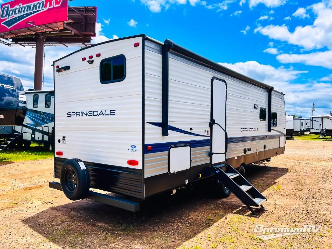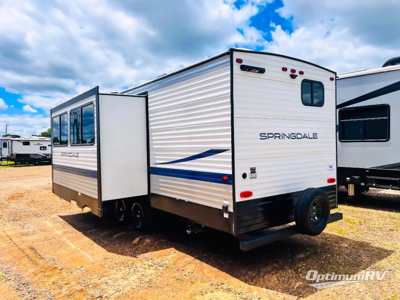 The Springdale Classic travel trailers by Keystone will provide you and your family many great outdoor experiences and it will also be kind to your pocketbook. Each one is constructed with an aluminum exterior, a walkable roof, and an I-beam frame with stamped steel cross-members and outriggers for added strength. There are also electric stabilizer jacks and power tongue jacks outside, along with a friction hinge entry door and an XL entry assist handle for added convenience. Each travel trailer includes a two burner flush mount gas range with a glass cover, LED lighting, bedside outlets, and blackout night shades inside that will provide you with more privacy at night. Some of the Keystone Exclusives you'll appreciate are the color-coded unified wiring and in-floor heating ducts, and the optional SolarFlex 200 will let you add off-grid capabilities if you choose!