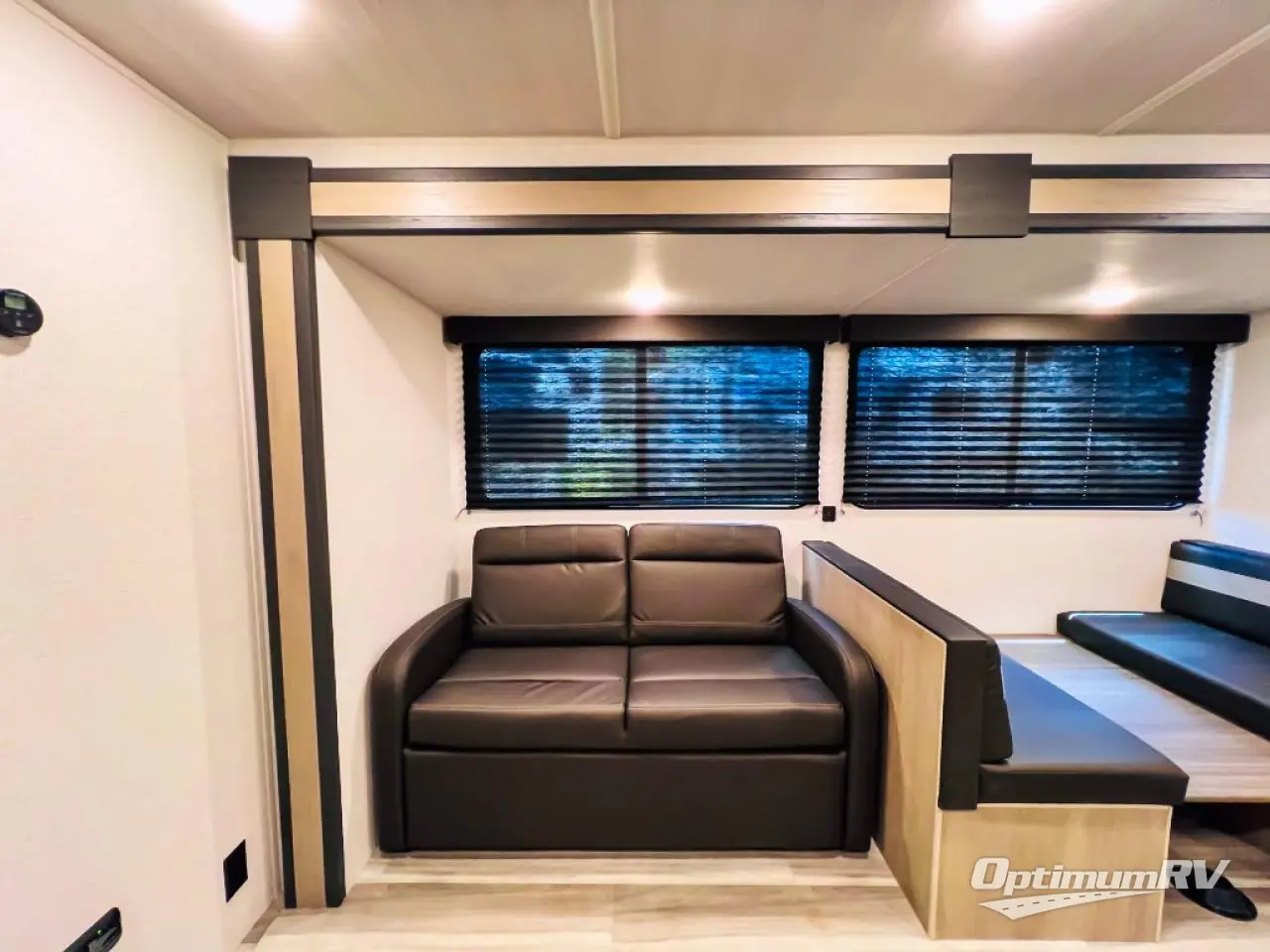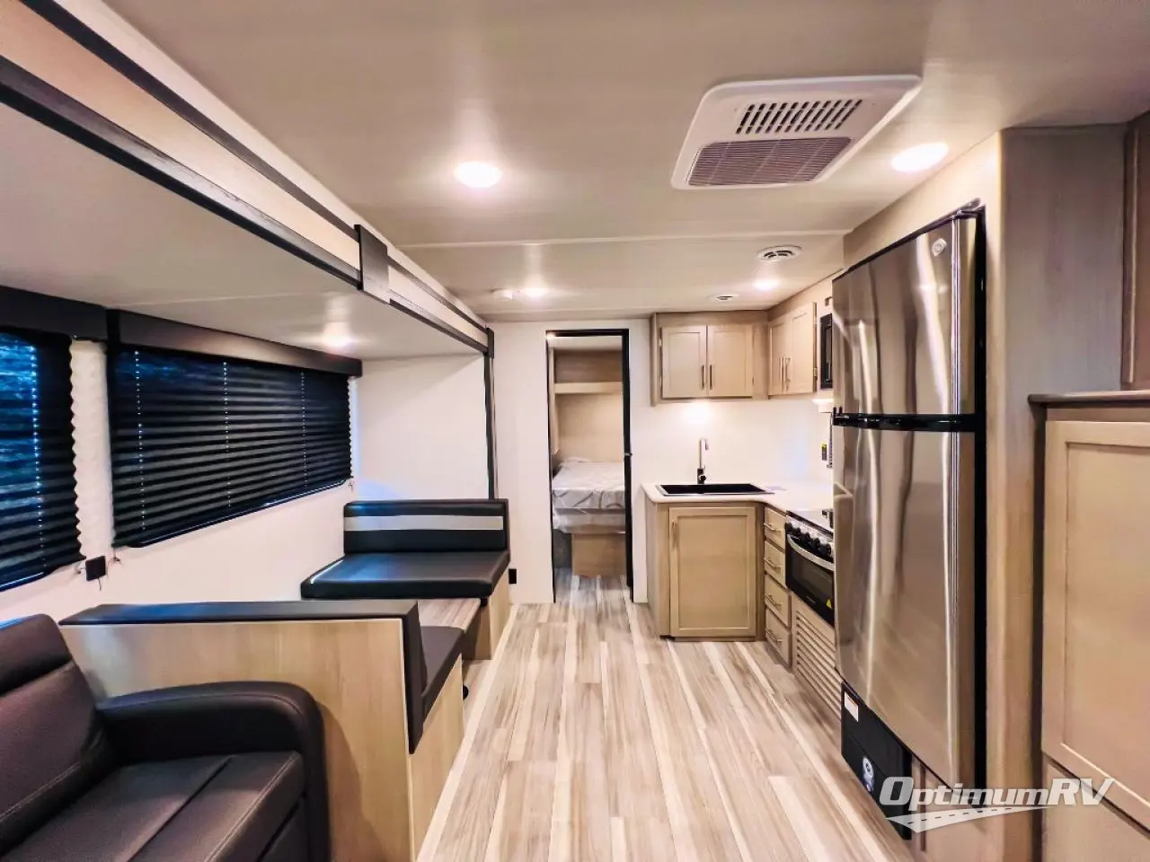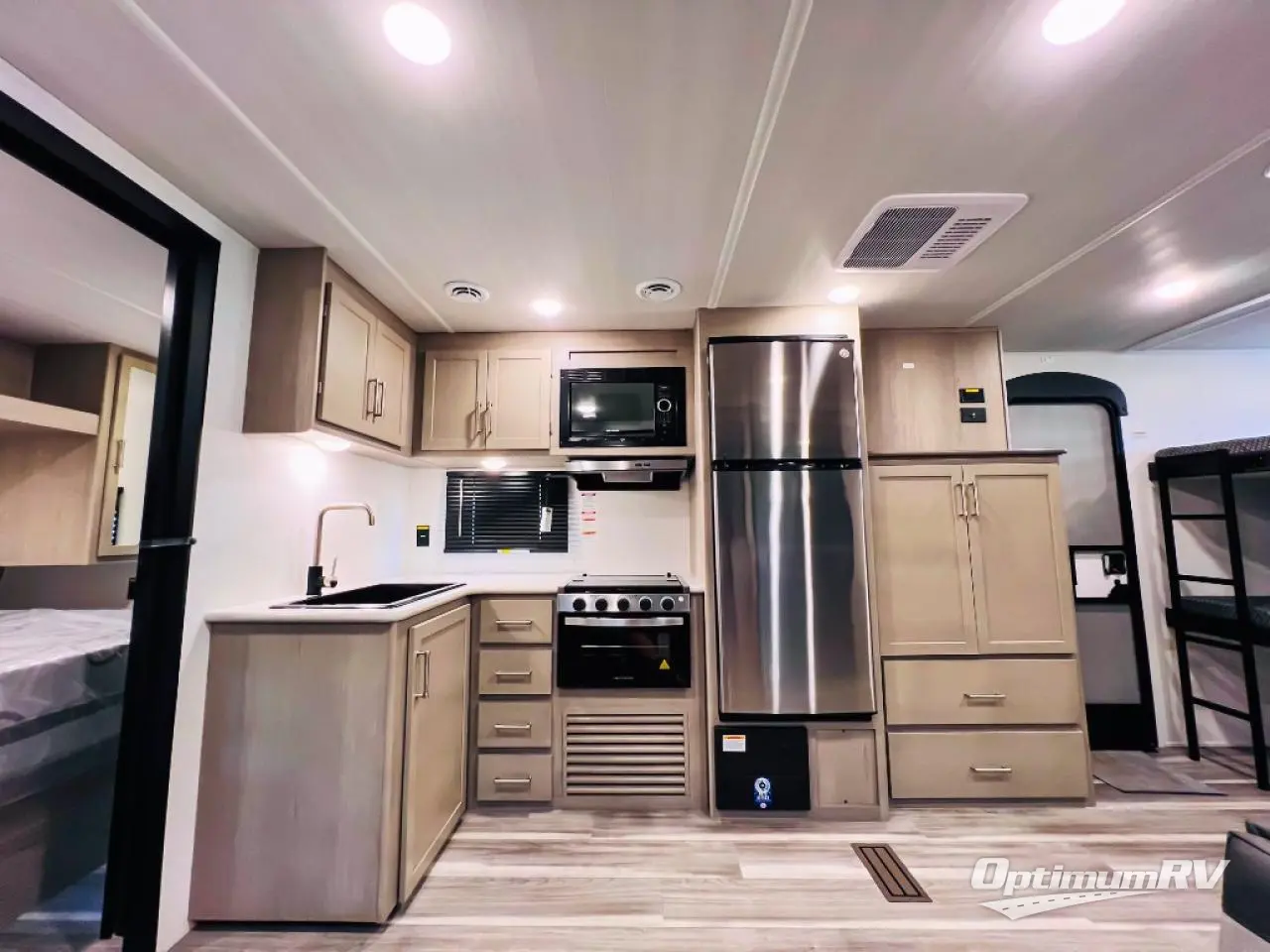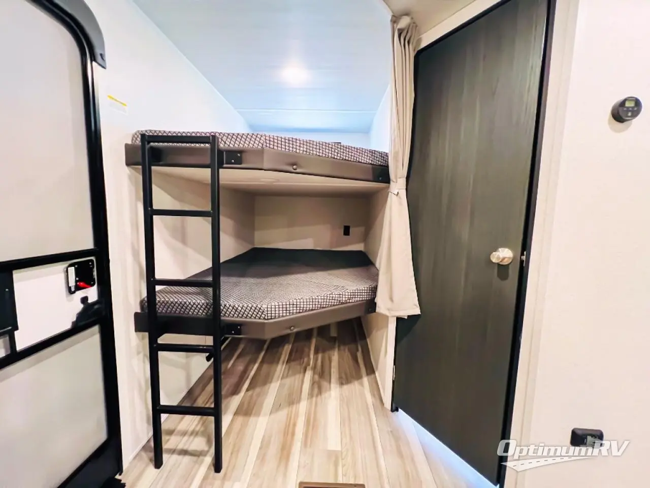 What could be better than camping with double-size bunks for guests? How about a front private bedroom for you, a full bath to clean up in, and a super slide out for maximum space! The chef of your group can prepare breakfast on the two burner gas range in the morning, or use the .9 cu. ft. microwave if you're on the go. There is a booth dinette to dine at, or you can take your plate outdoors to sit under the power awning.