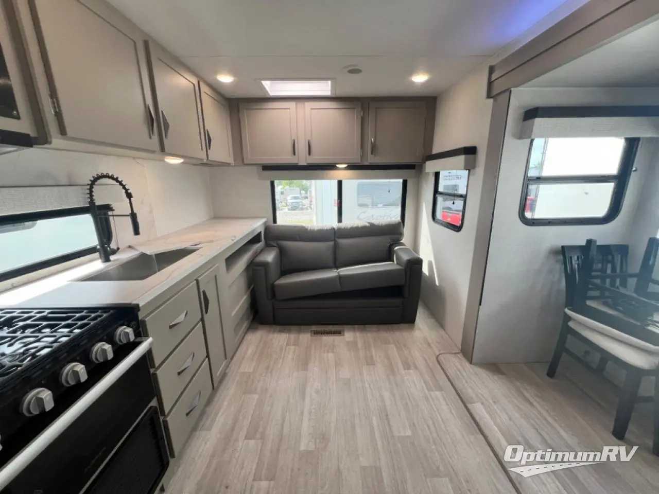 The KZ Connect travel trailer comes with an RV Airflow System which optimizes the airflow for your air conditioner by increasing the airflow by an average of 40%. This improves performance, speeds up cooling times, and reduces noise in your trailer. Some of the other helpful features found on the Connect are the heated, insulated, and enclosed underbelly, the exterior docking station, the fiberglass front cap with front windshield, the 82" interior ceiling height, and the protective front diamond plate. There are some useful technological features, like the two LED motion-sensor lights, the HDMI and USB charge, and the multi-media entertainment system with a DVD player. The KZ Engage is powered by OneControl, and it monitors battery levels and controls slide rooms, the leveling system, the awning, inside/outside lighting, and the TPMS prep.