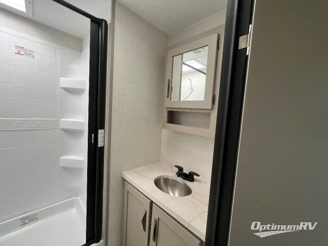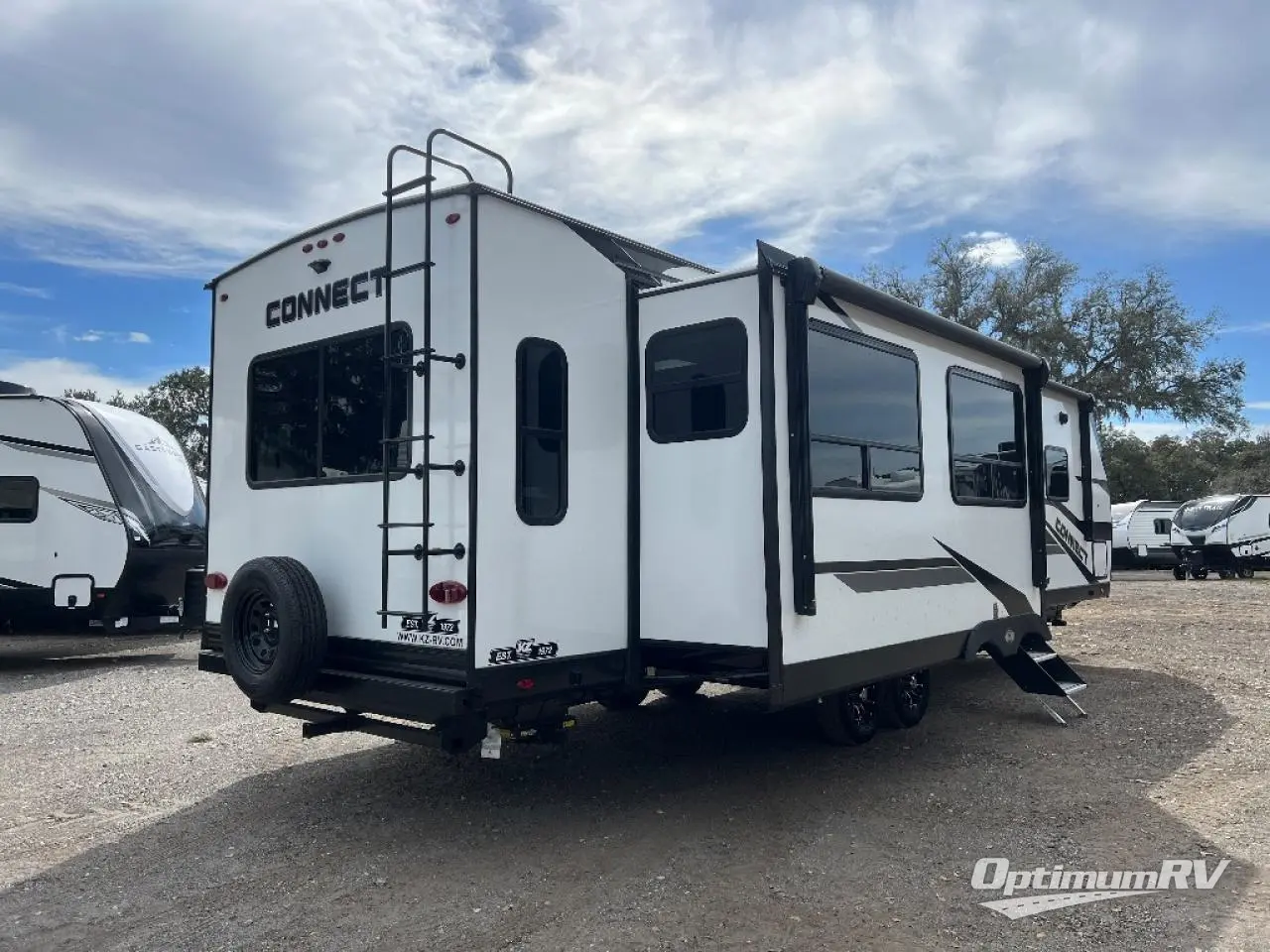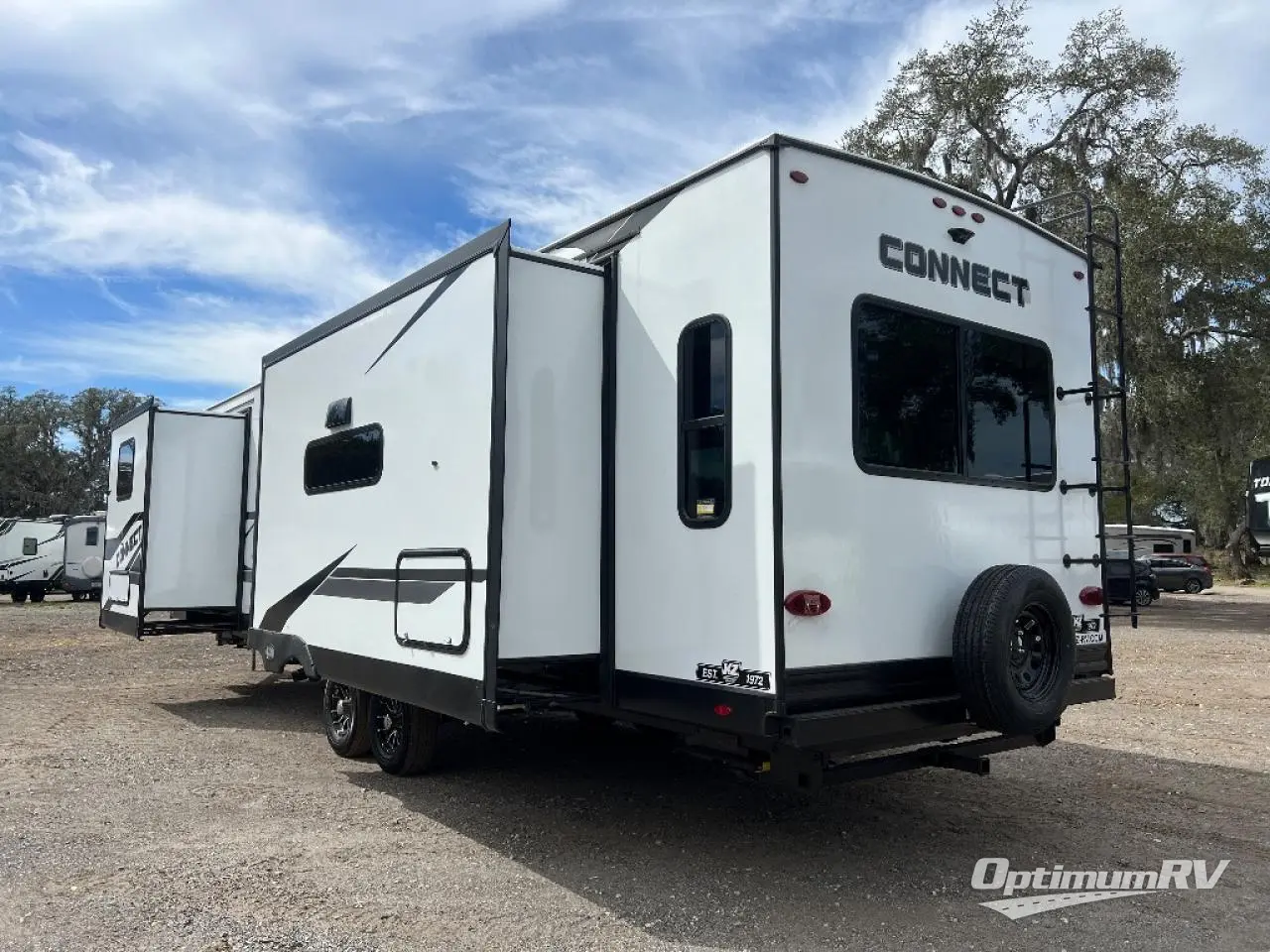 How about a nice afternoon of relaxing on the lake and then rinsing off in the 30" x 36" shower on this Connect travel trailer? After you get clean, you can grab a fresh change of clothes from the front walk-in closet and dresser in the private bedroom. The bedroom also has an area prepped for a washer and dryer and a king bed slide. Out in the main living area, you'll be able to prepare a meal without much effort at all since this trailer has a three-burner range, a microwave, a 10 cu. ft. 12V refrigerator, and a kitchen island for more prep space. You can even have your friends sit on the 70" sofa, theater seating, and booth dinette to chat with you while you finish the meal. You all will also benefit from the two electric awnings with LED lights on the exterior.