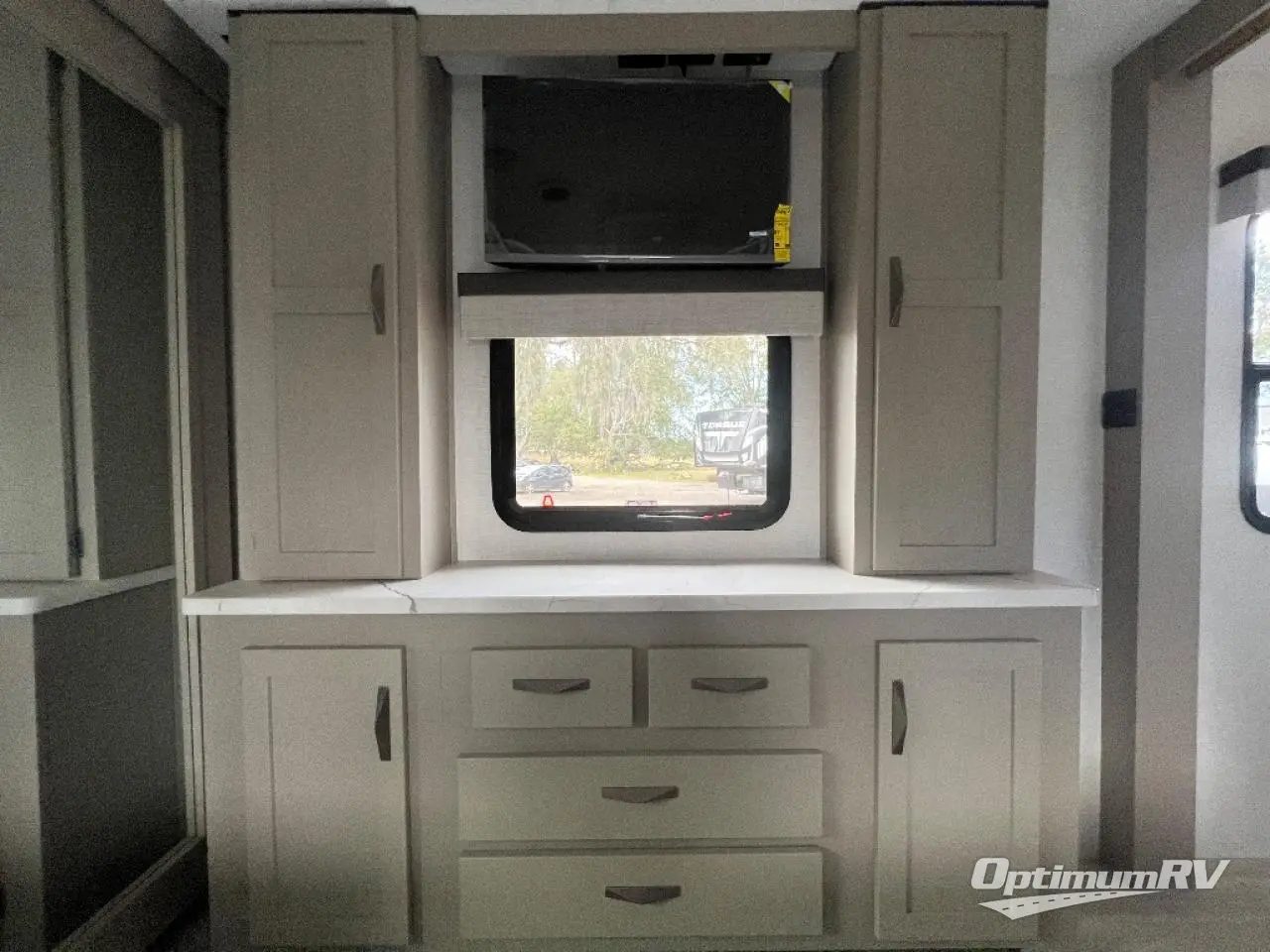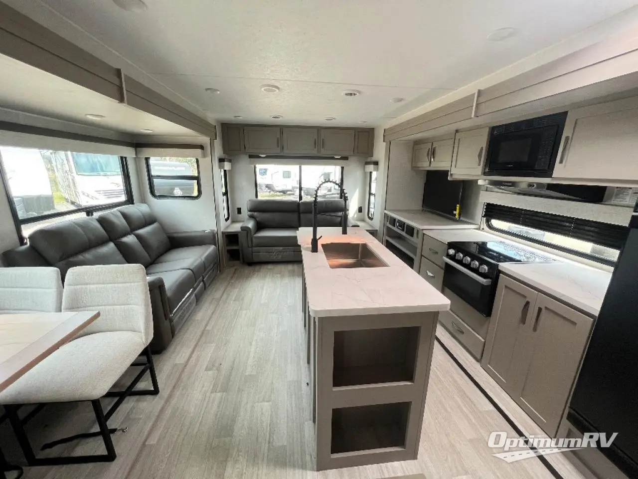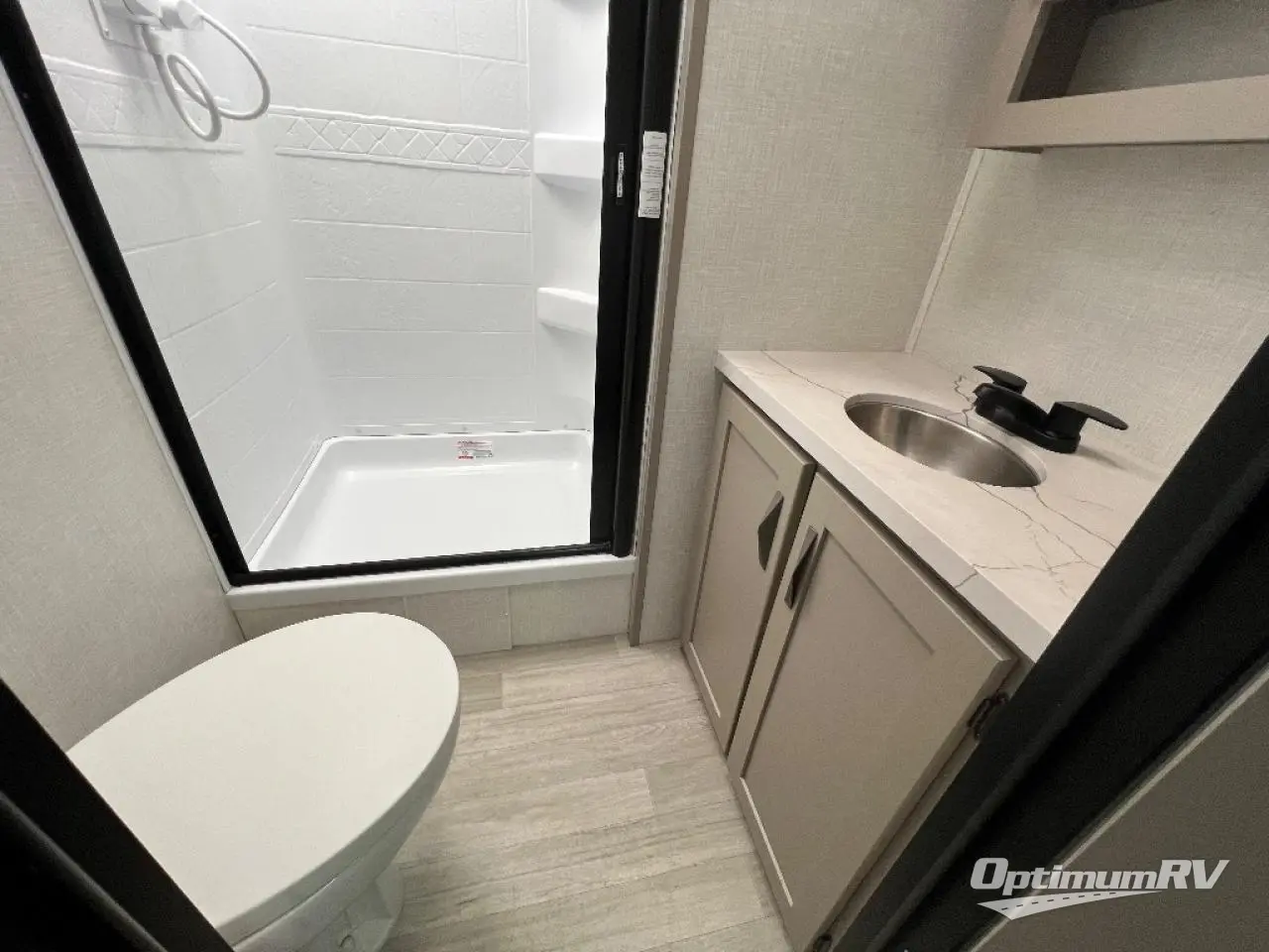 How about a nice afternoon of relaxing on the lake and then rinsing off in the 30" x 36" shower on this Connect travel trailer? After you get clean, you can grab a fresh change of clothes from the front walk-in closet and dresser in the private bedroom. The bedroom also has an area prepped for a washer and dryer and a king bed slide. Out in the main living area, you'll be able to prepare a meal without much effort at all since this trailer has a three-burner range, a microwave, a 10 cu. ft. 12V refrigerator, and a kitchen island for more prep space. You can even have your friends sit on the 70" sofa, theater seating, and booth dinette to chat with you while you finish the meal. You all will also benefit from the two electric awnings with LED lights on the exterior.