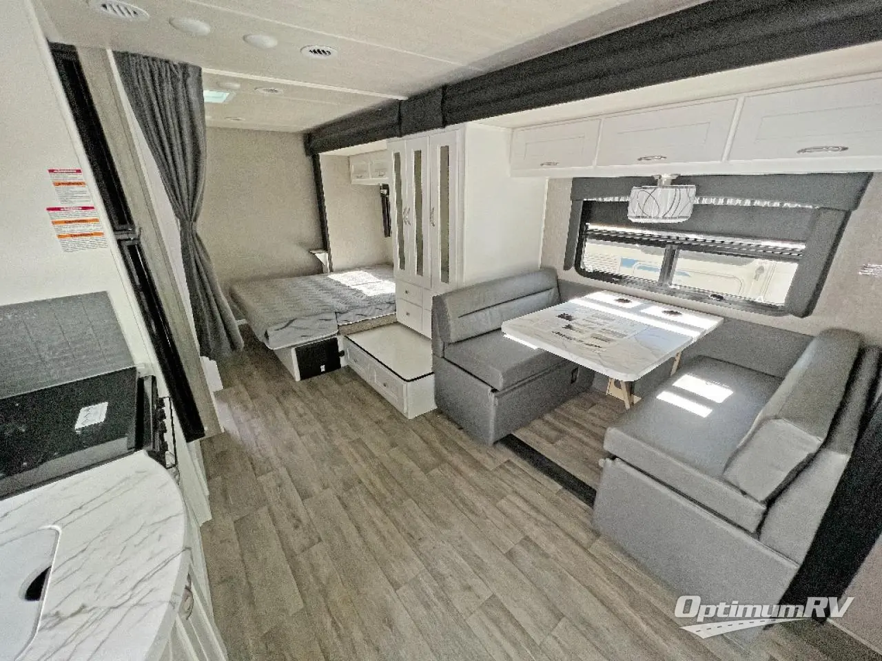 Experience reliability and comfort with this Phantom Class C gas motorhome! The full-wall slide makes it a joy to spend time indoors because it provides you with extra living space without adding to the overall width of the coach. You can use the booth dinette for gathering together at dinnertime, and after you transform it into a bed, you can also use the dinette for sleeping at night. A large wardrobe provides you with space to store your clothing, and the full bathroom with shower skylight is exceptional for keeping the entire group clean throughout each adventure.