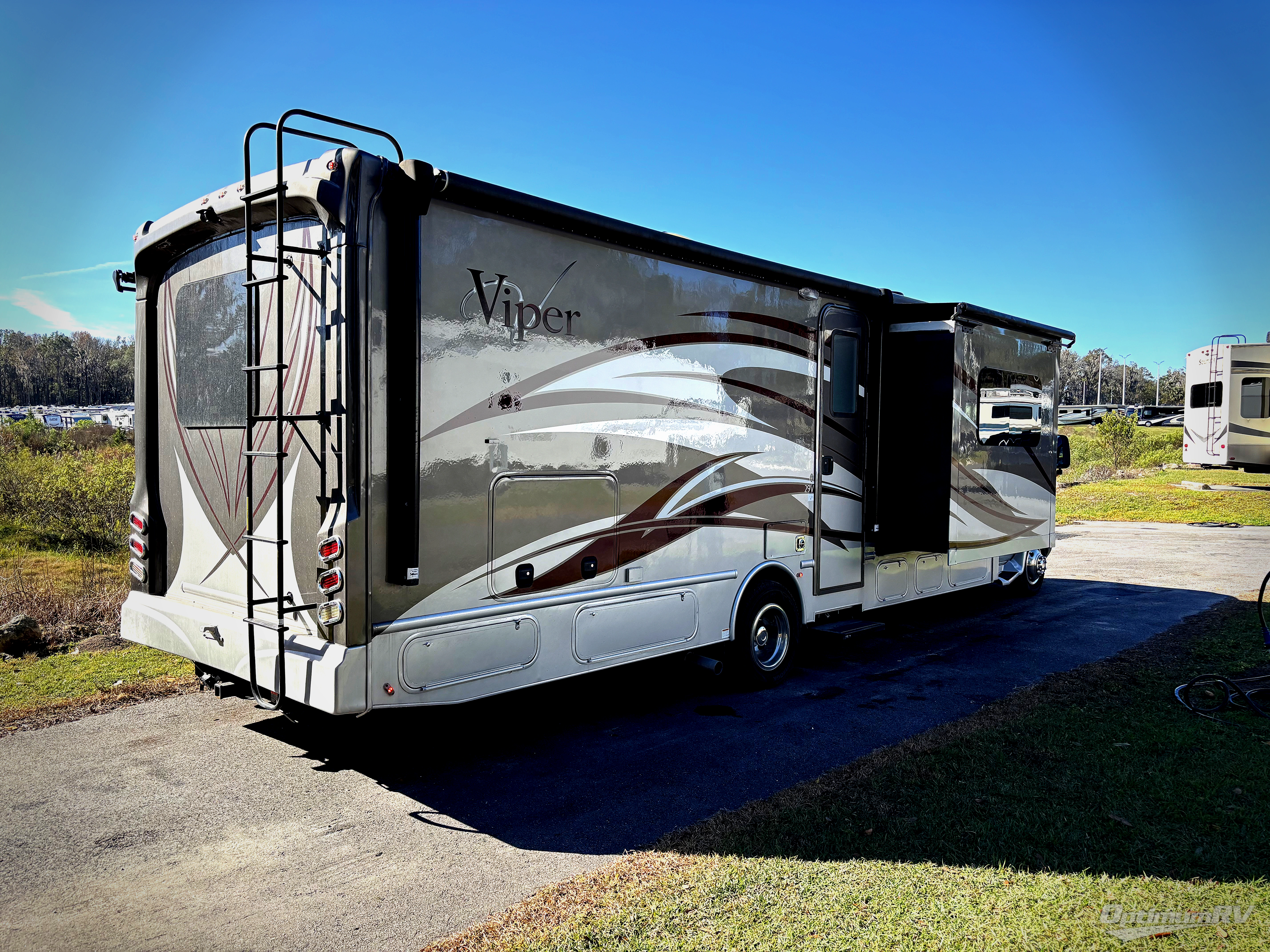 Looking for a family coach with interior space to move around without having to squeeze in? This Viper offers three slide outs, two are found in the main living and kitchen area and the other is in the rear bedroom. The tri-fold sofa and booth dinette offer seating while inside as well as sleeping space for your kids or overnight guests. You will have your own privacy in the rear bedroom with a RV queen bed, and there is a radius shower with a flexible hose shower head, shower skylight plus vinyl door. And the private toilet and sink room are just a few steps away. The cook will have full amenities to keep everyone fed including a residential refrigerator to store leftovers. You will also find a 4.0 KW generator for off-grid stops, an LP quick disconnect, and a 7,500 lb. hitch if you decide to tow your off-road toy or commuter car.