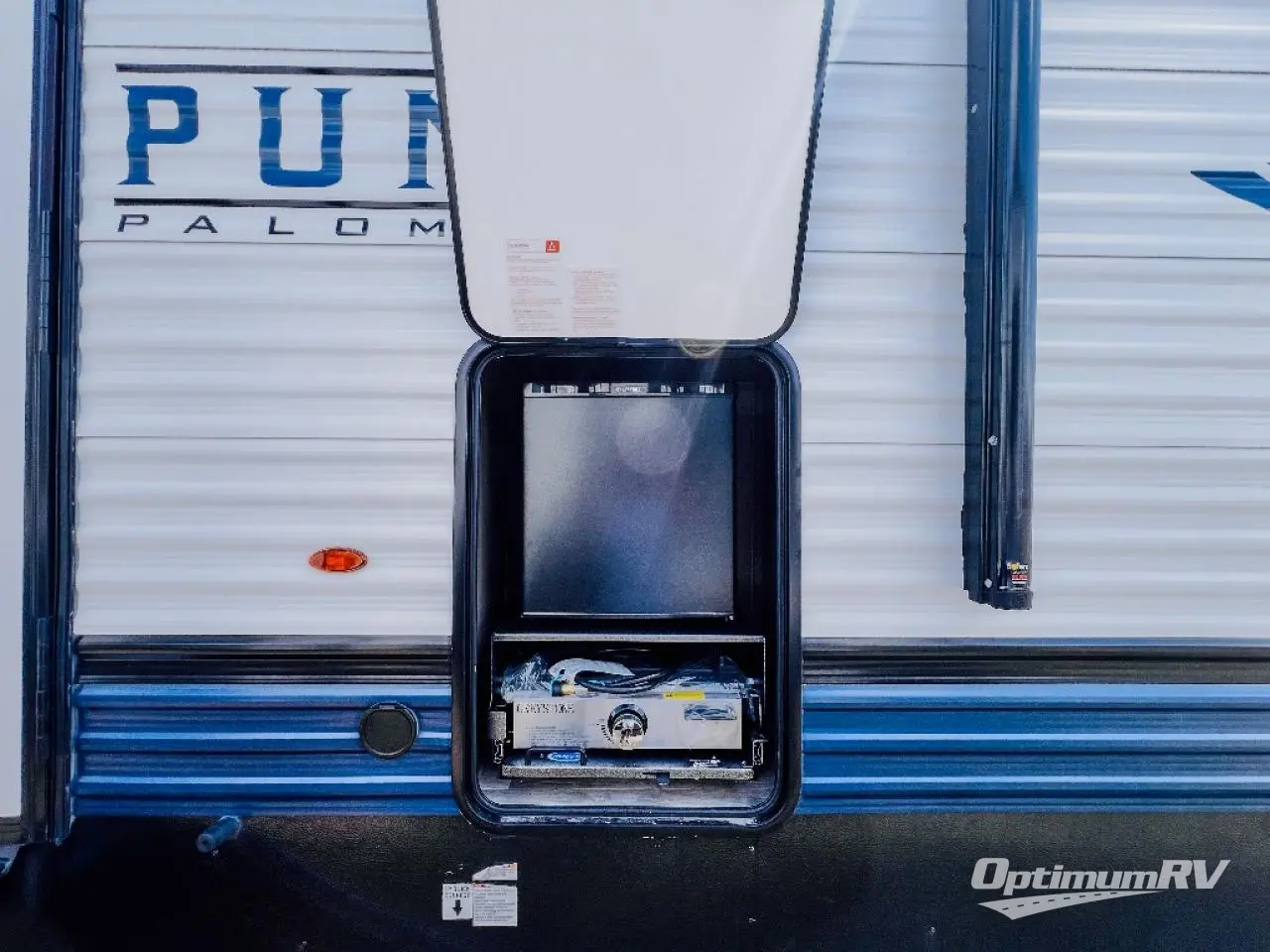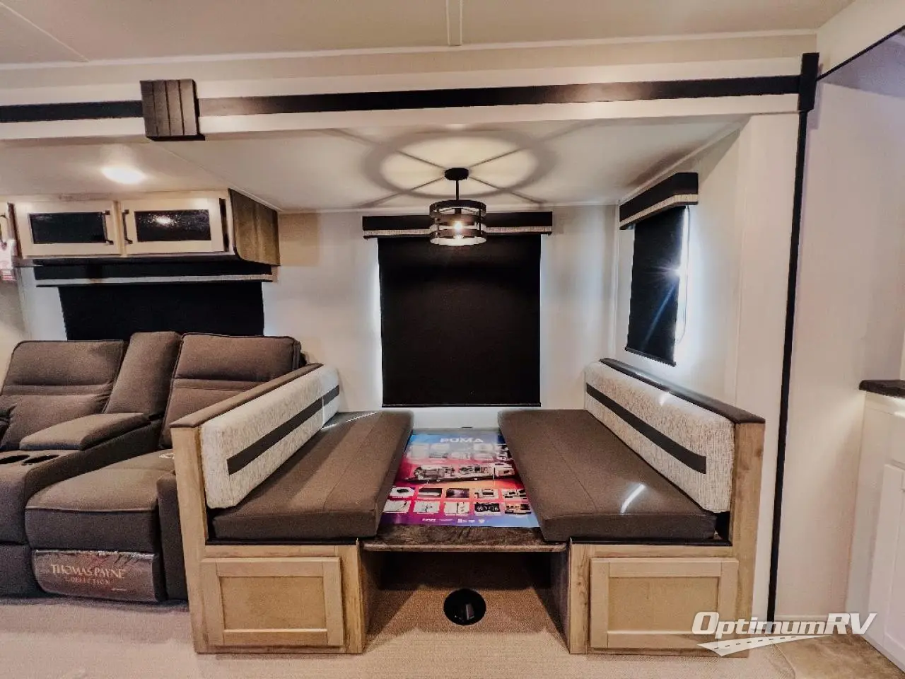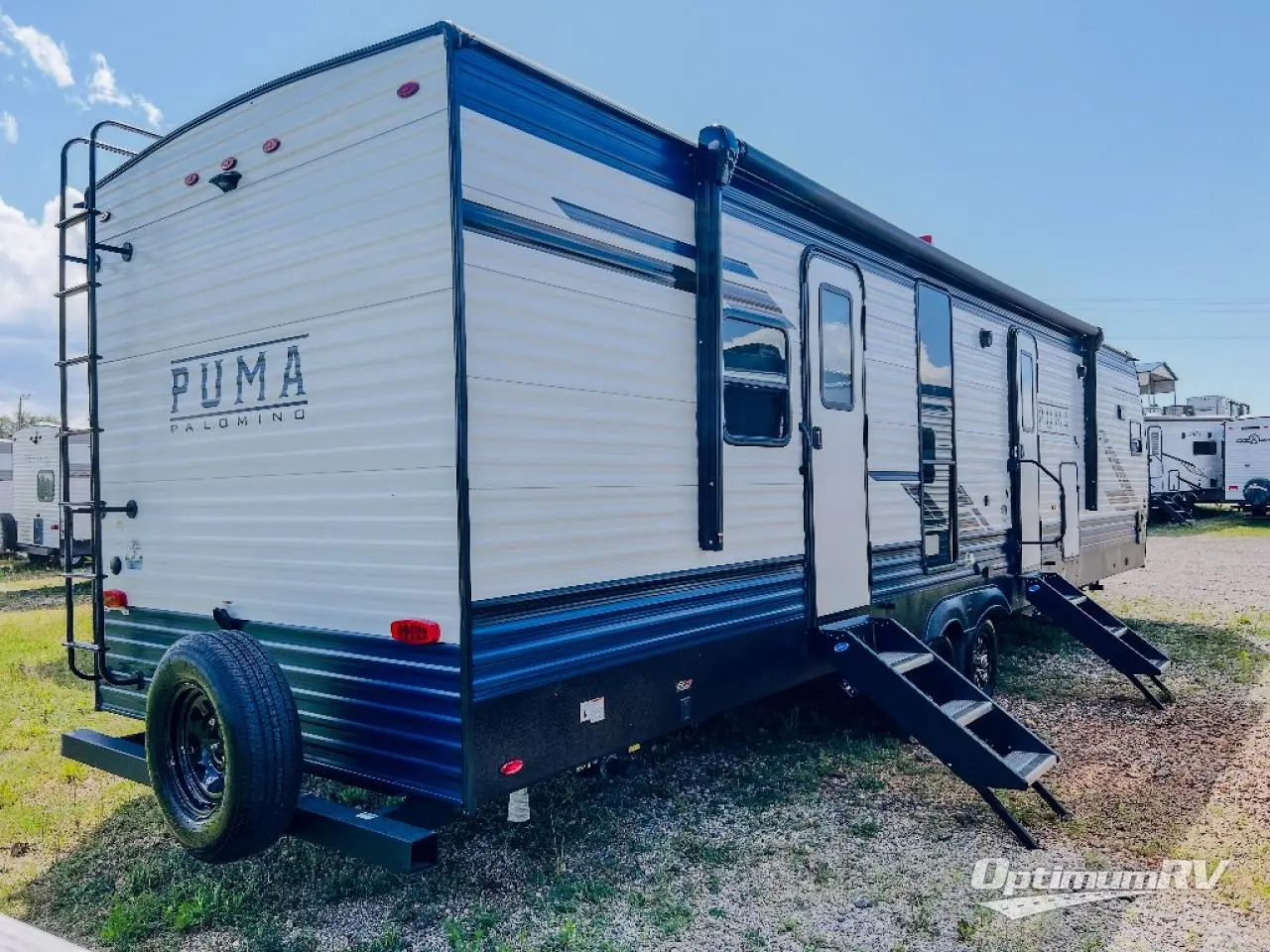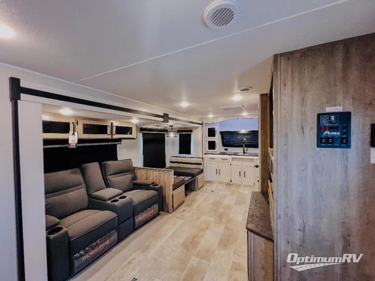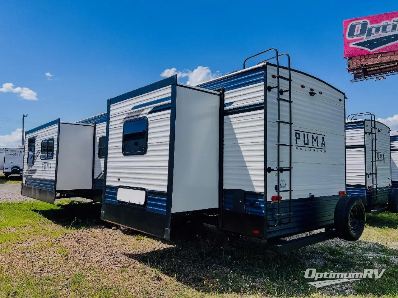 If you're looking for family-fun adventure then you need one of these Palomino Puma fifth wheels or travel trailers! They are built rugged, easy to tow, and jam packed with features. The Darco wrapped underbelly will protect your units vitals through every season and the AlphaPly roofing membrane covers it. They also have super lube axles and a powder coated frame. Their luxurious interiors feature a spice rack and built-in knife rack in the kitchen, USB charging ports to keep your electronics at 100%, and high density foam mattresses for a good night's rest. The required Advantage package comes with night roller shades for privacy at night, two outside speakers to crank up the tunes while you play cornhole, and an outside shower to keep the dirt outside where it belongs, plus so much more!