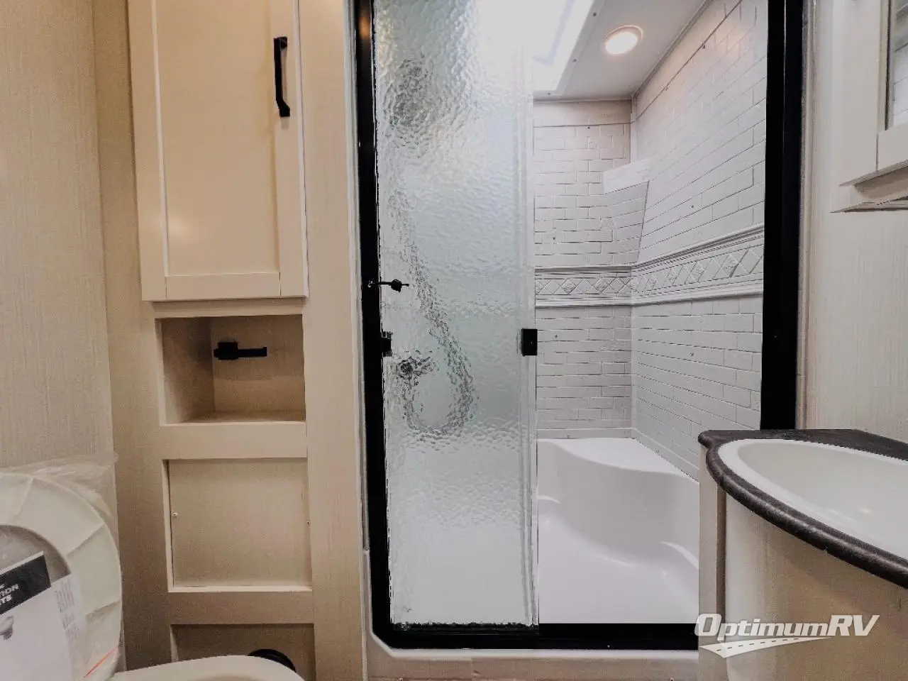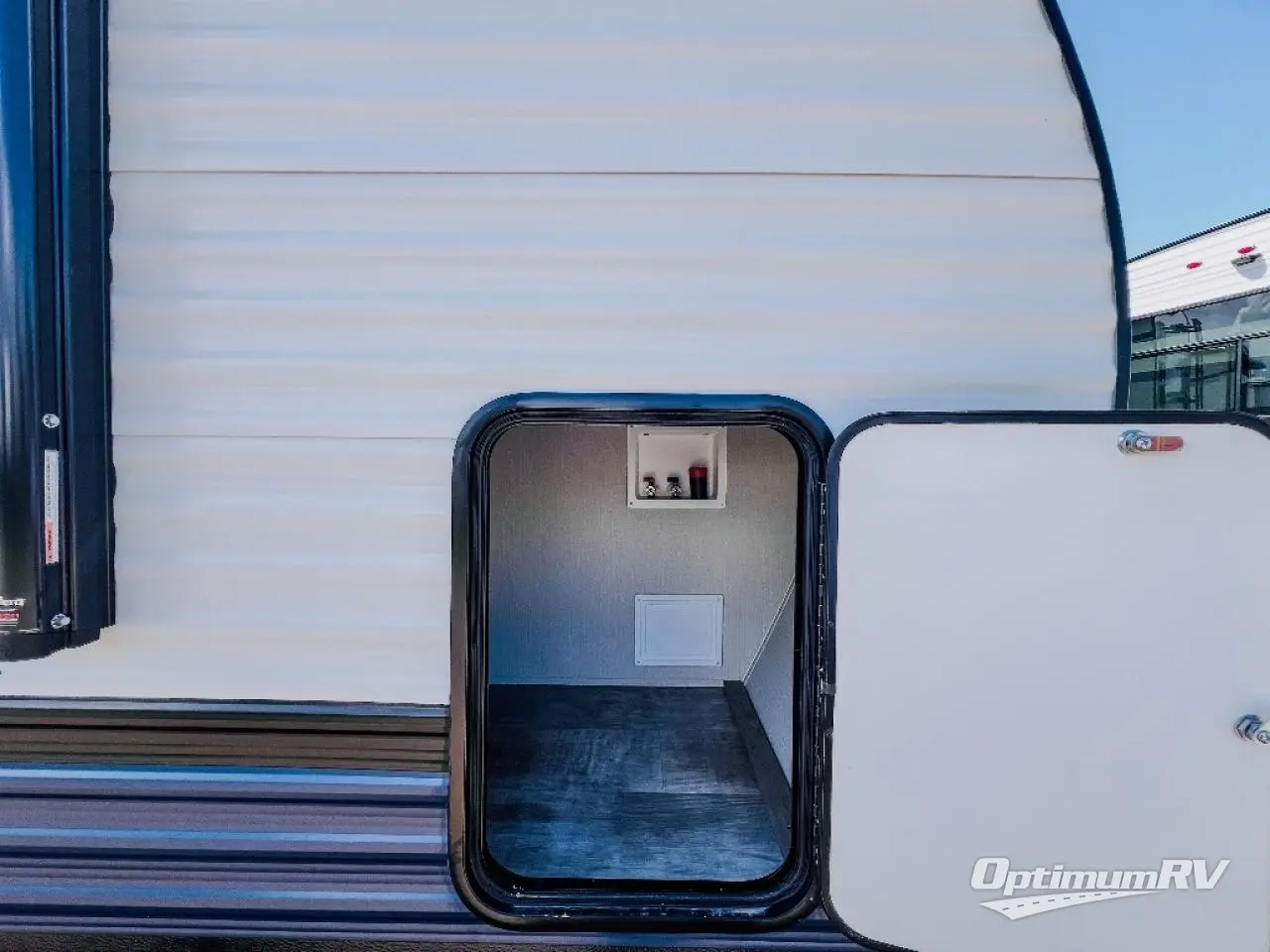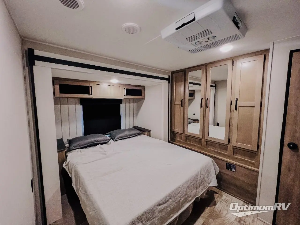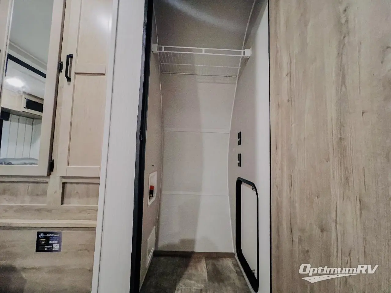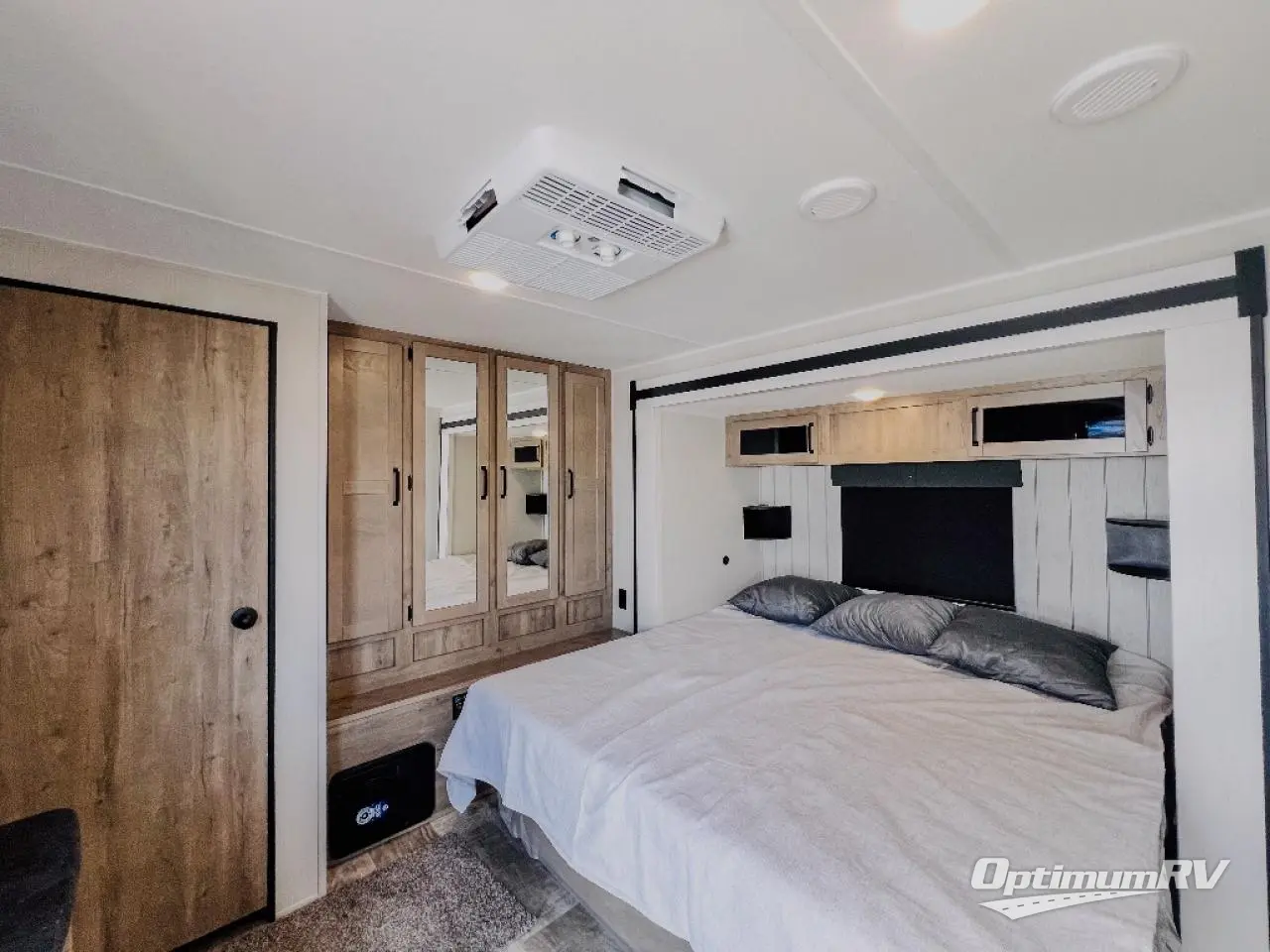 Experience a home away from home with this travel trailer! The front kitchen has everything you will need to prepare your best meals and you can enjoy them at the booth dinette. The rear private bedroom has a 72" x 80" king bed slide across from a dresser, a wardrobe, and a closet next to it that is prepped to add an optional washer and dryer. Freshen up in the full bathroom with the 34" x 34" radius shower and then enjoy a cup of coffee relaxing in one of the two recliners or on the sofa! Choose the optional outside kitchen with a griddle and refrigerator for even more convenience!